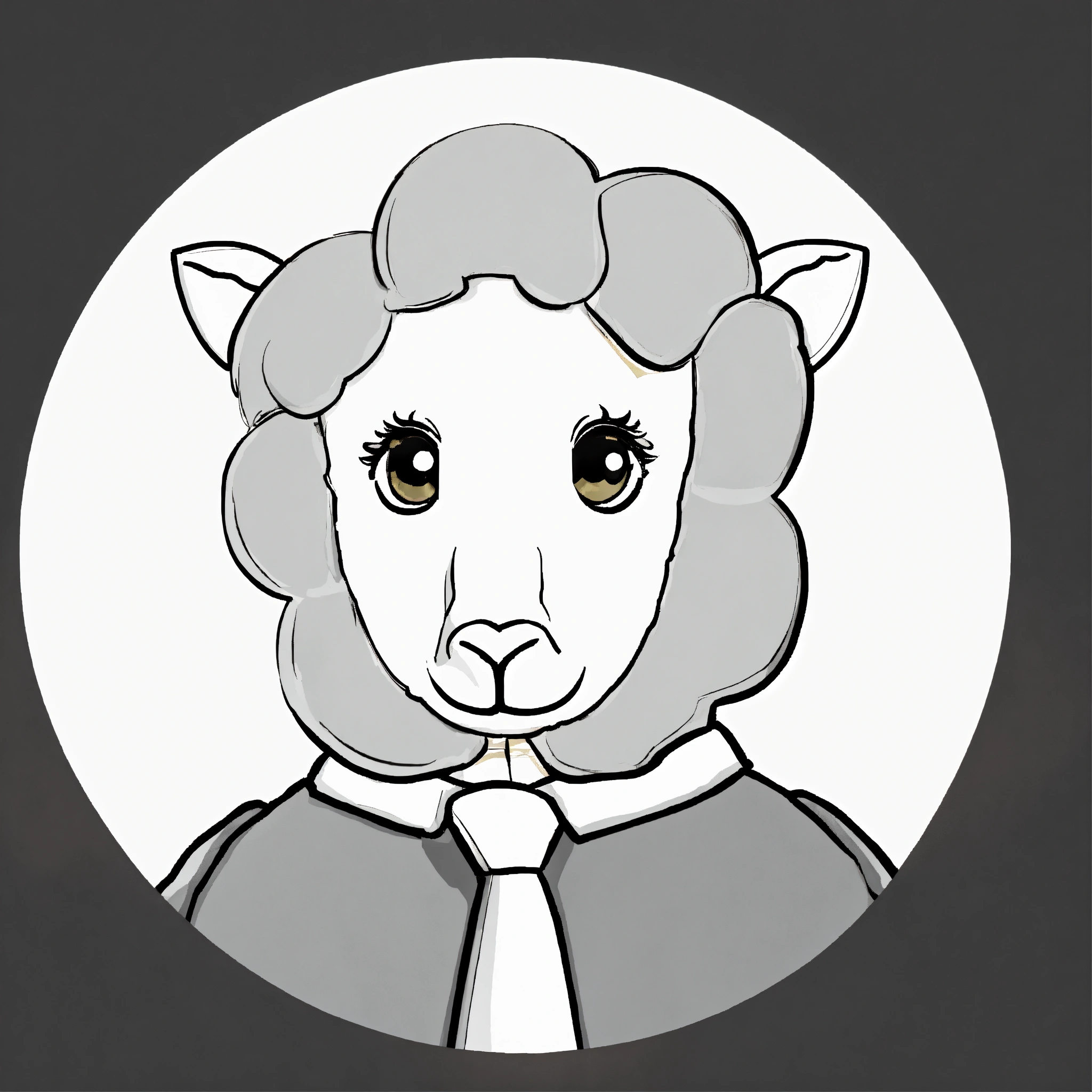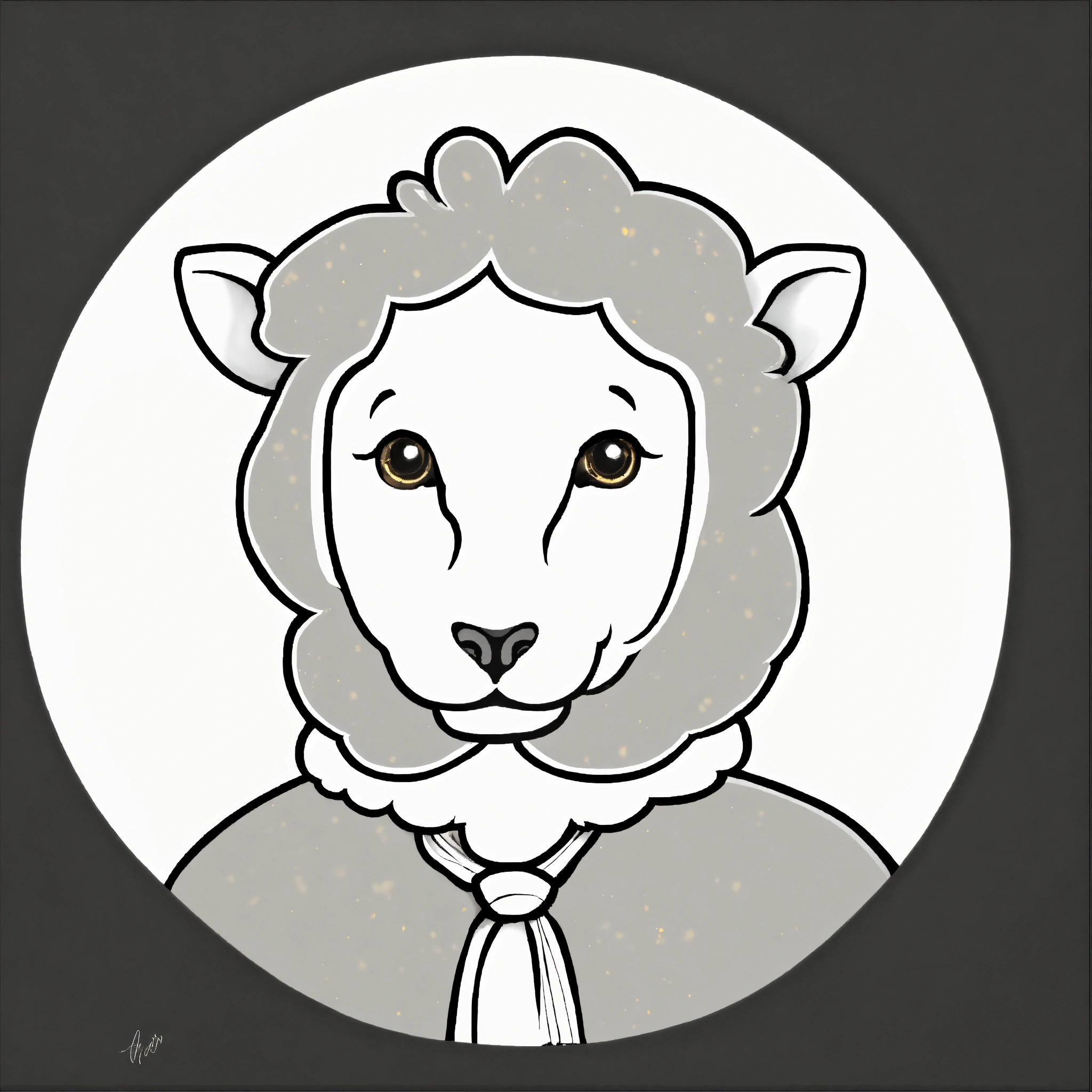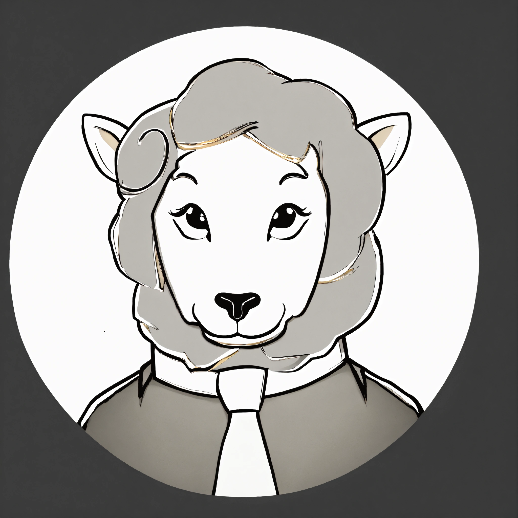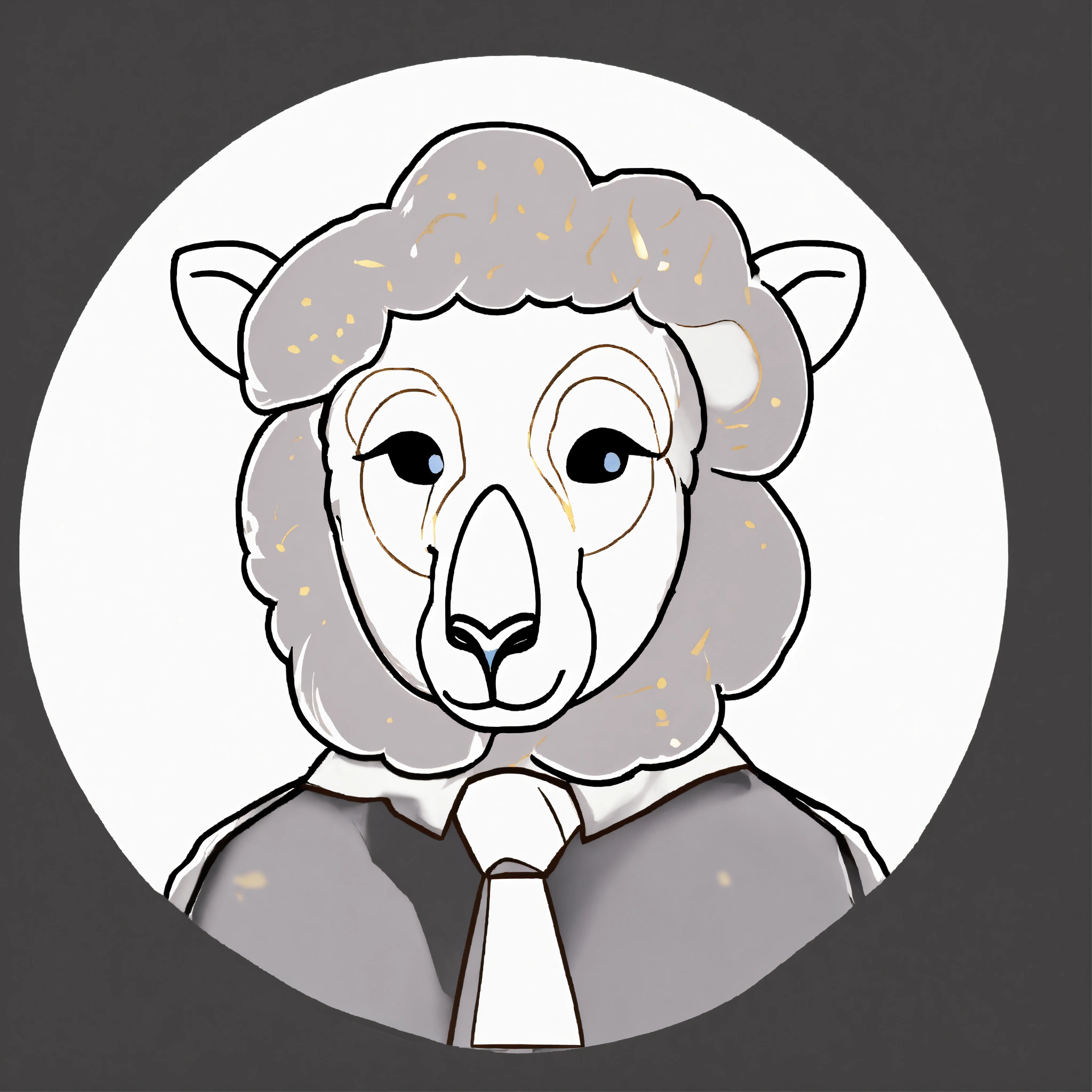Black 3d sheep with gold tie brown big eyes and small horns portrait