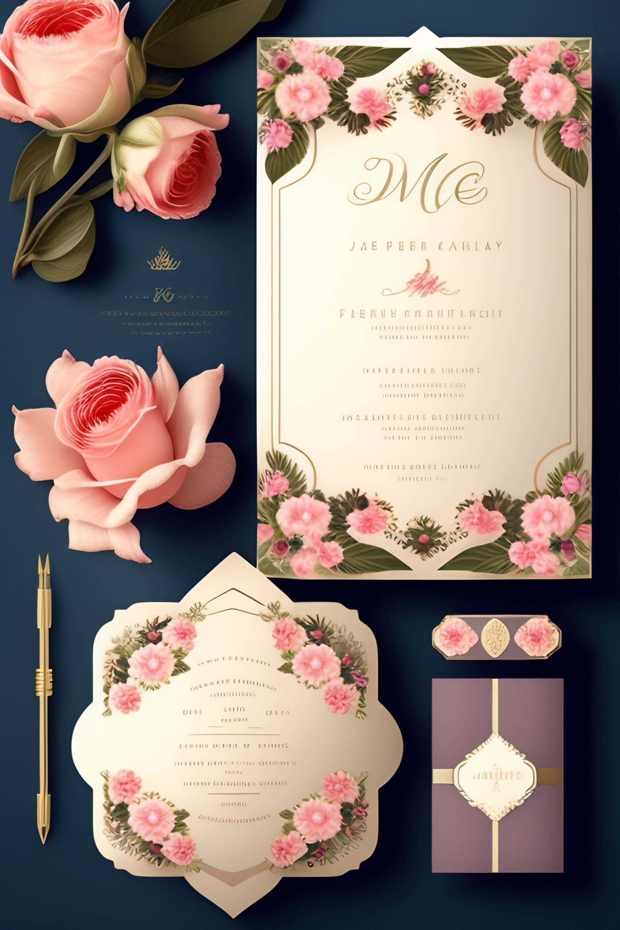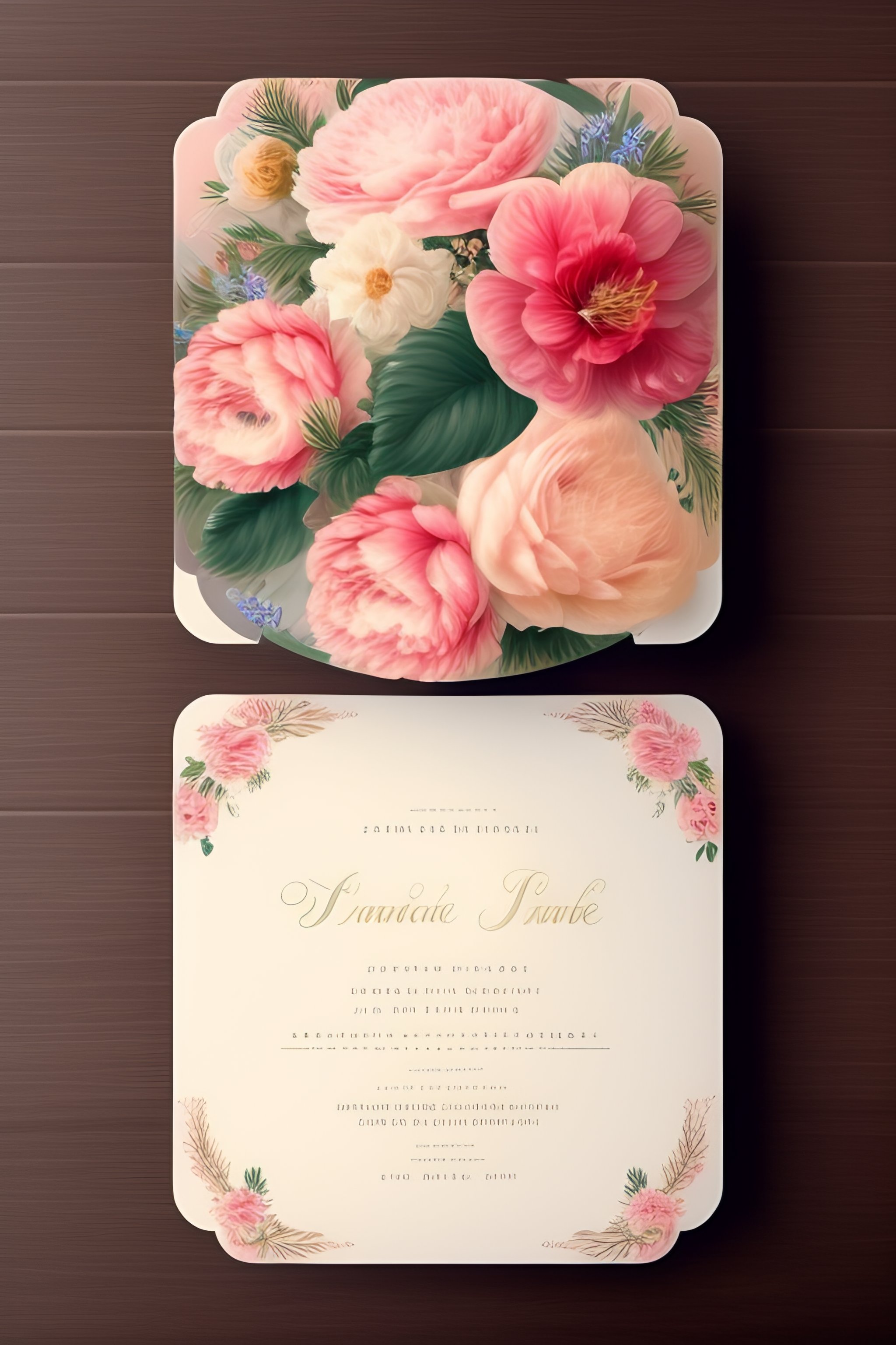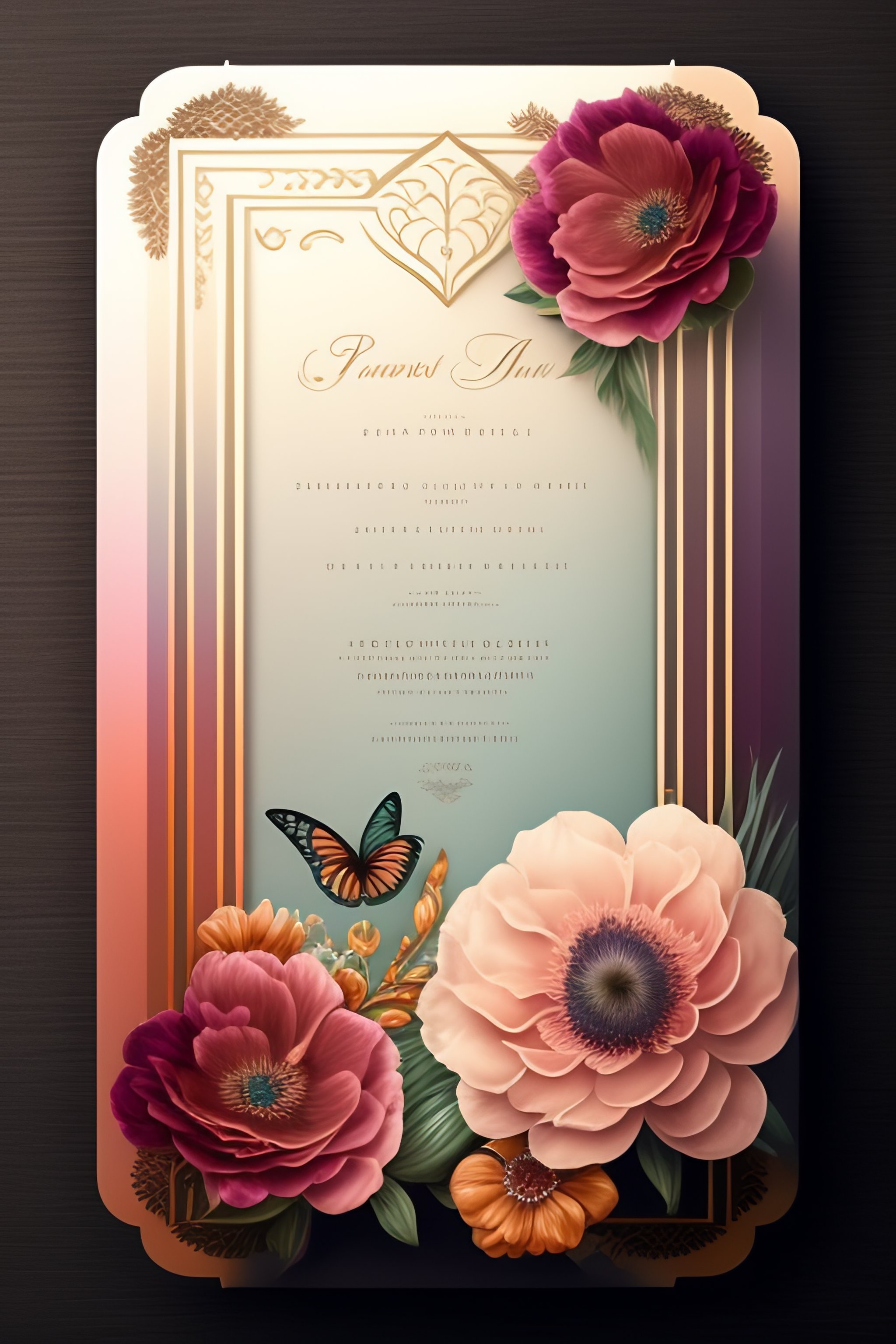 "create a realistic feminine, floral design using a soft color palette and a vintage aesthetic. for wedding invitation card