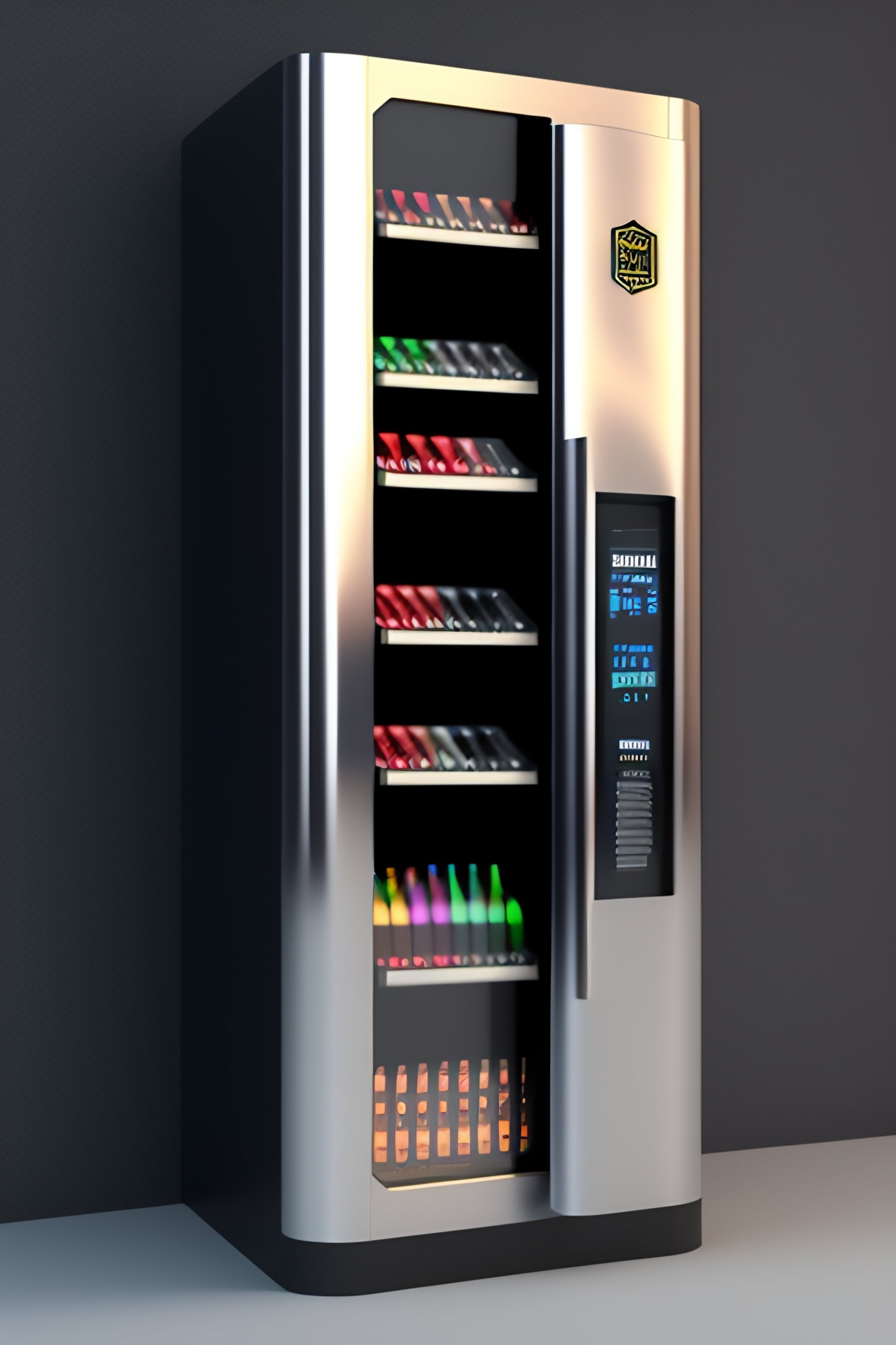 A firearm vending machine for guns, pistols, and firearms. guns in the vending machine. concept art render c4d