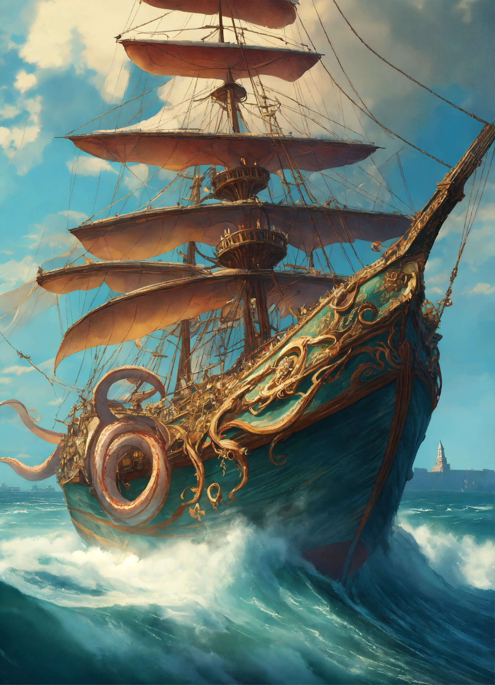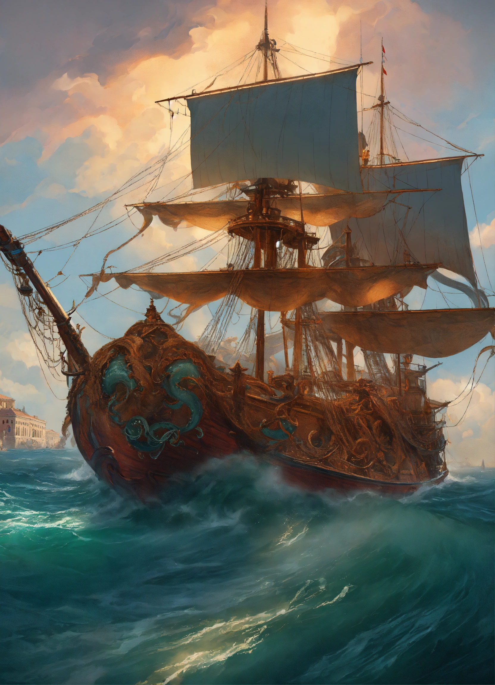 A large kraken attacking a venetian galeass, background sea, highly detailed, digital painting, artstation, concept art, smooth, sharp focus, illustration, art by artgerm and greg rutkowski and alphonse mucha, erte, 8k