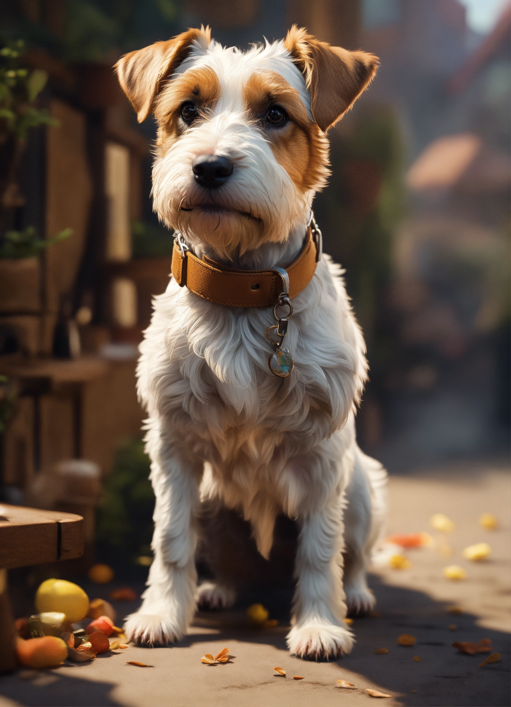 Craft a full body image in the distance with free space, of a short haired small parson russell terrier dog, capturing its adorable features and the main character's presence. use a pixar-style illustration to make the scene heartwarming., ultra hd, realistic, vivid colors, highly detailed, uhd drawing, pen and ink, perfect composition, beautiful detailed intricate insanely detailed octane render trending on artstation, 8k artistic photography, photorealistic concept art, soft natural volumetric cinematic perfect light