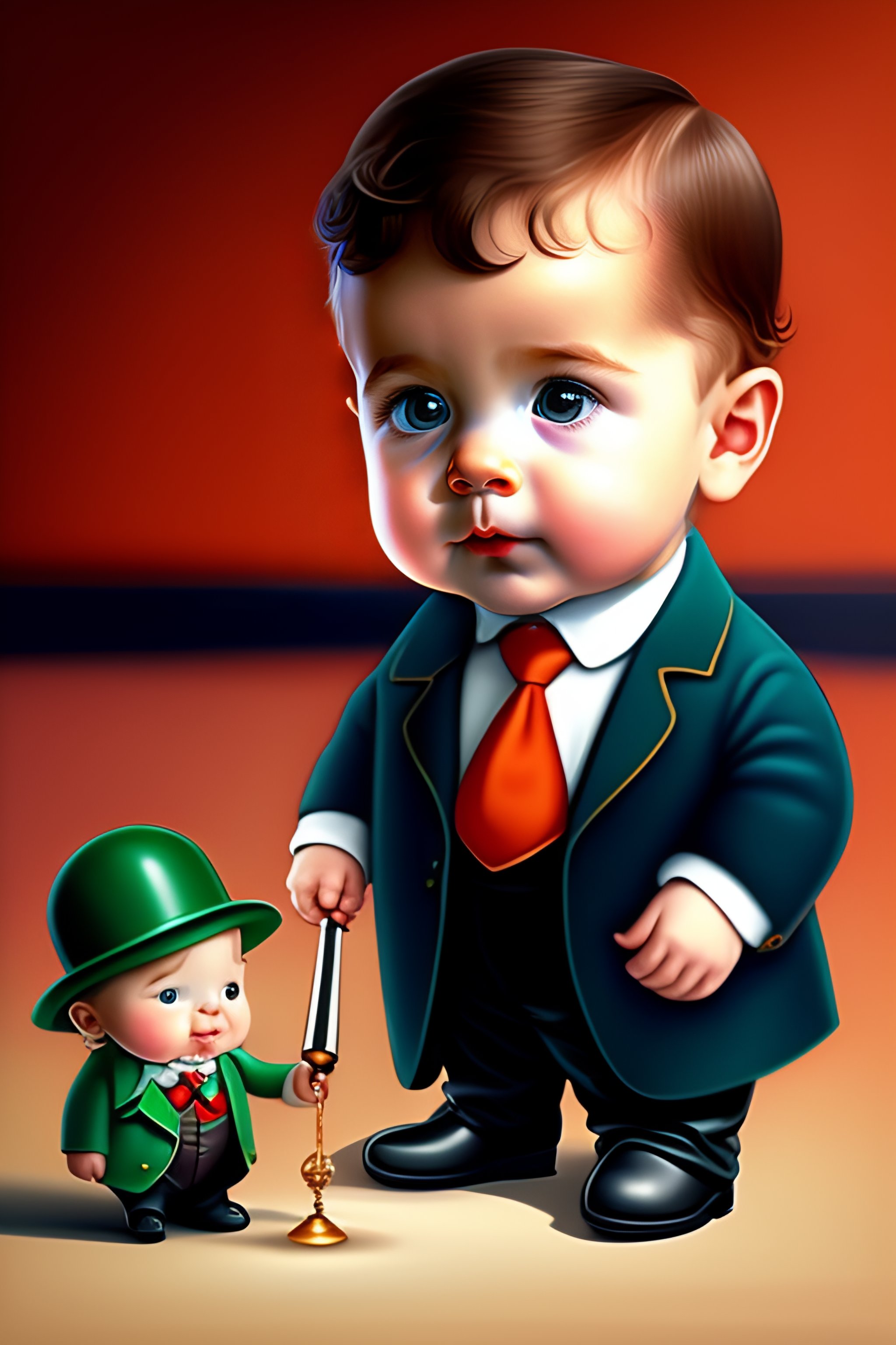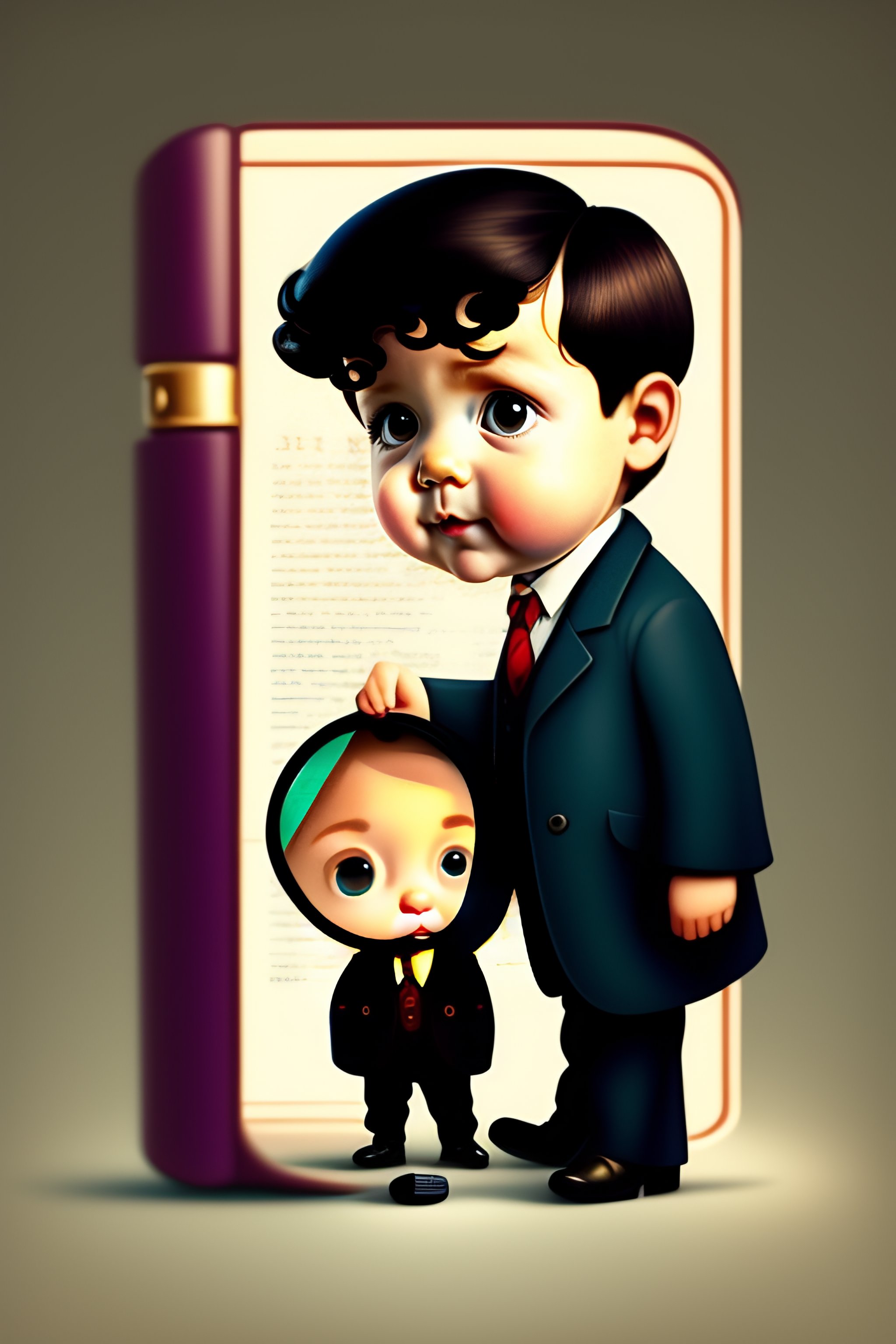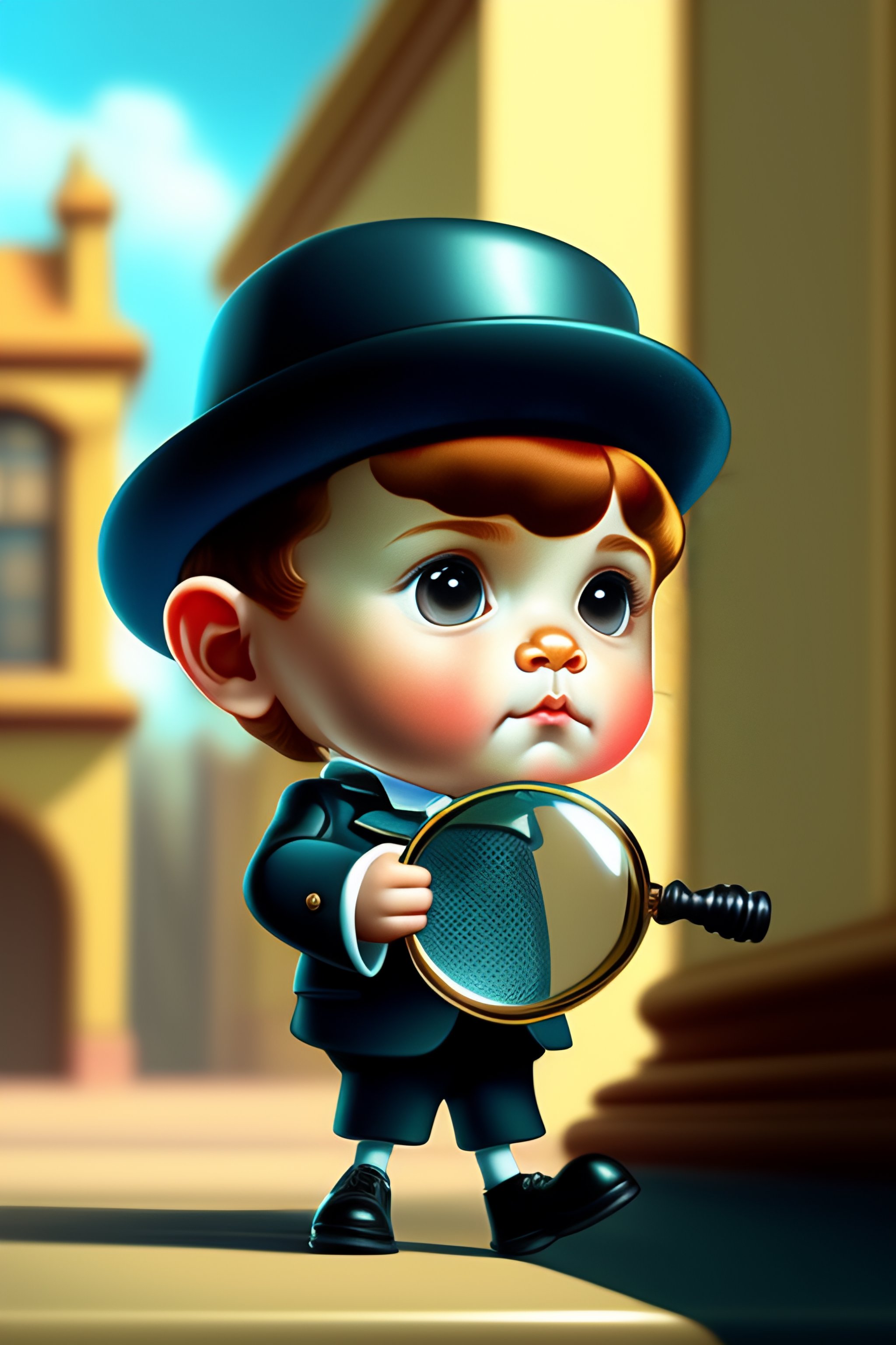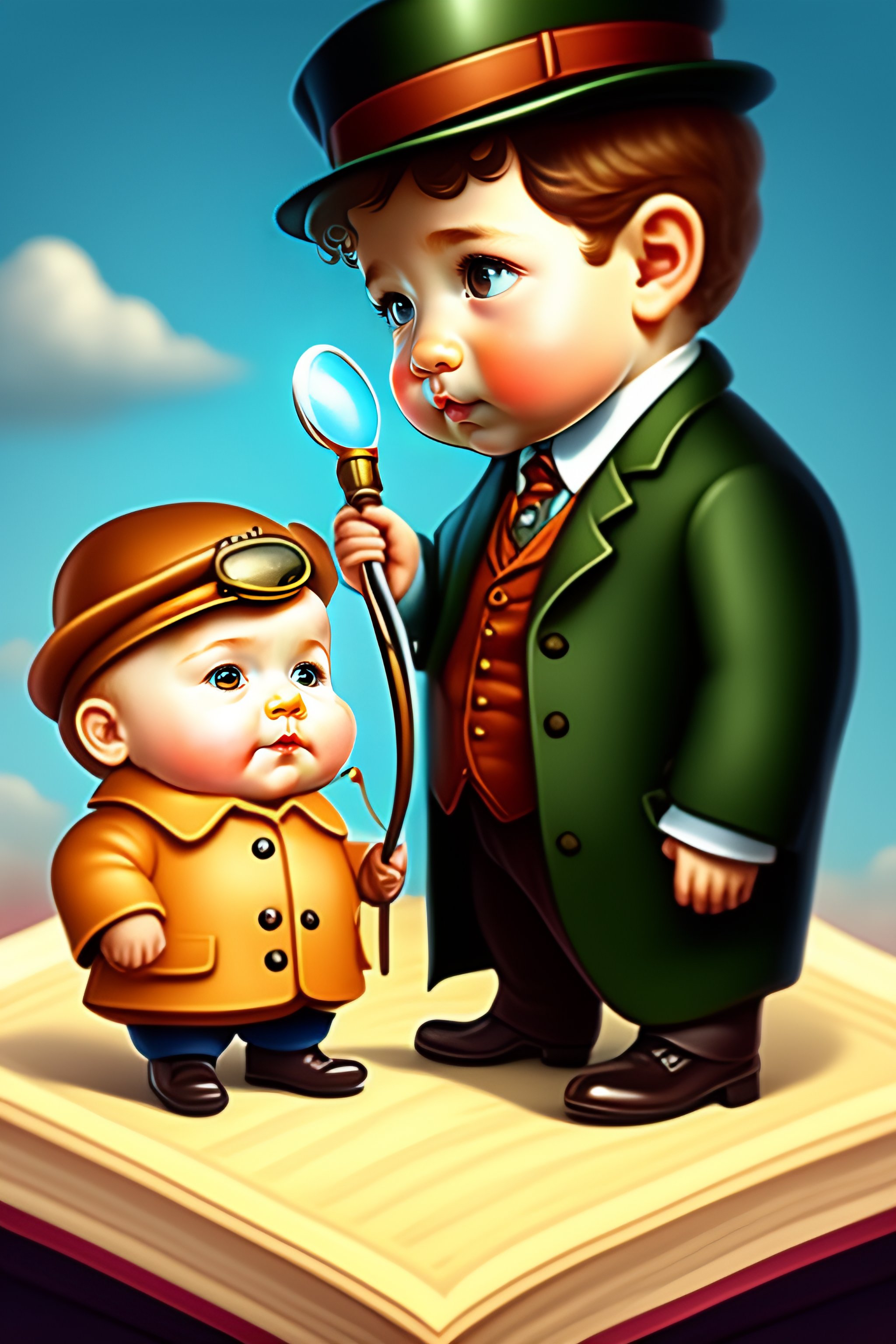 A baby sherlock holmes; investigating with a magnifying glass in cartoon form