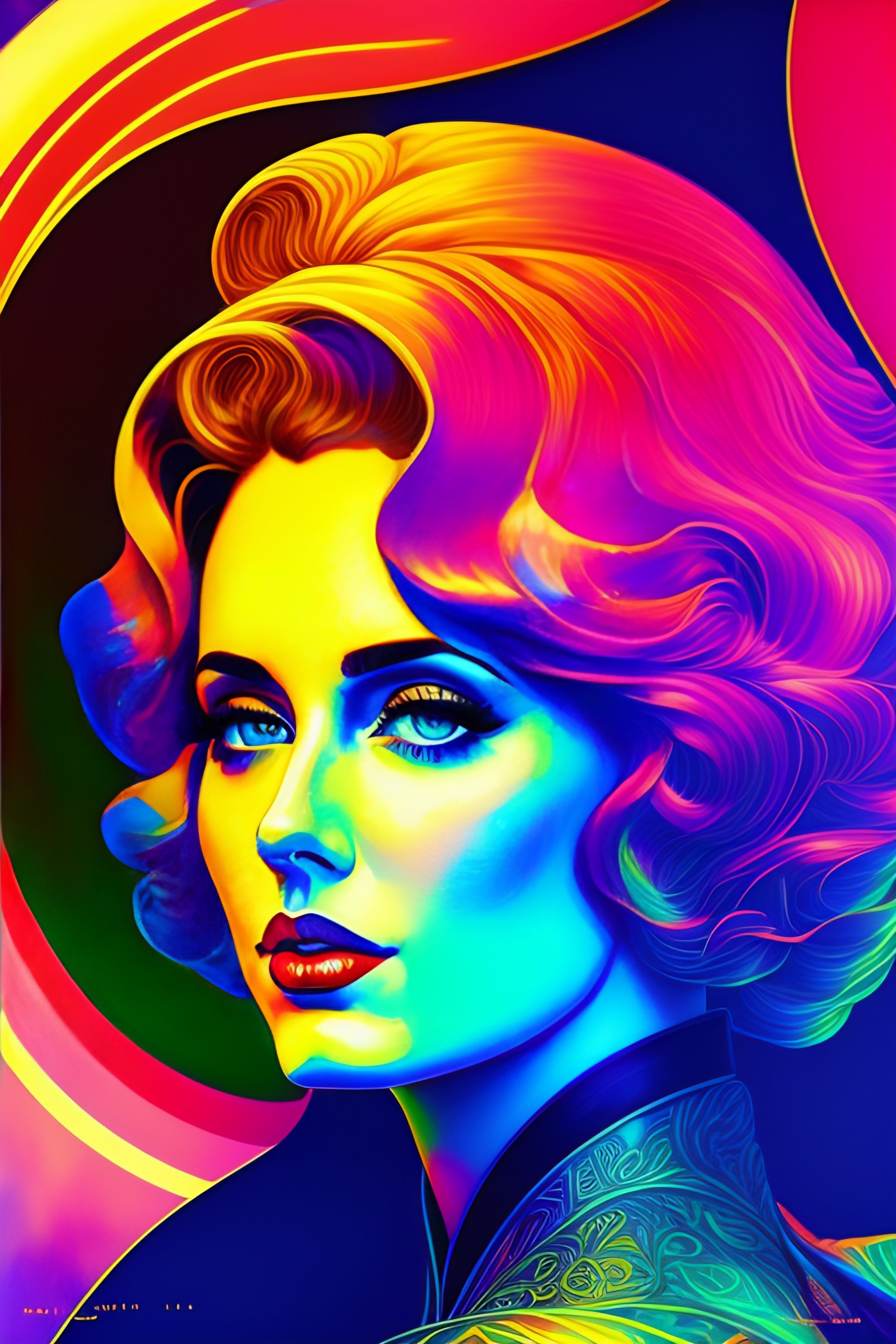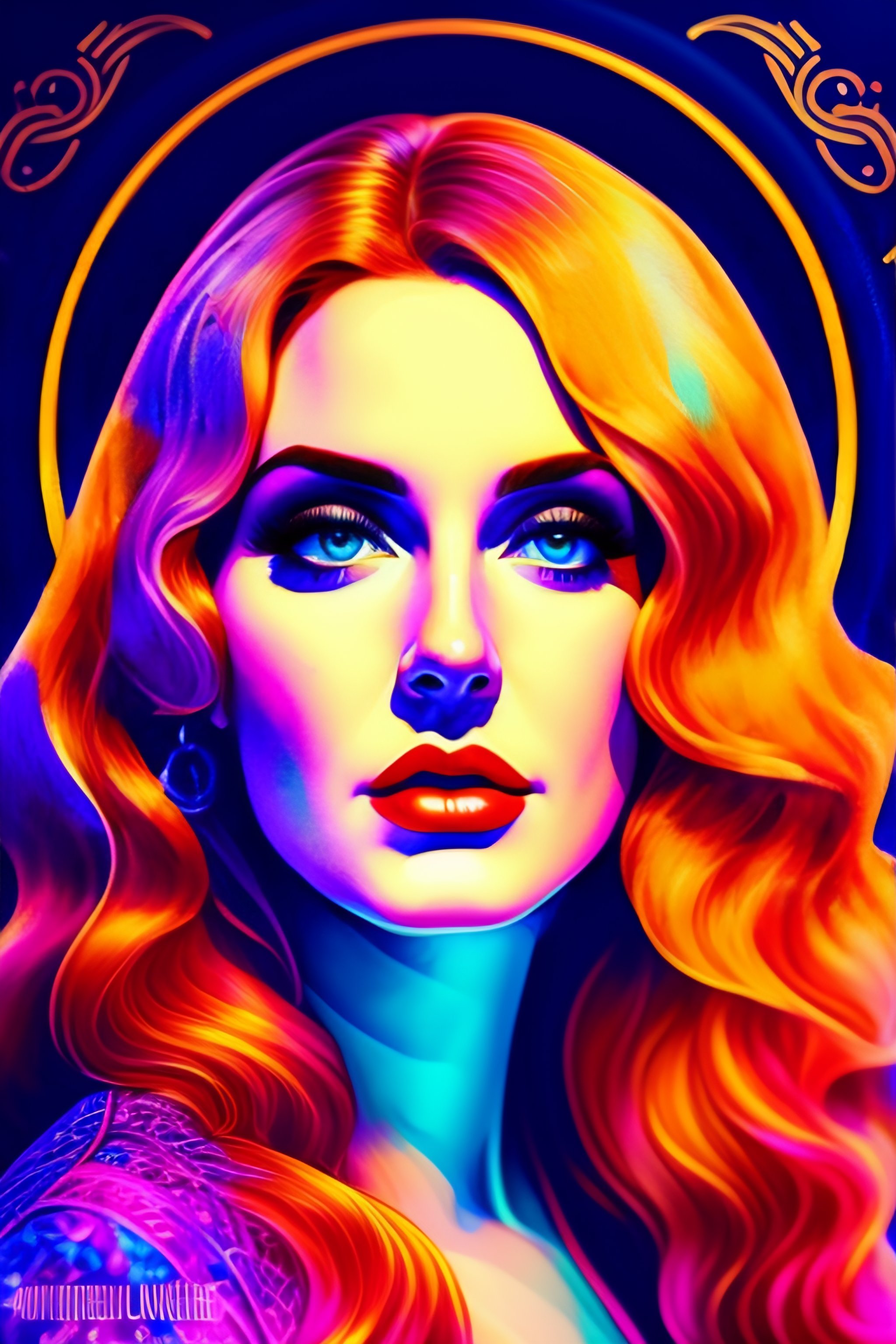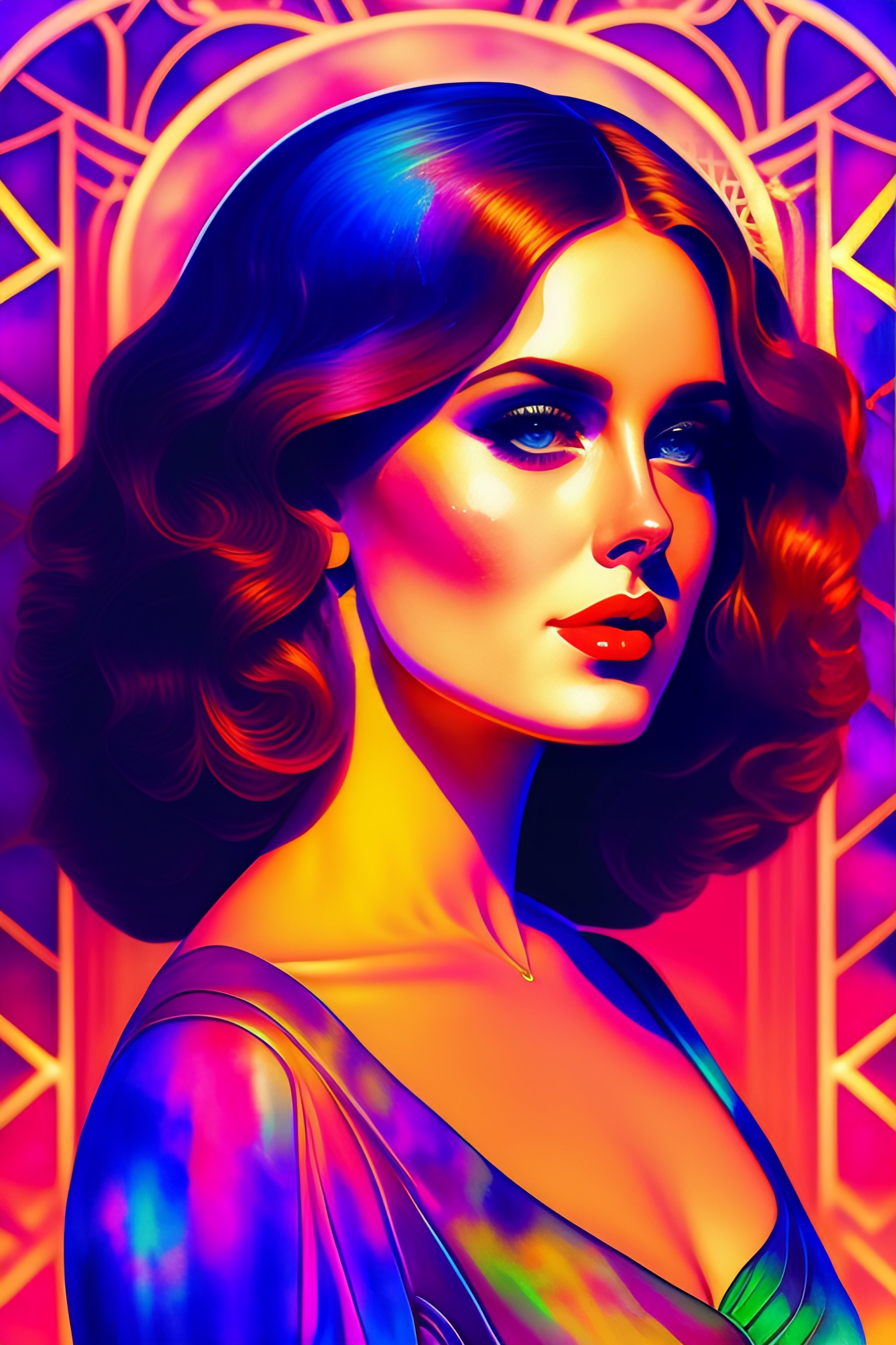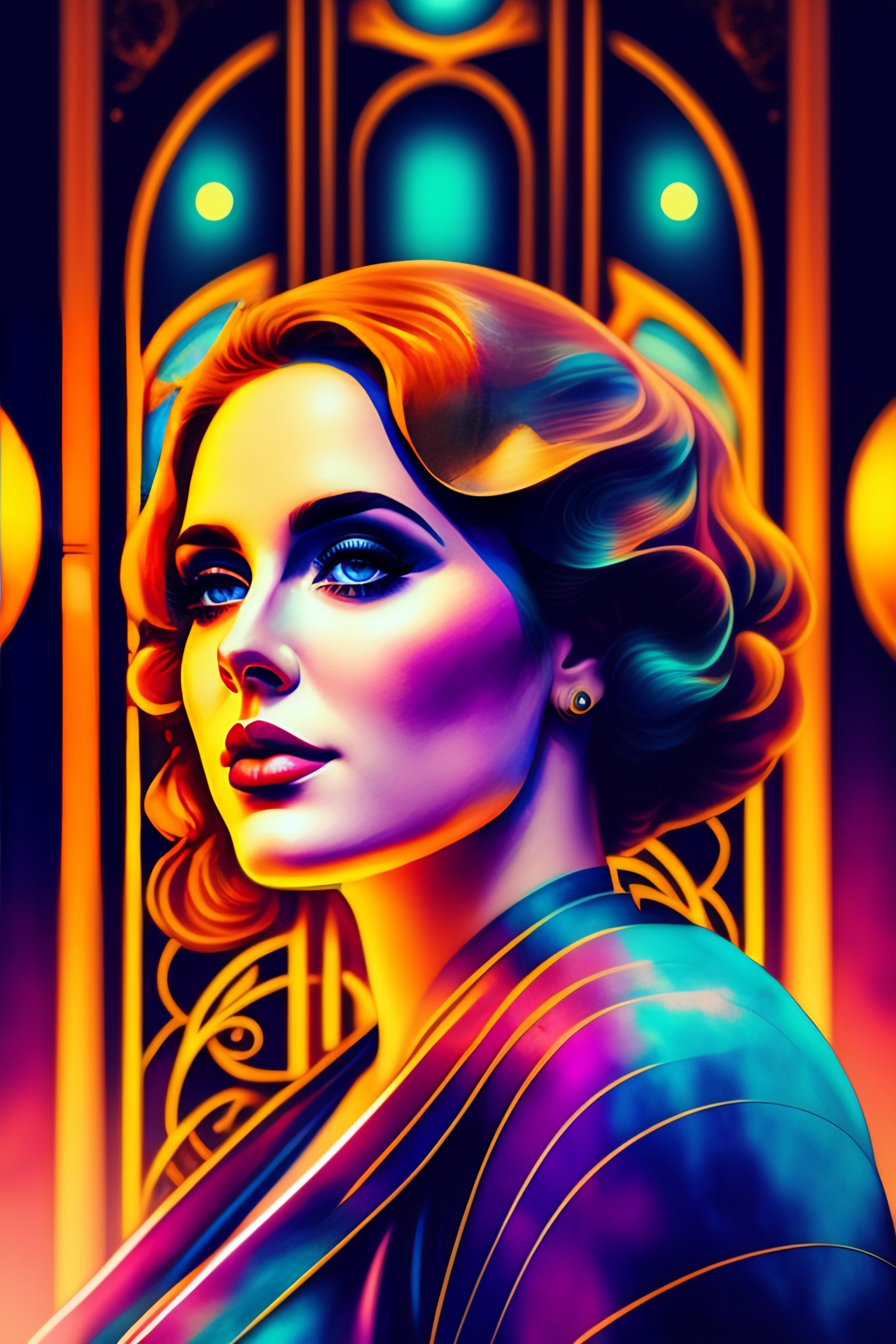 Adele laurie in art-nouveau style. greek column background; 18mm portrait, sharpen focus, serious, watercolor, by ilya kuvshinov sci-fi, colors, neon lights. detailed line art.