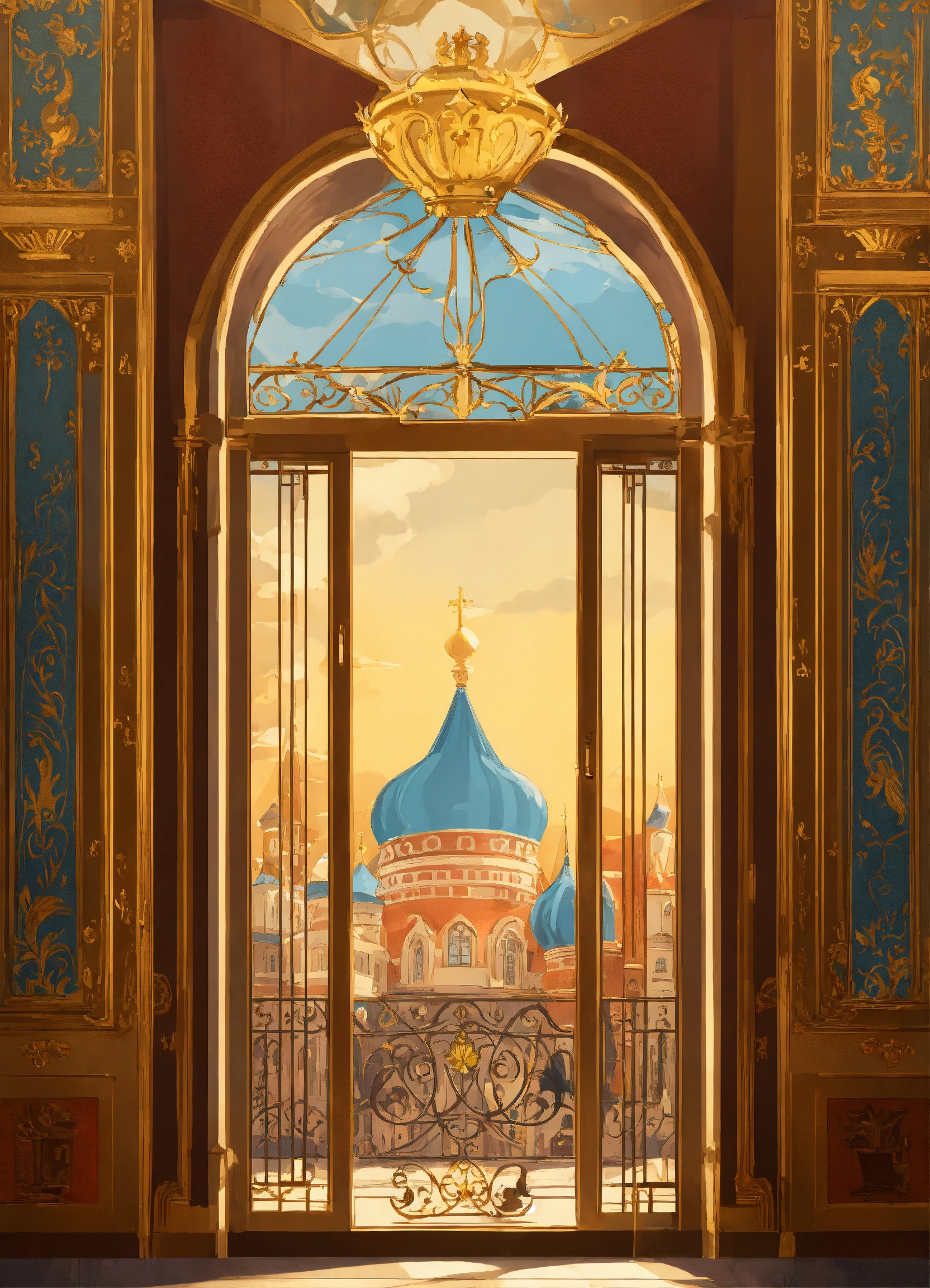 Russian dome elevator arabesque animation king french mocking bird chateau kingdom royal disney vehicle secret apartment le roi et l’oiseau deco illustration arch cartoon king crown art gold window grill arial viewbalcony