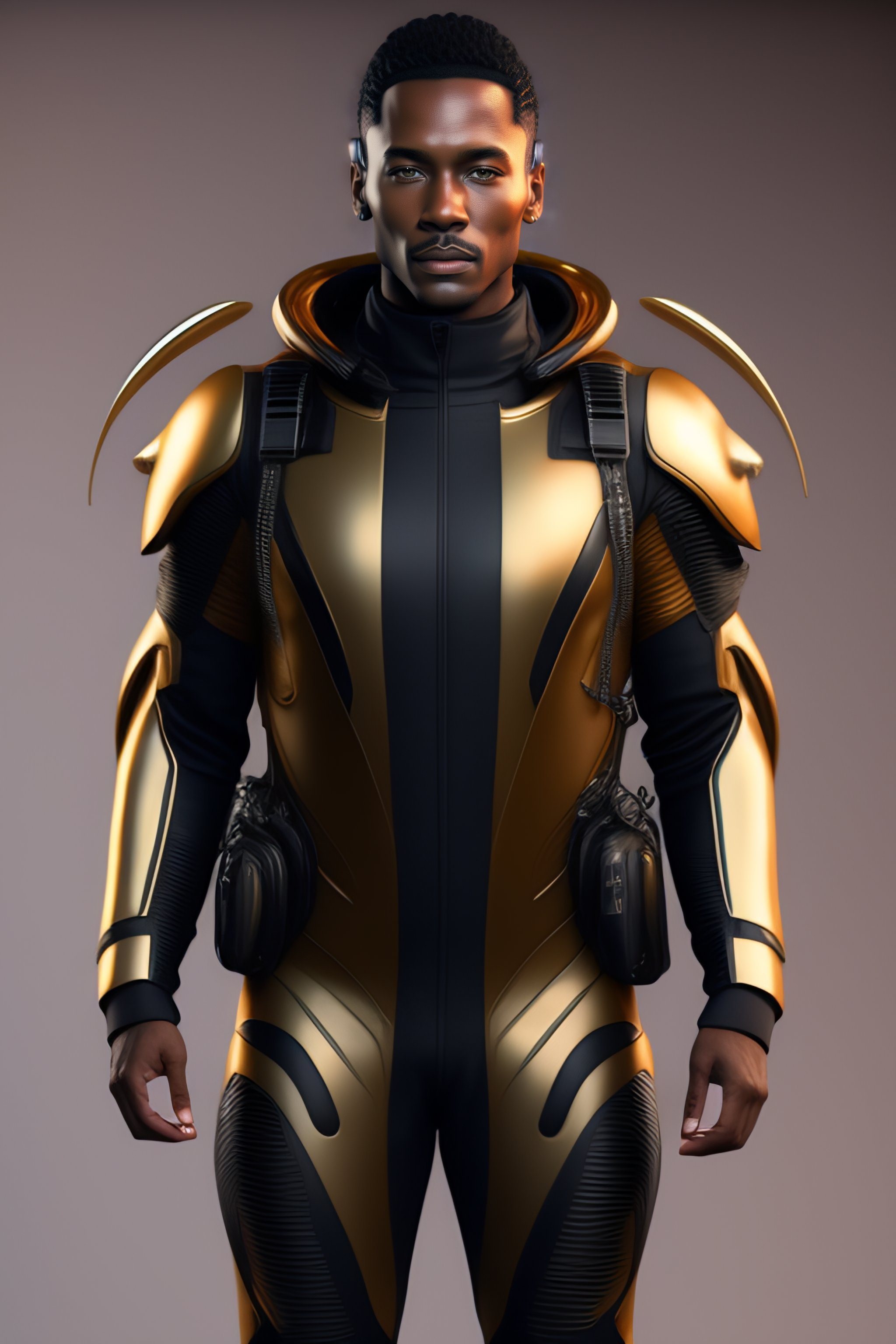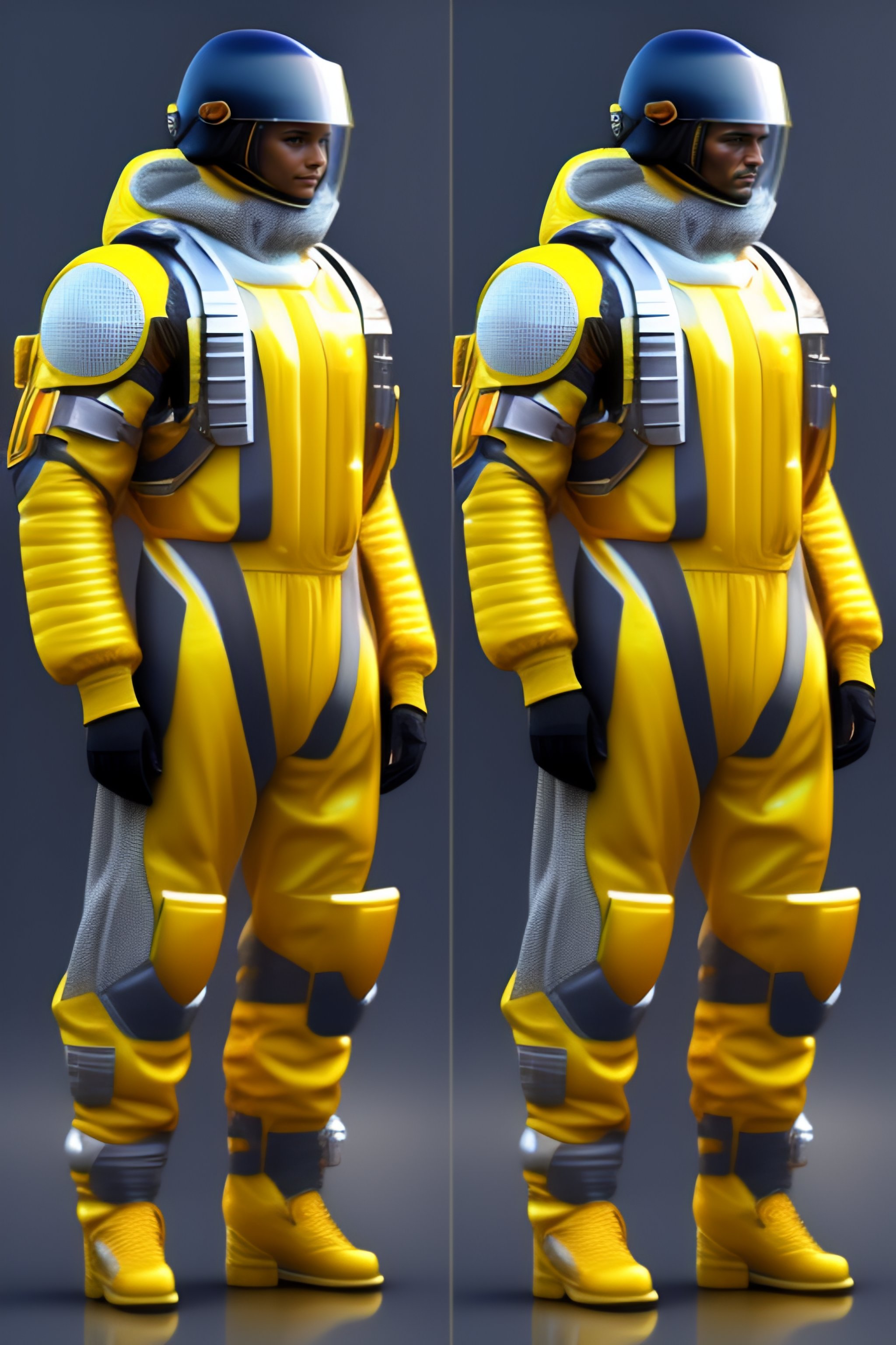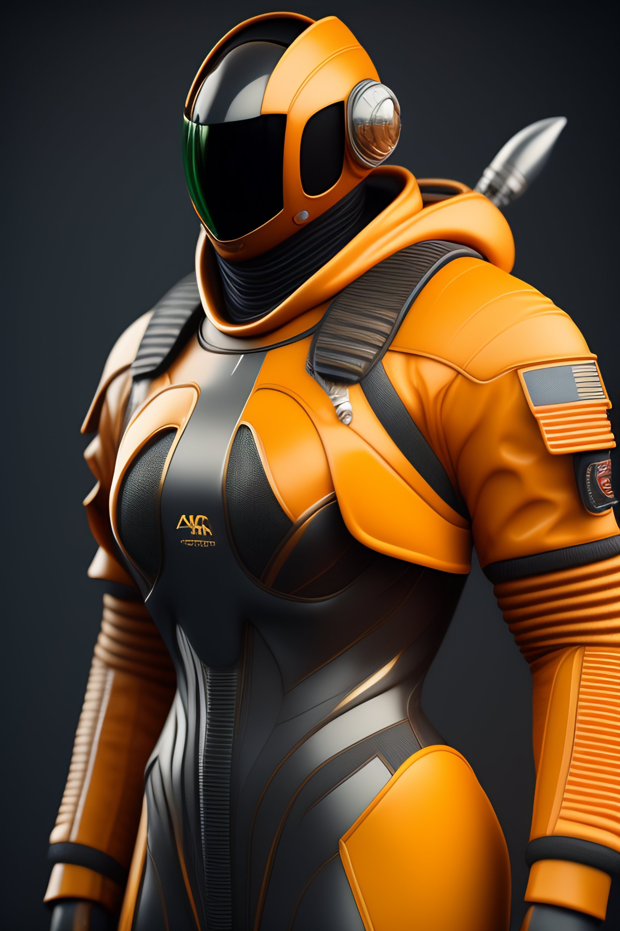 Costume design for alien sci fi movie, looking straight forward, forthright portrait, highly detailed 3d render, heat protective suit with flamethrower