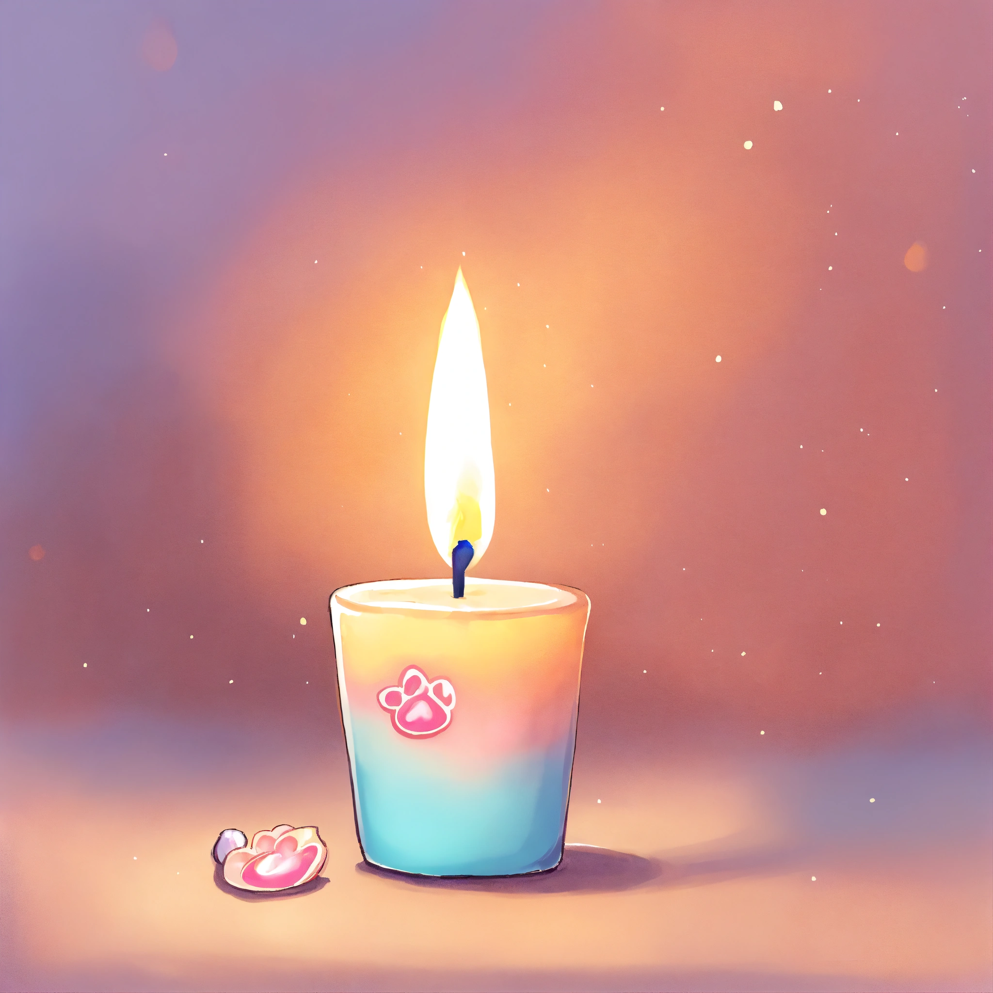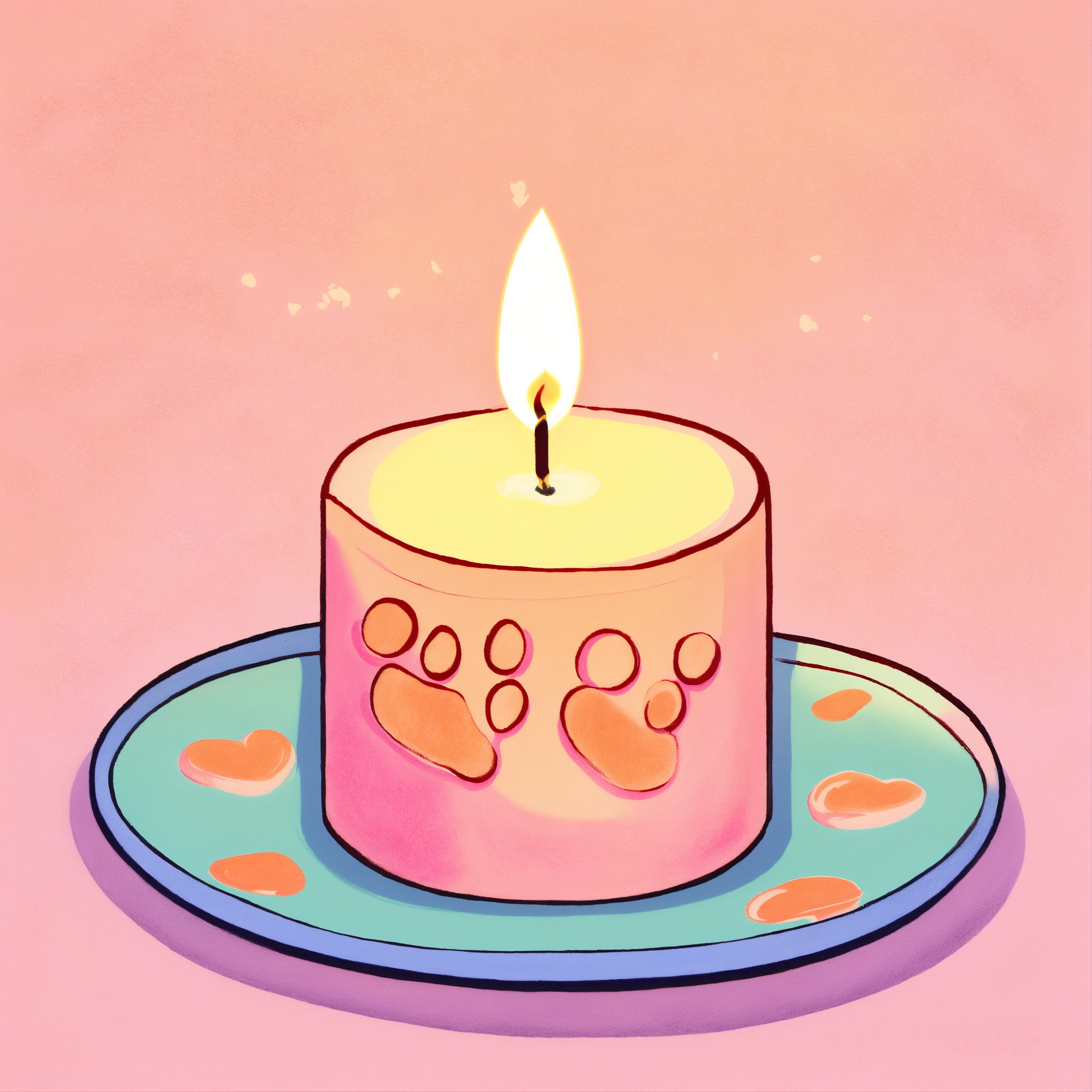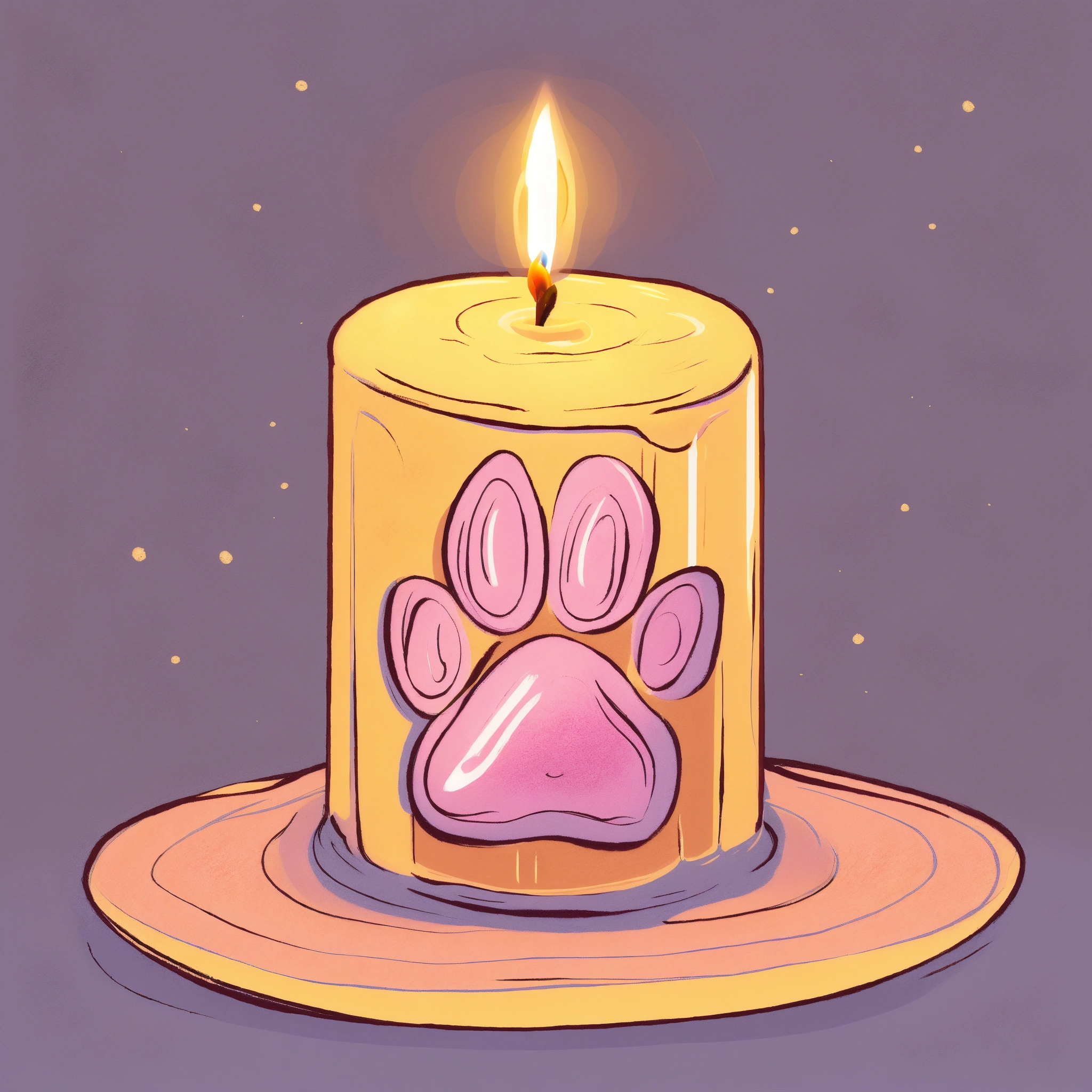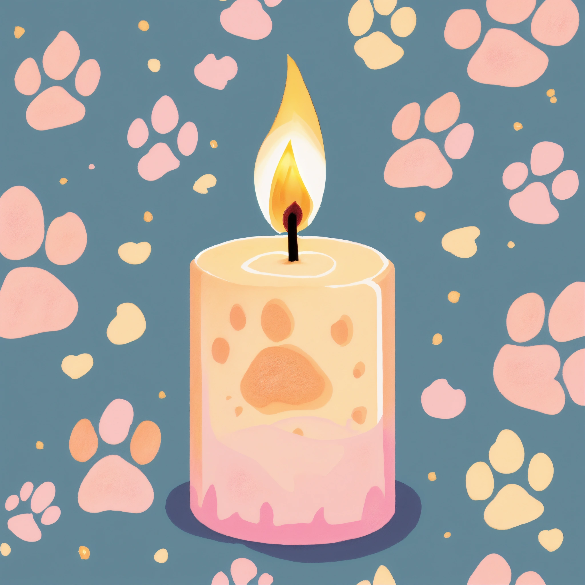 Cute dog paw shaped small lighted candle illustration pastel drawing