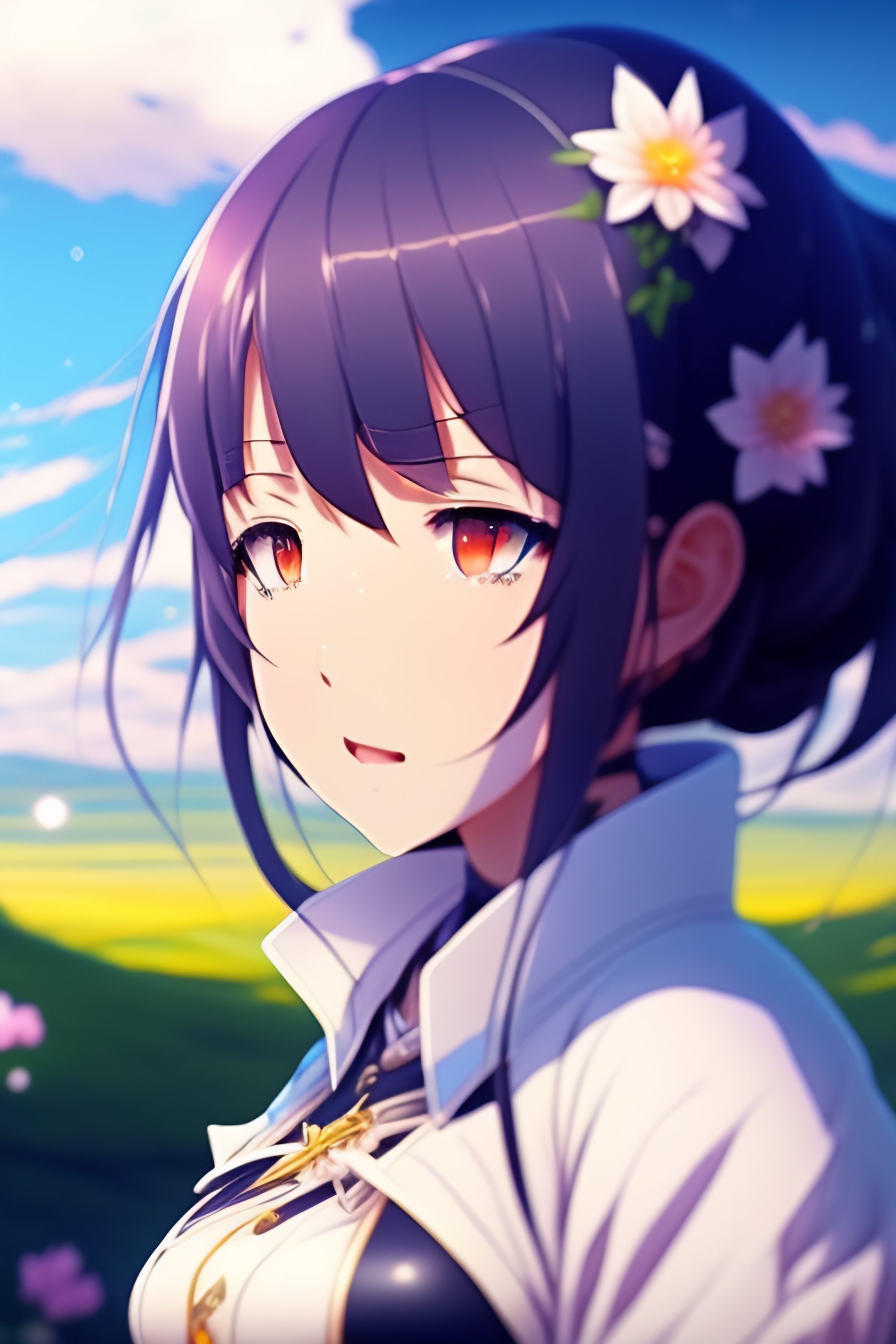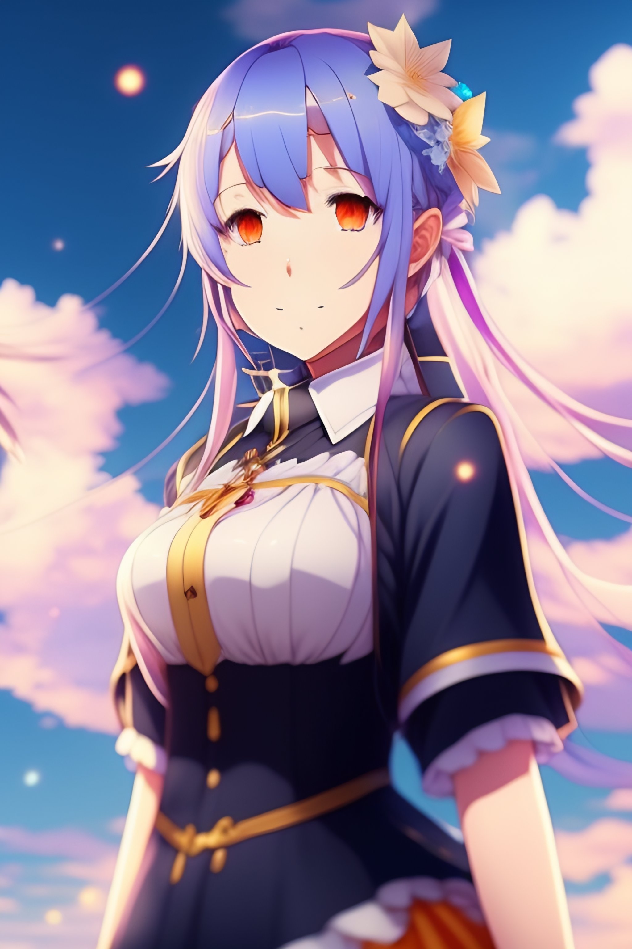 Portrait of anime girl rem from re:zero − starting life in another world, cloudy sky background lush landscape illustration concept art anime key visual trending pixiv