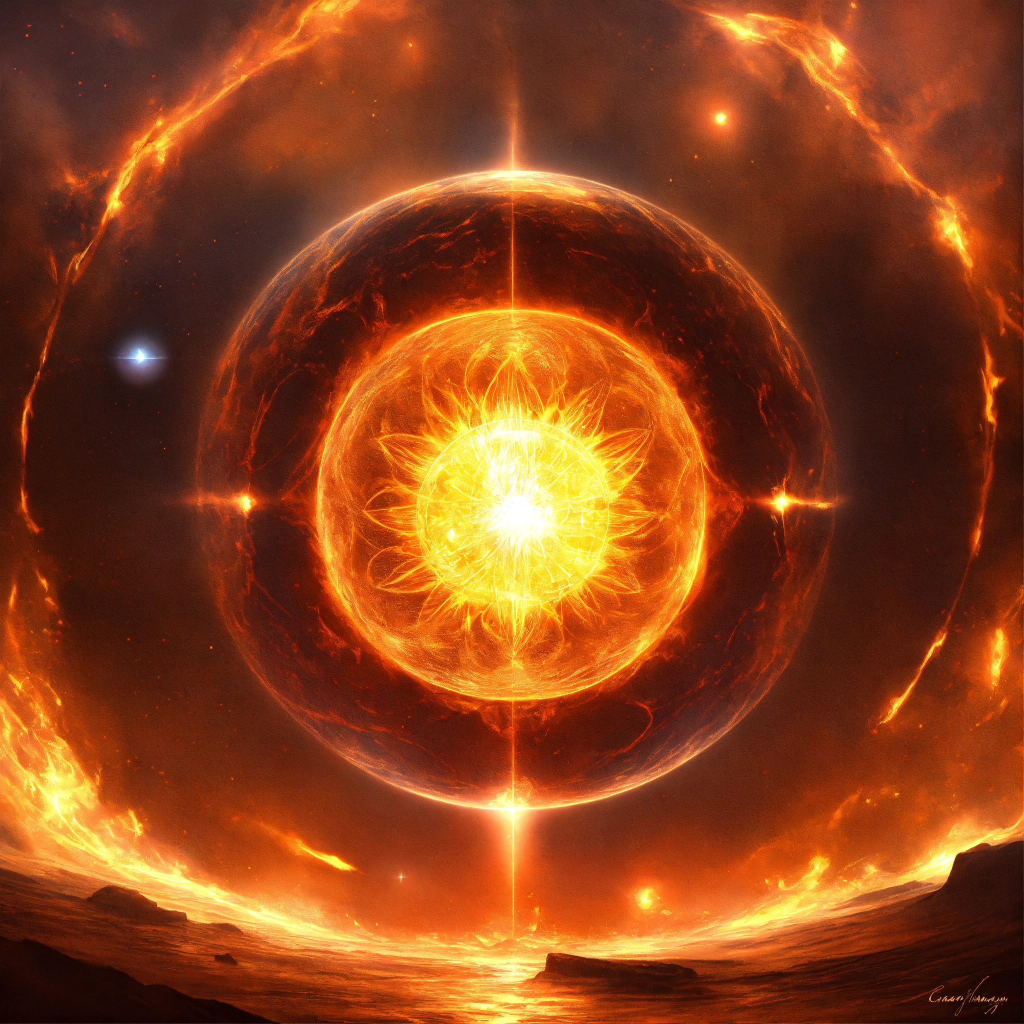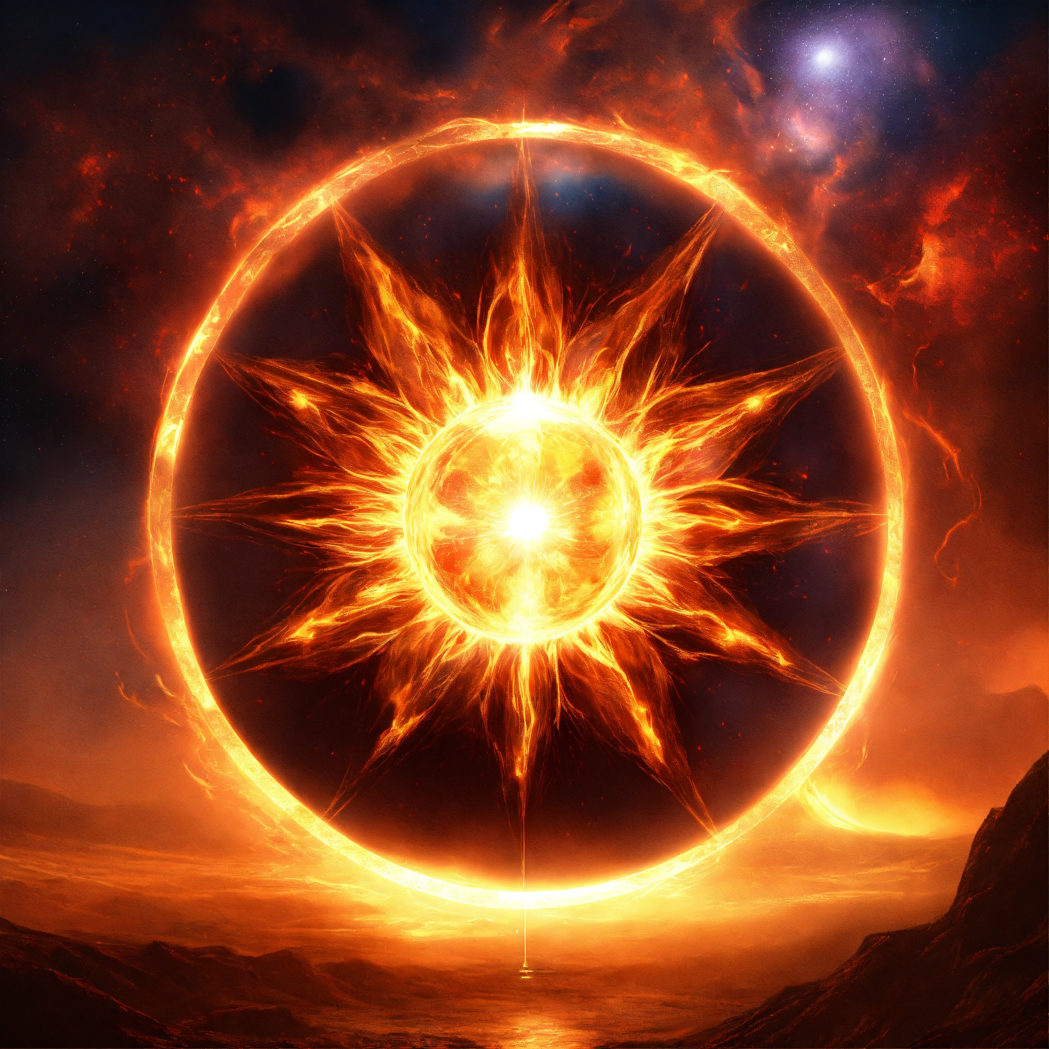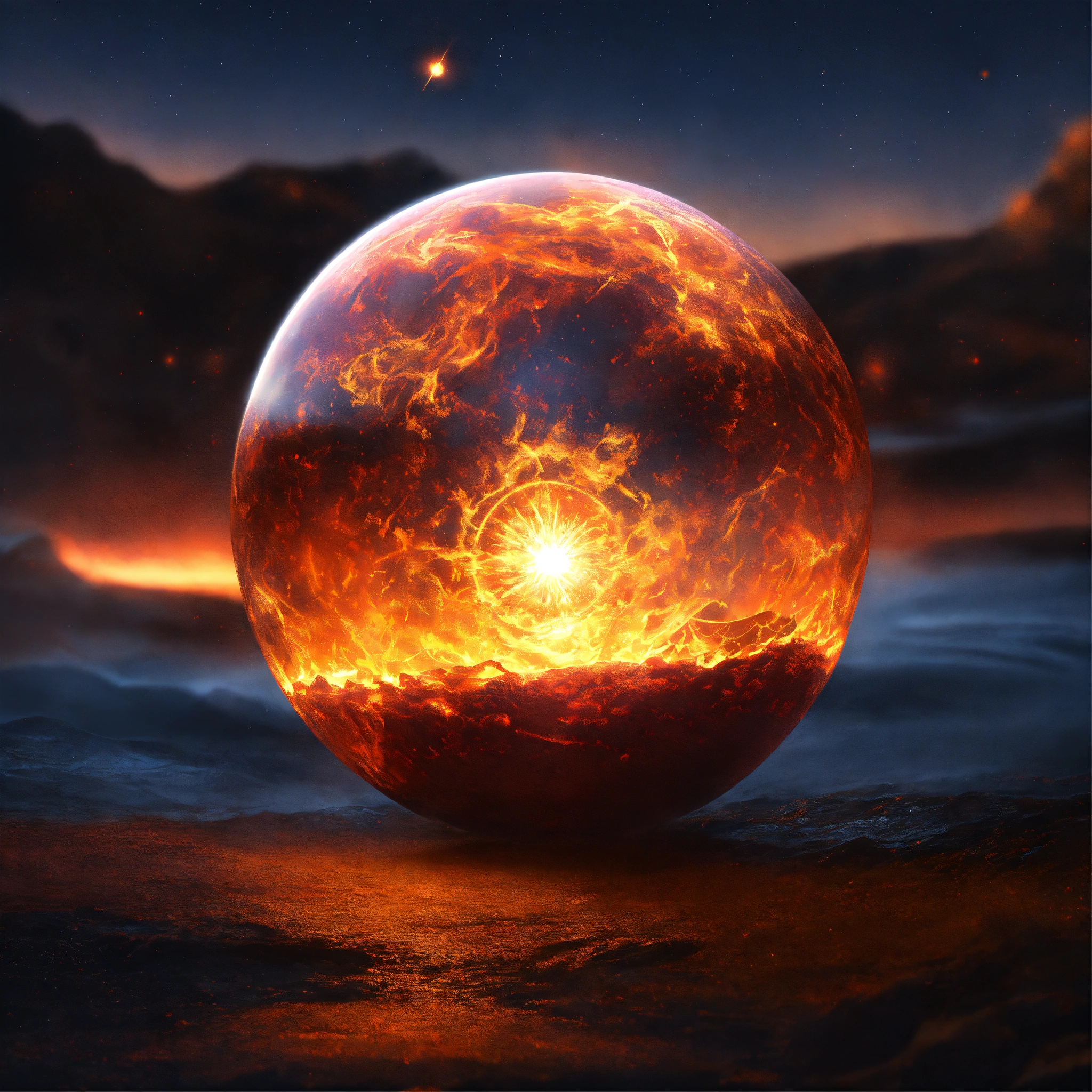 A star on fire swirling within its depths. the orb radiates a mysterious energy, captivating all who gaze upon it. its power is said to grant unimaginable abilities to those who possess it.
