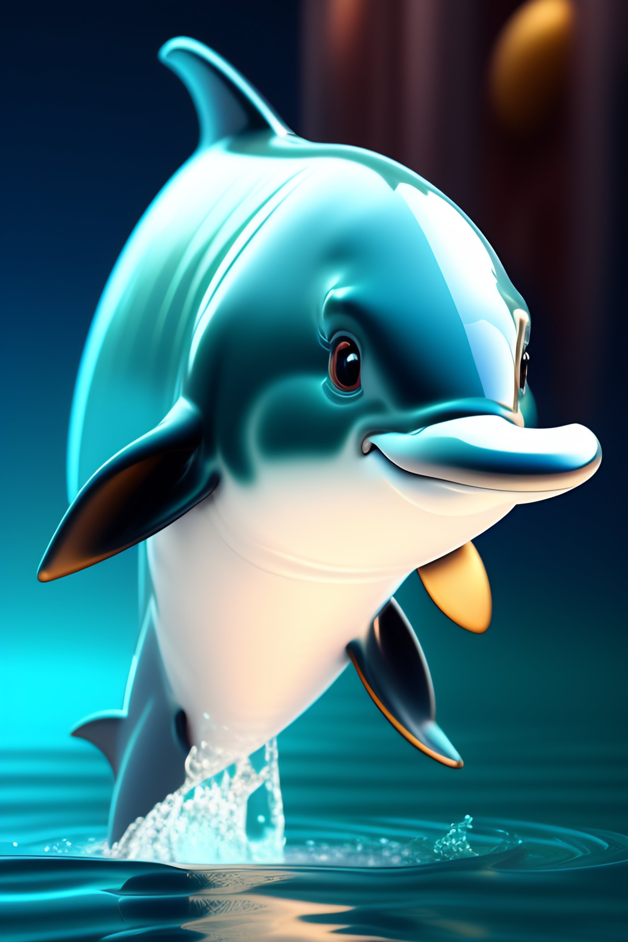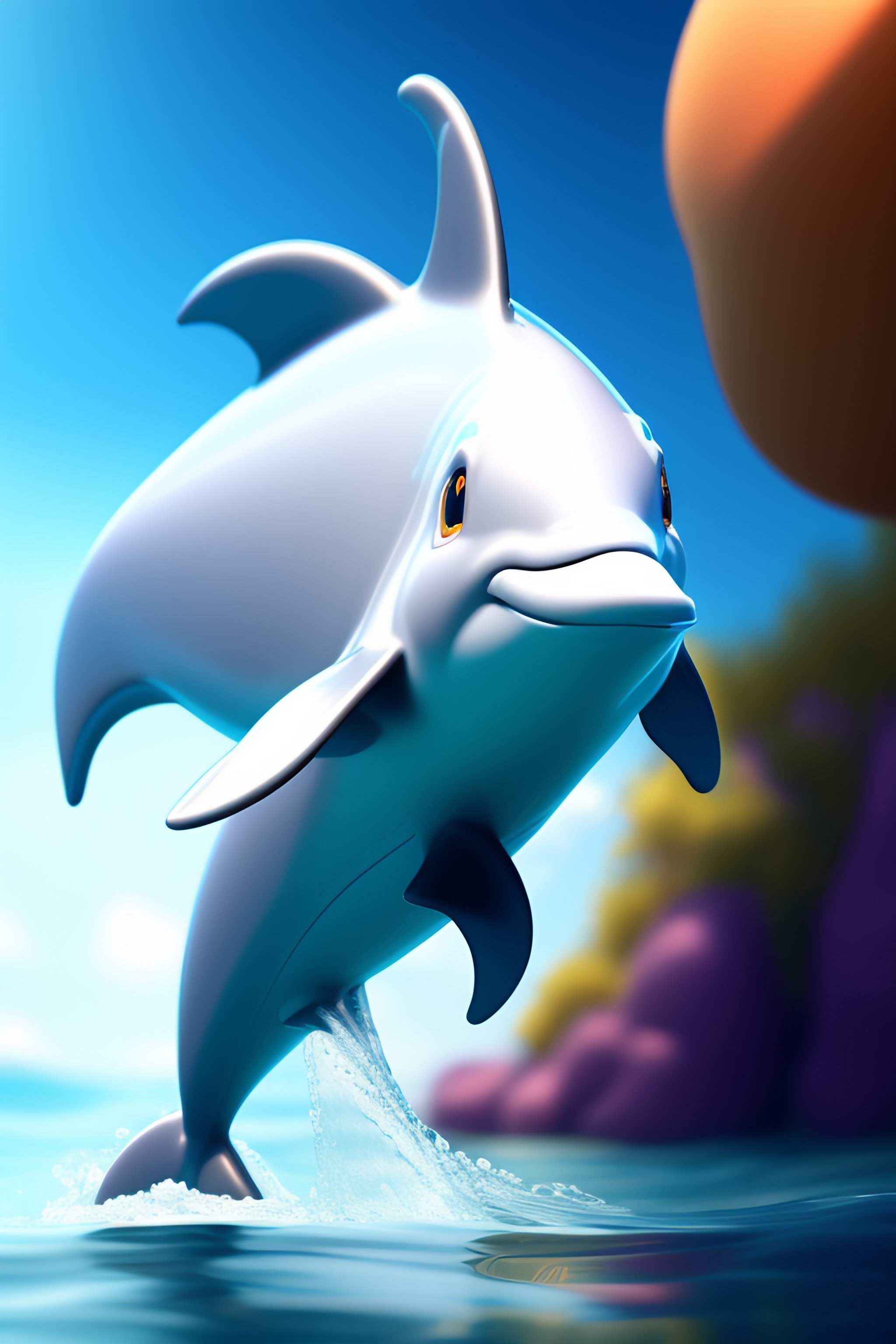 Cartoon dolphin, artstation, detailed, digital painting, cinematic, pixar, hyperrealistic, octane render, white background