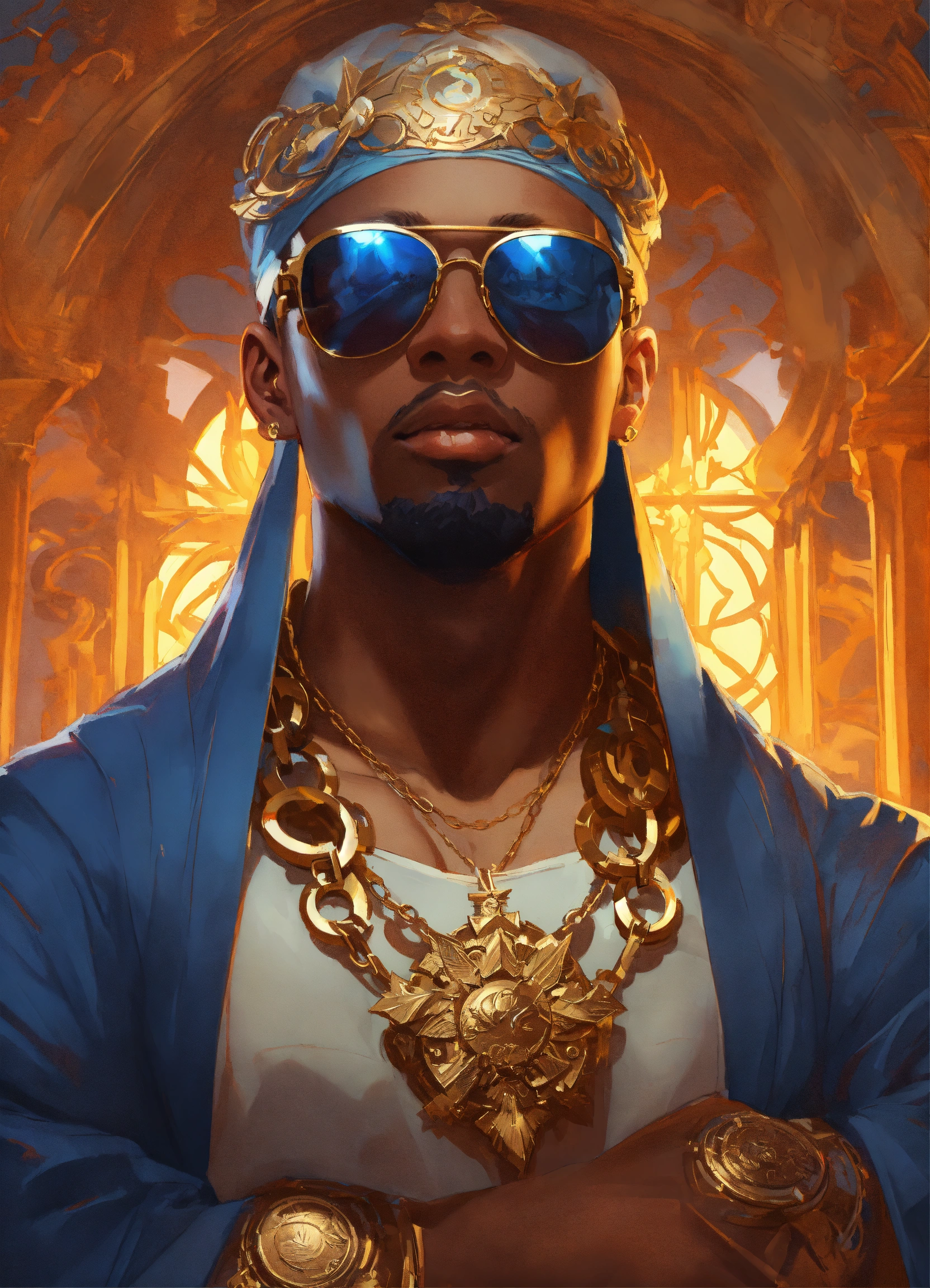 Cleric wearing hip hop chains and sun glasses, posing for a fight, intricate, elegant, highly detailed, digital painting, artstation, concept art, smooth, sharp focus, illustration, art by artgerm and greg rutkowski and alphonse mucha, 8 k