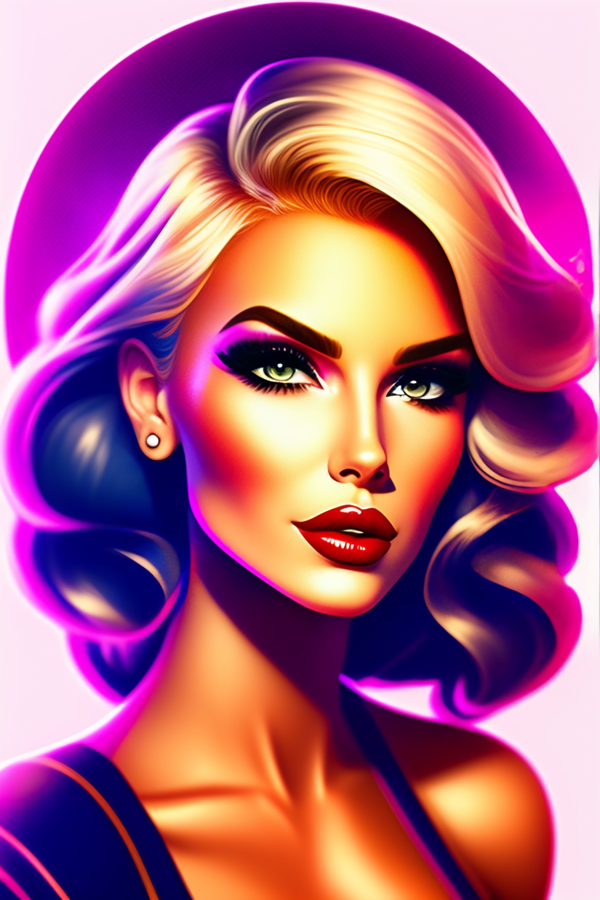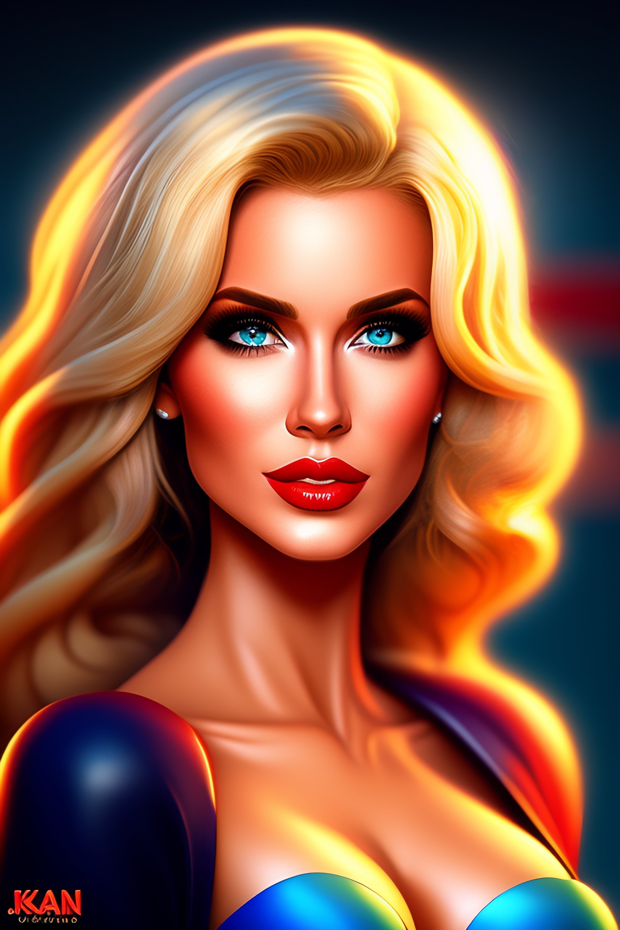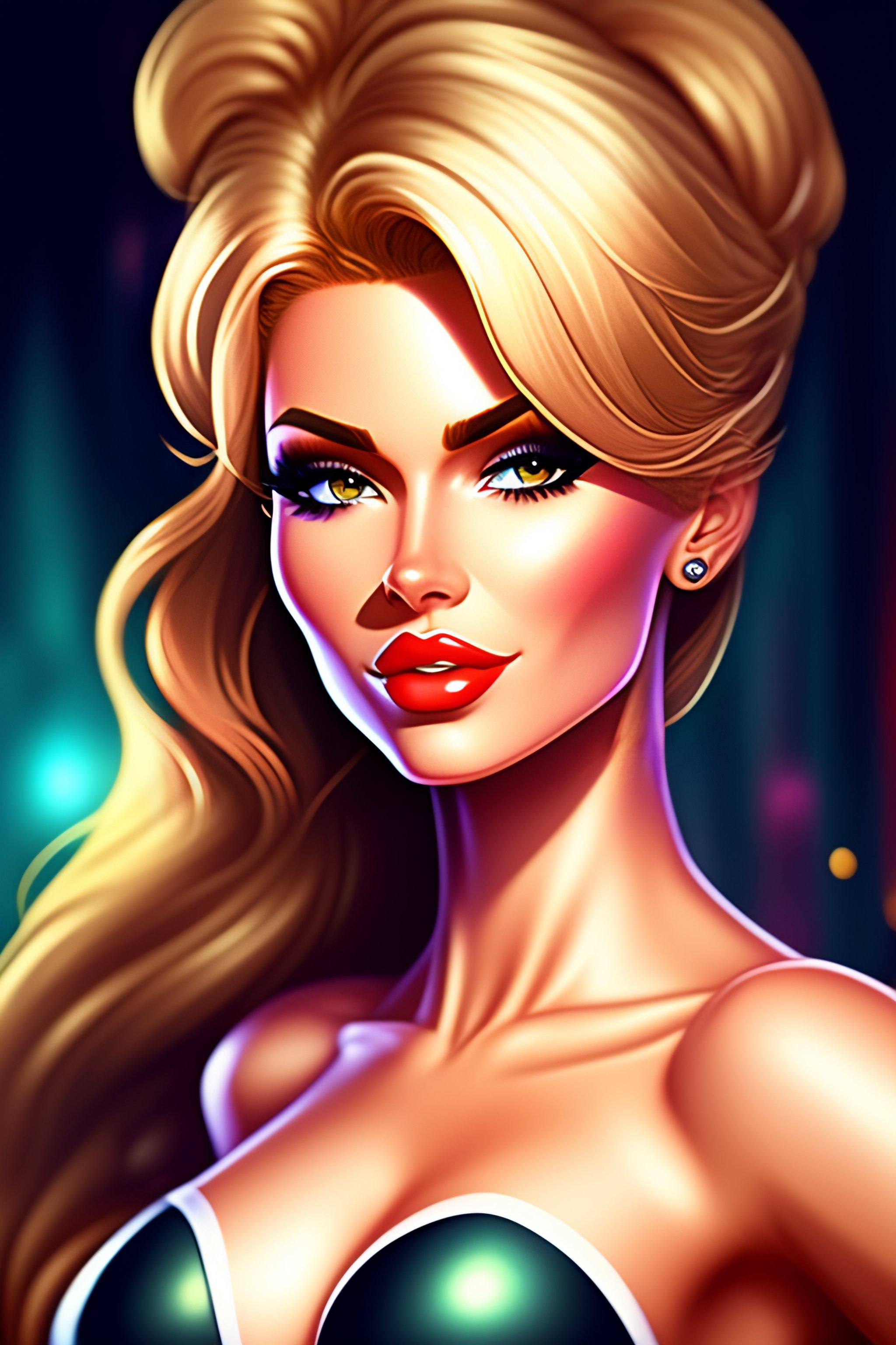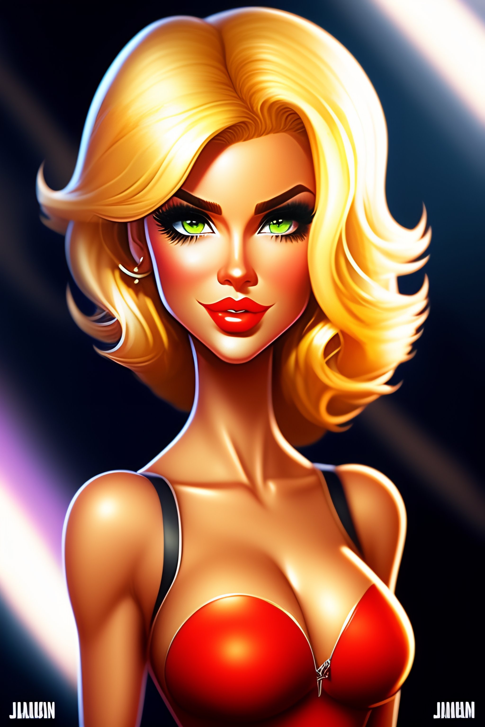 Cartoon artwork blonde woman attractive figure big lips and eyes thick hair in the style of "kaos comics" and "john persson"