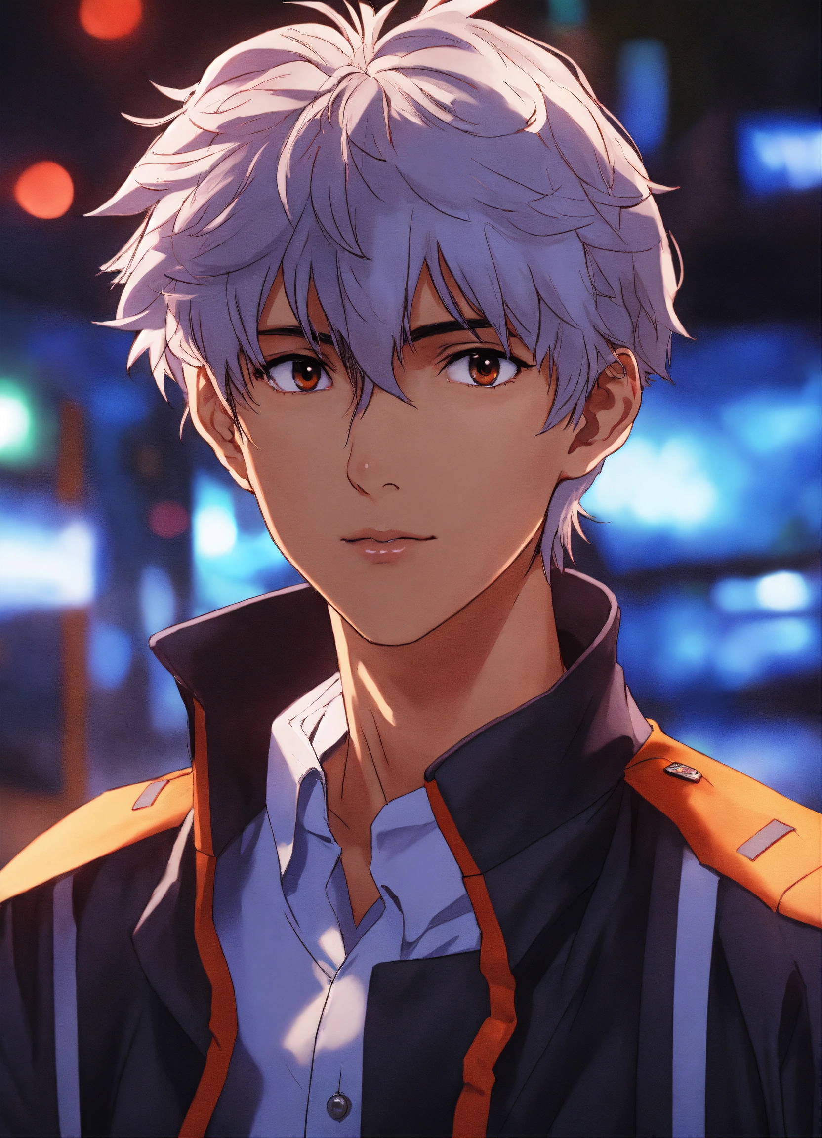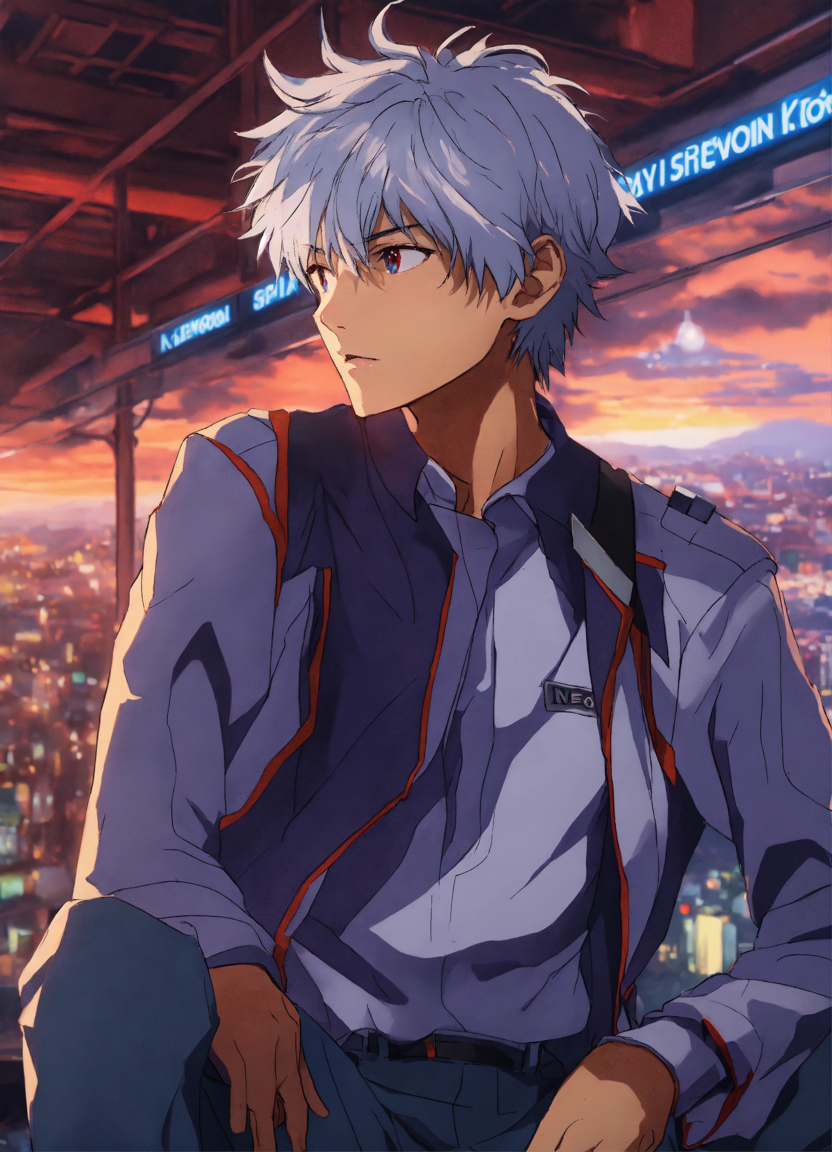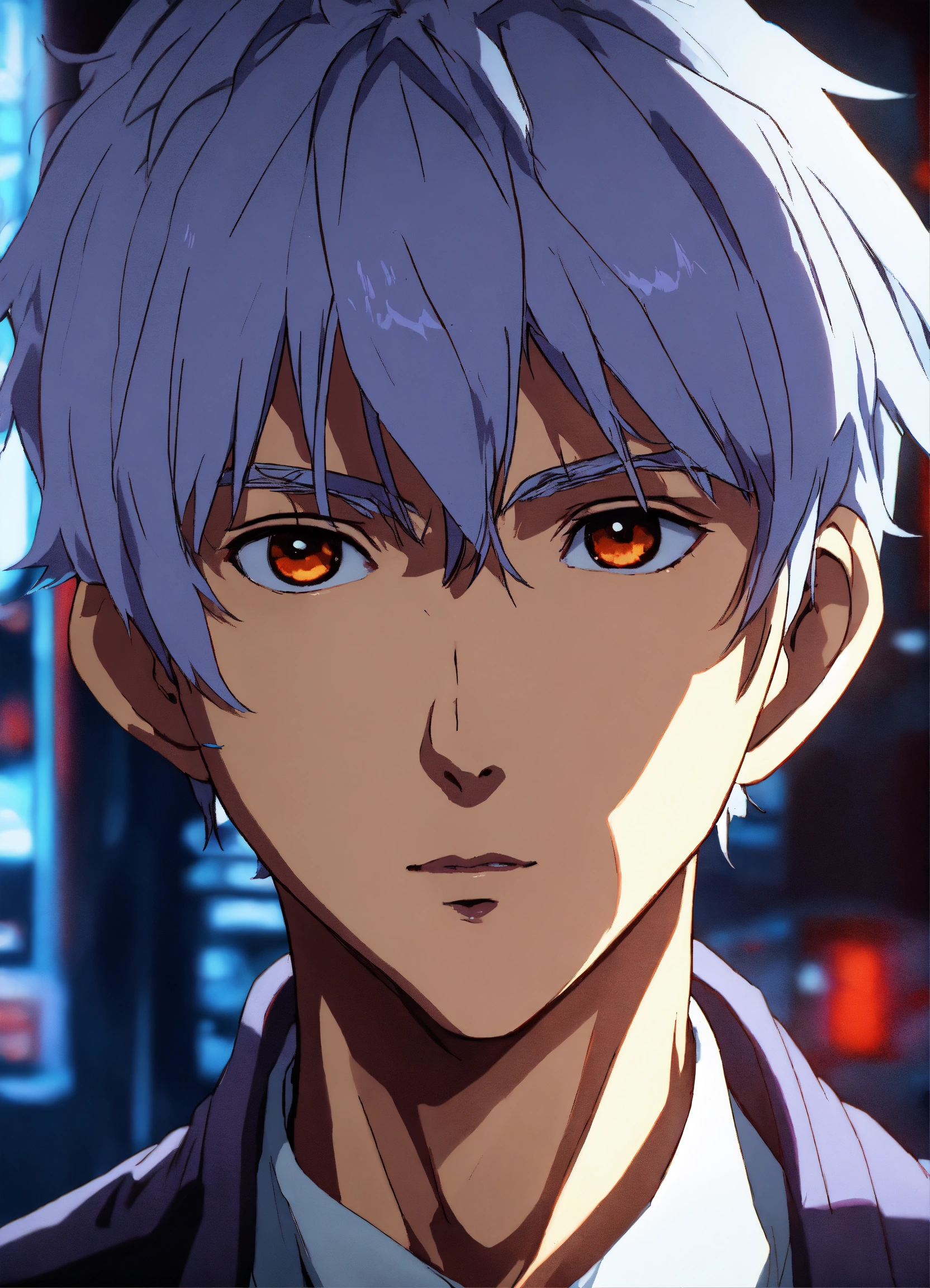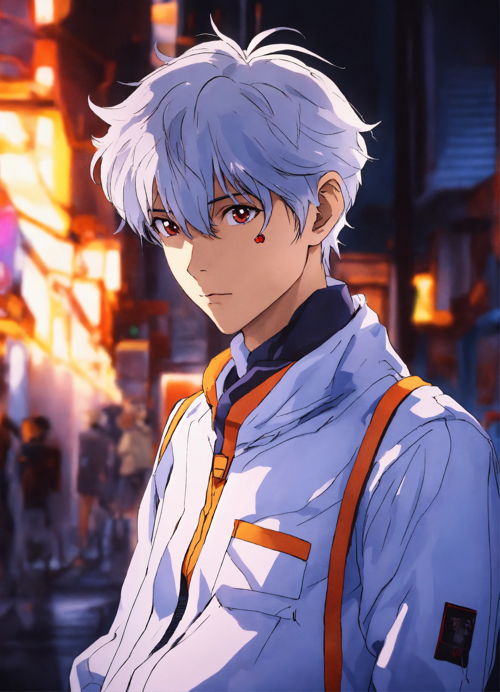 Portrait of kaworu nagisa from neon genesis evangelion, detailed scene, stunning details, anime, detailed environment, ray tracing, 8k