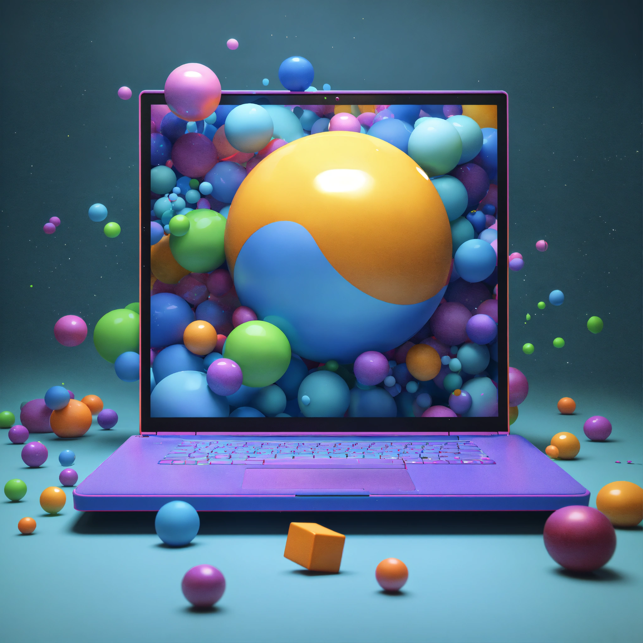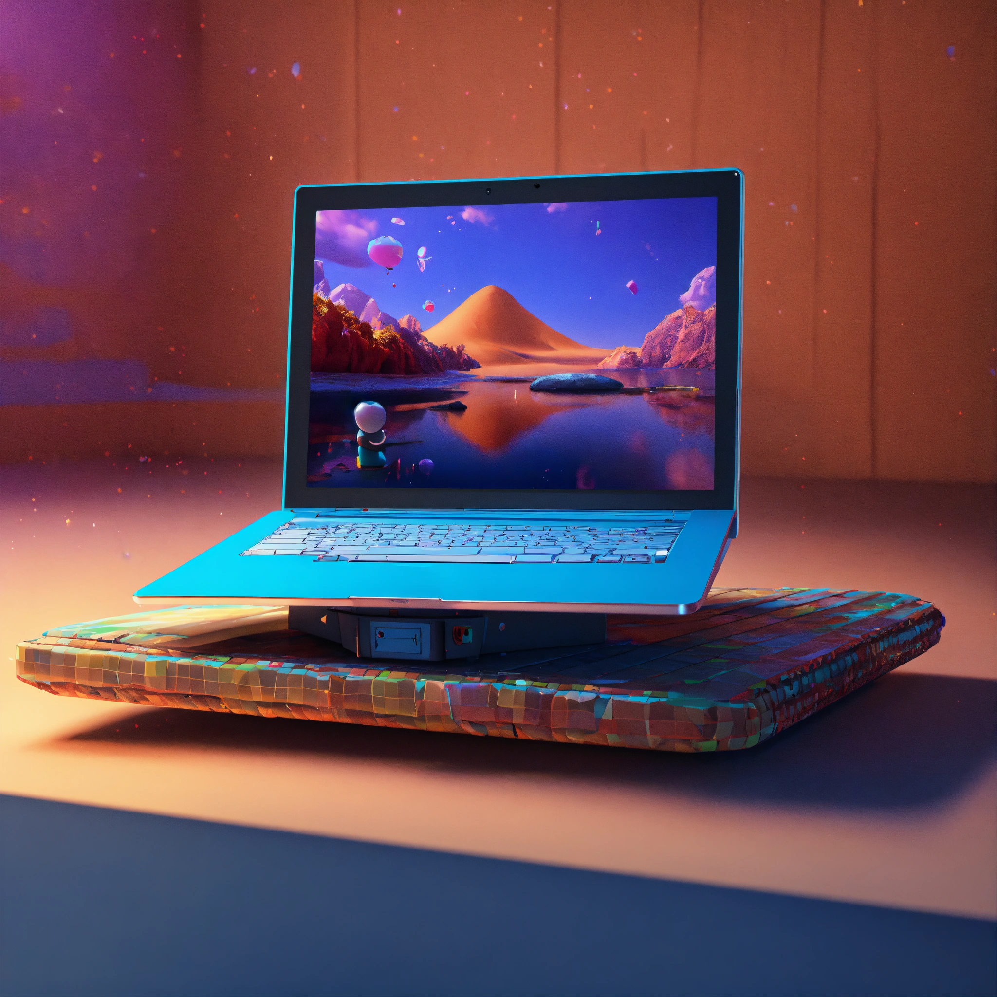 Floating laptop, 3d render, pixar style, detailed digital art, stylized 3d render, c4d, high quality, composition, masterpiece, artstation, solid background