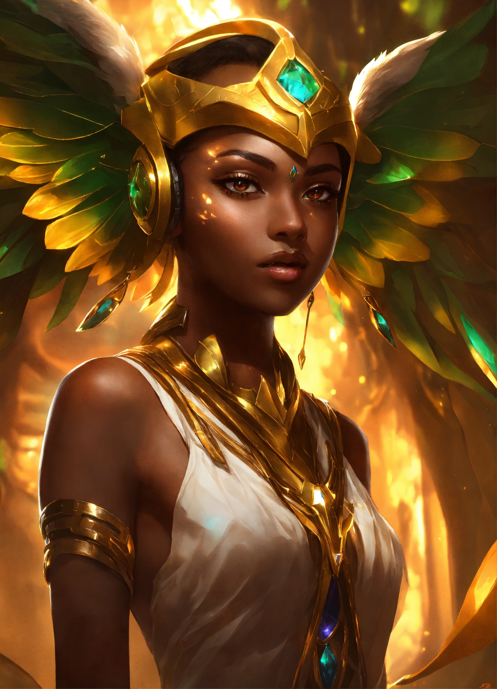 Ethiopian azir from league of legends, hyperrealistic, shiny, glossy, shadowed lighting, featured on vogue