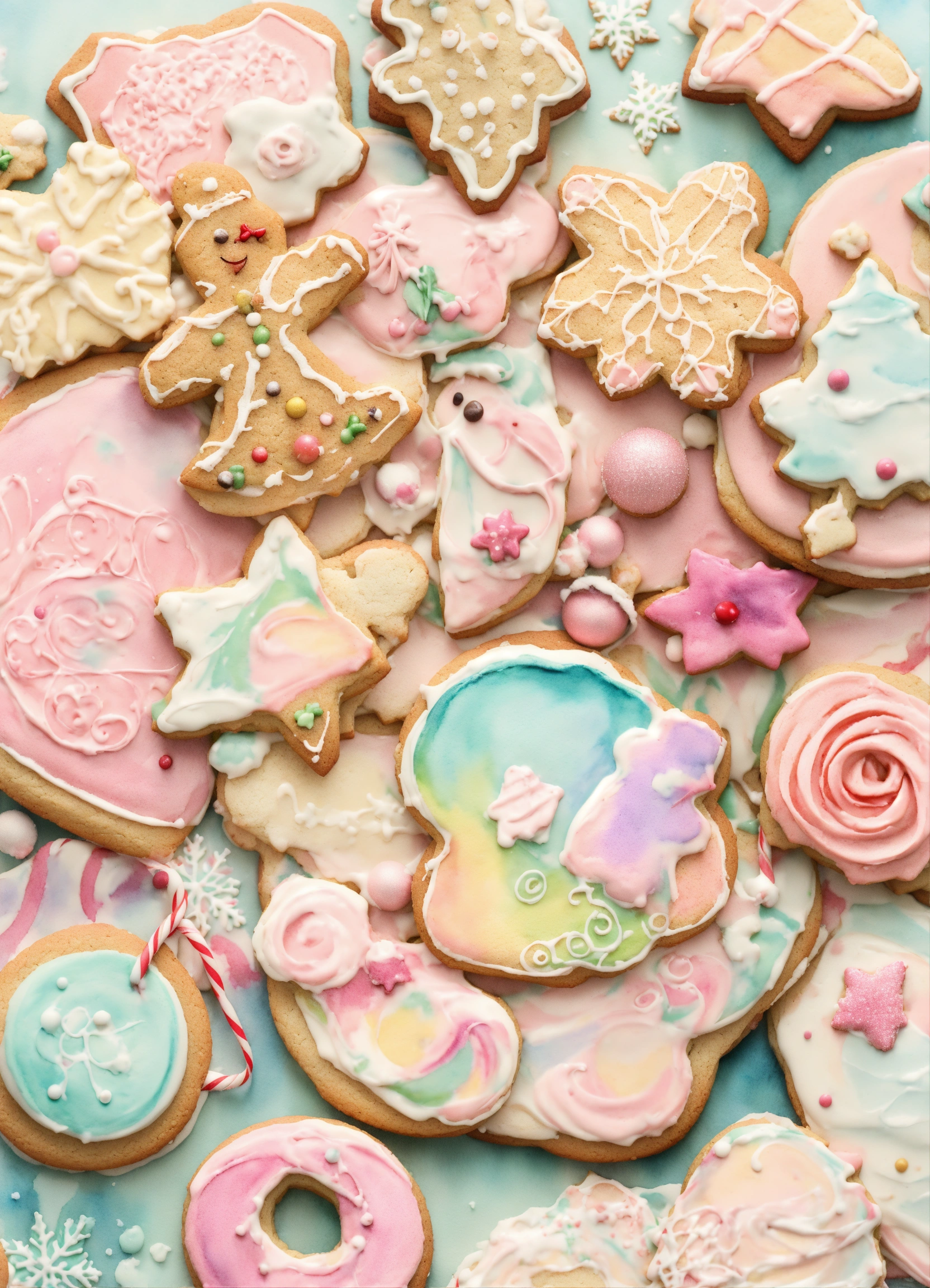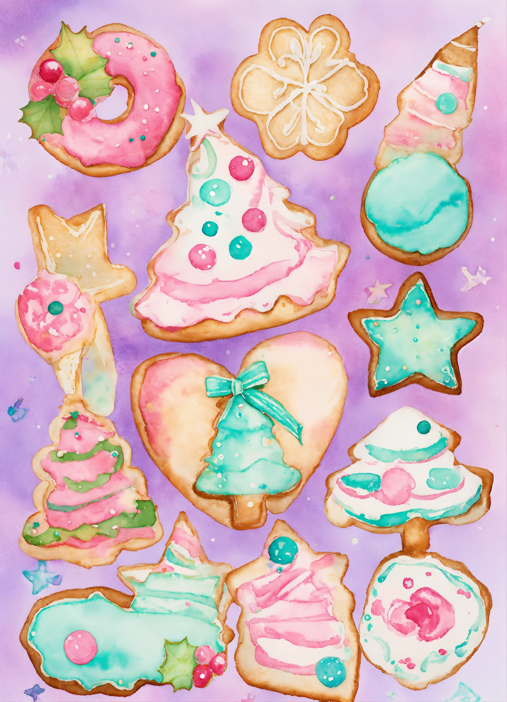 Shabby chic dreamy mist pastel colors junk journaling whimsical watercolor christmas baking cookies clipart bundle, jpg high quality, commercial use, pastel color pink baking, digital craft, christmas cookies