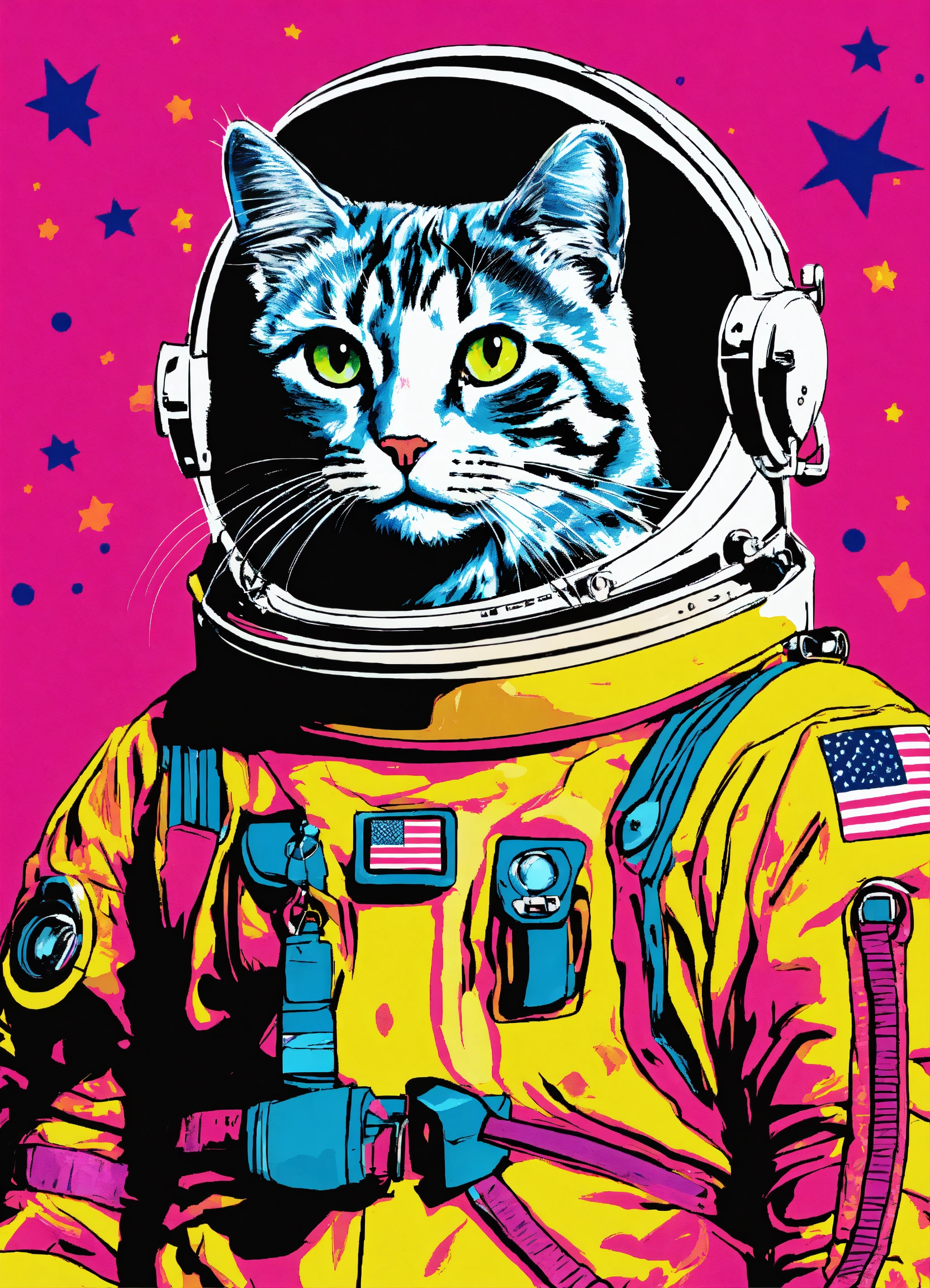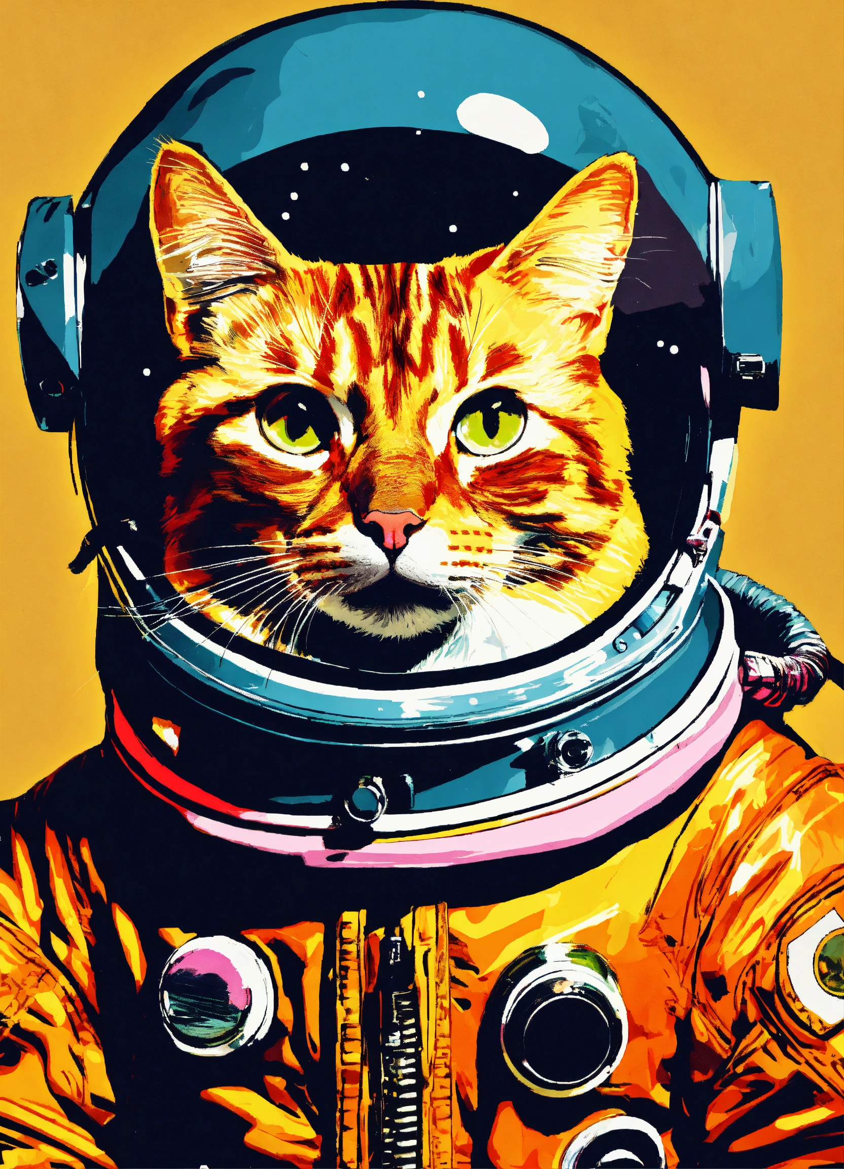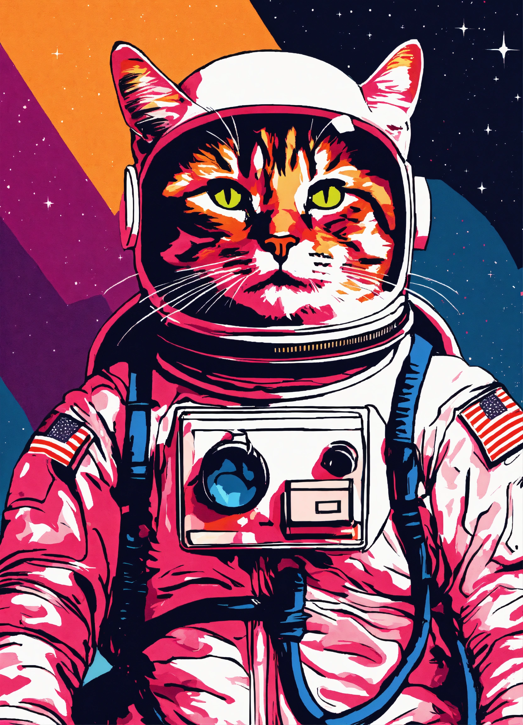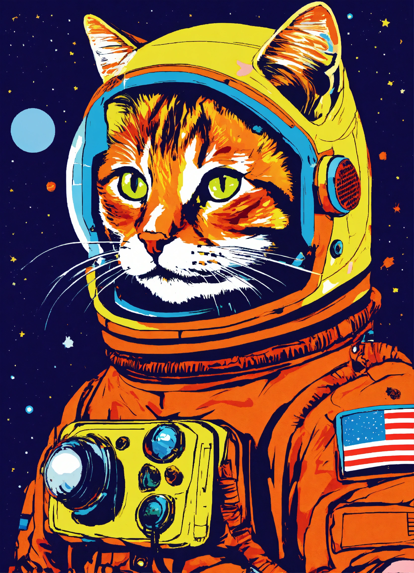 A cat in a space suit done in popart