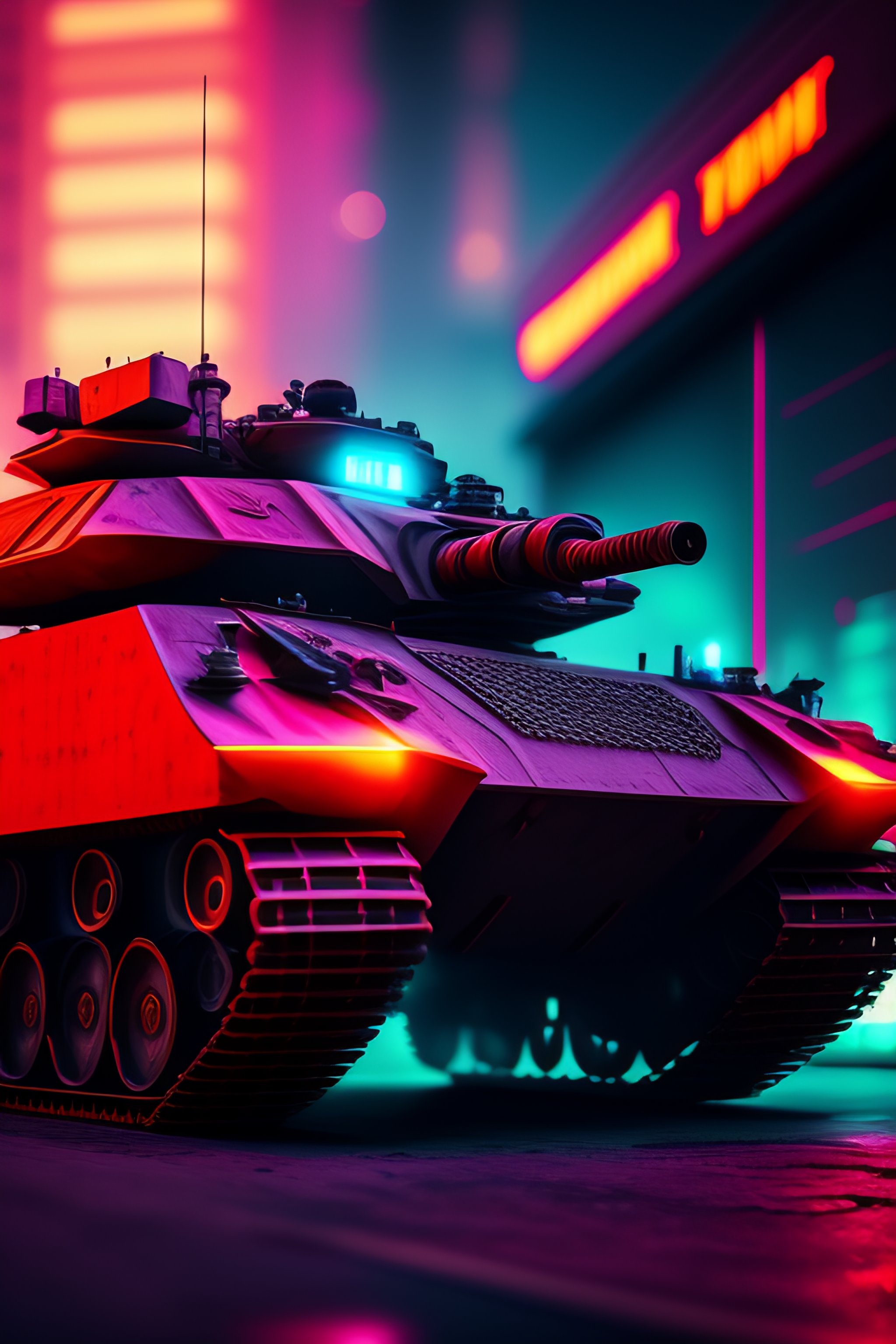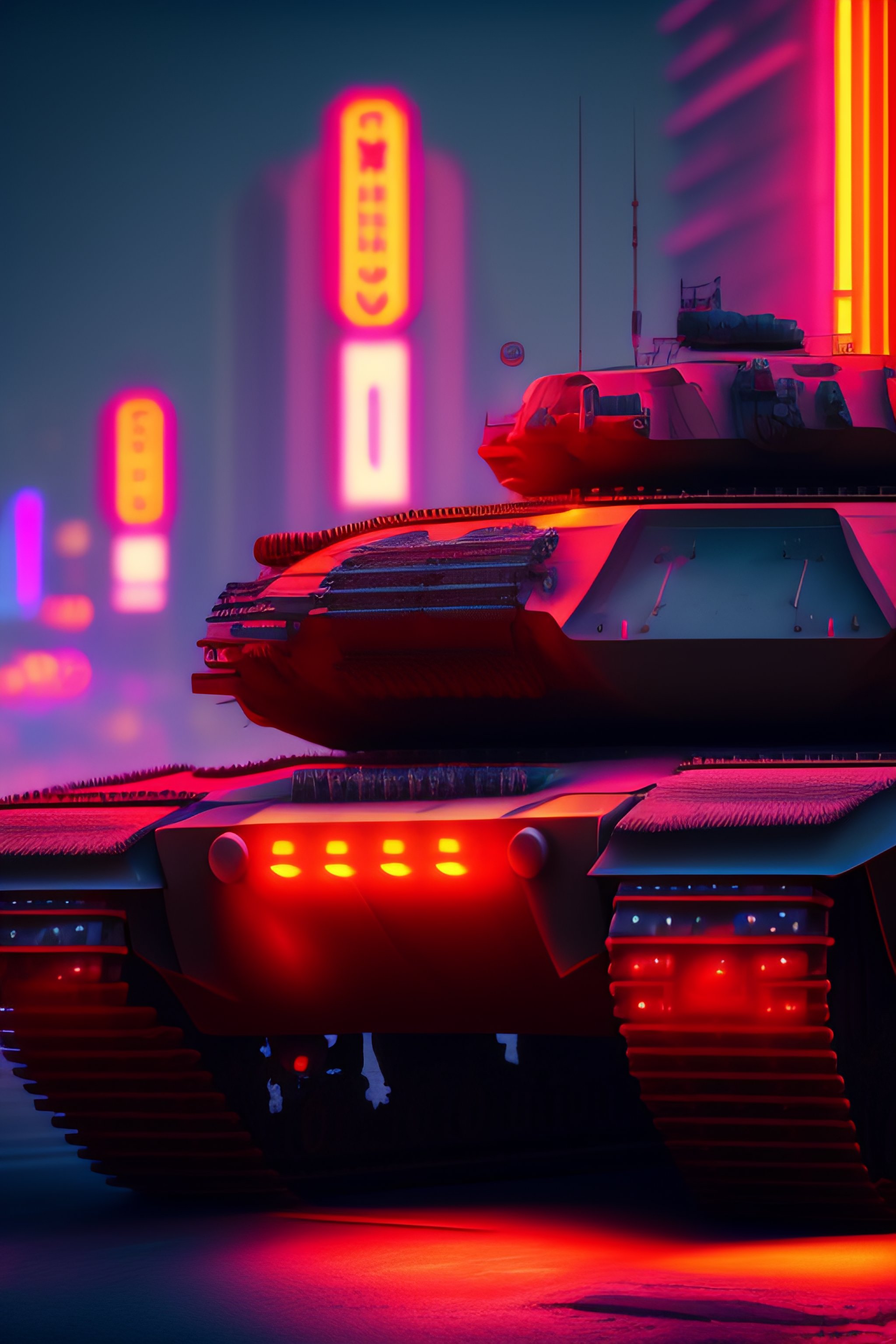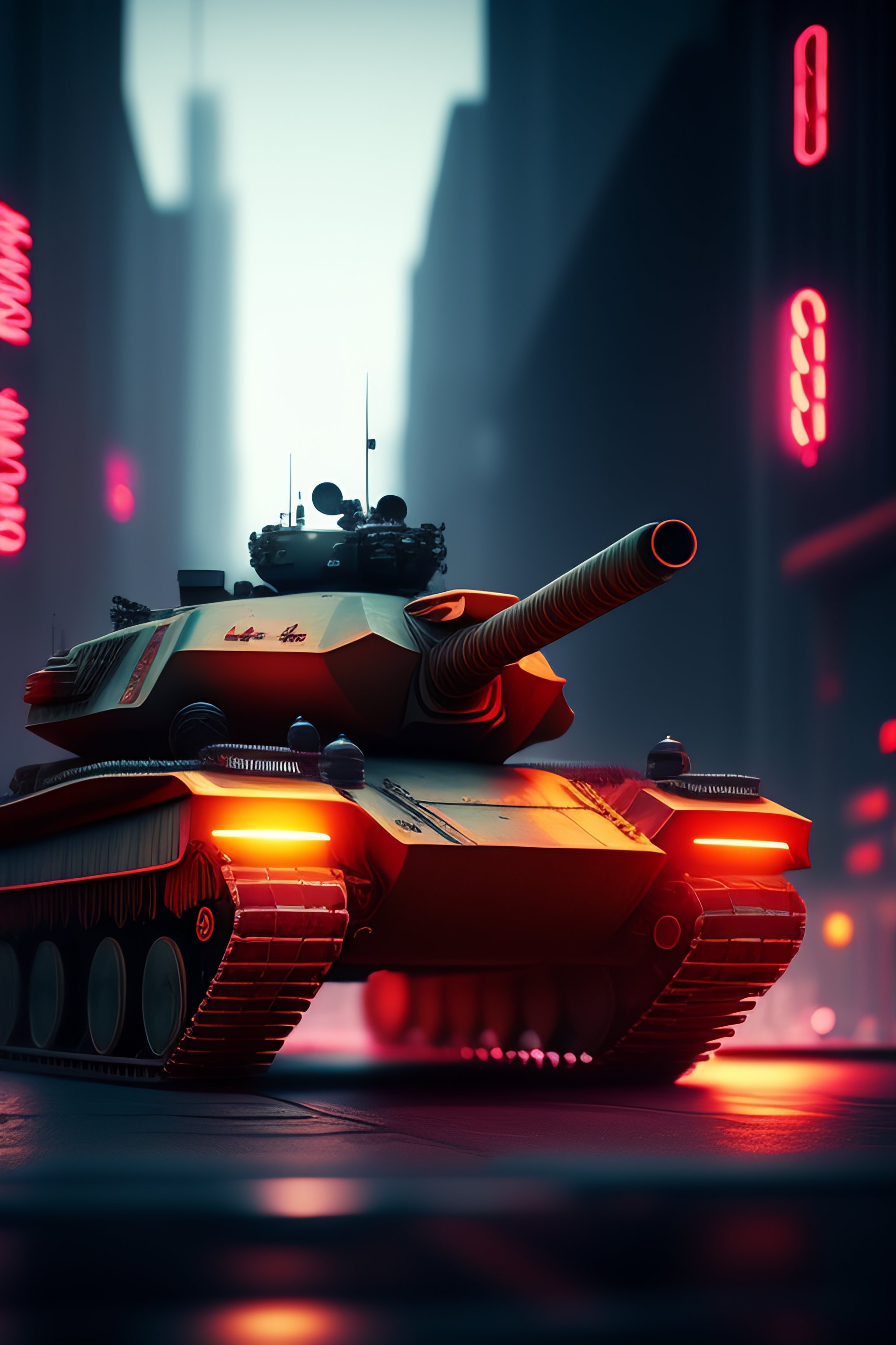 Beautiful tank cyberpunk hyper detail, cinematic lighting, magic neon, dark red city --ar 9:16 --testp --upbeta