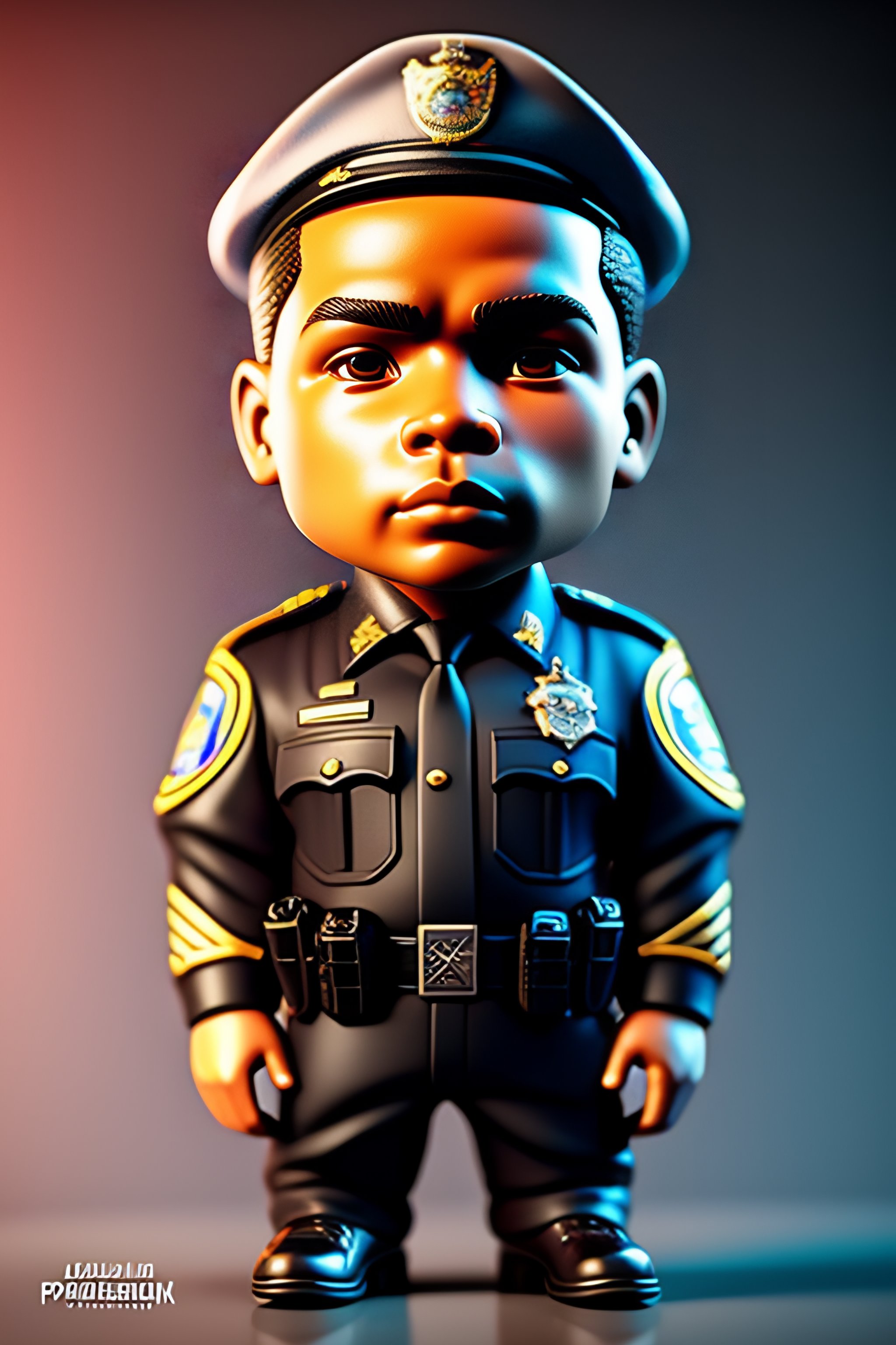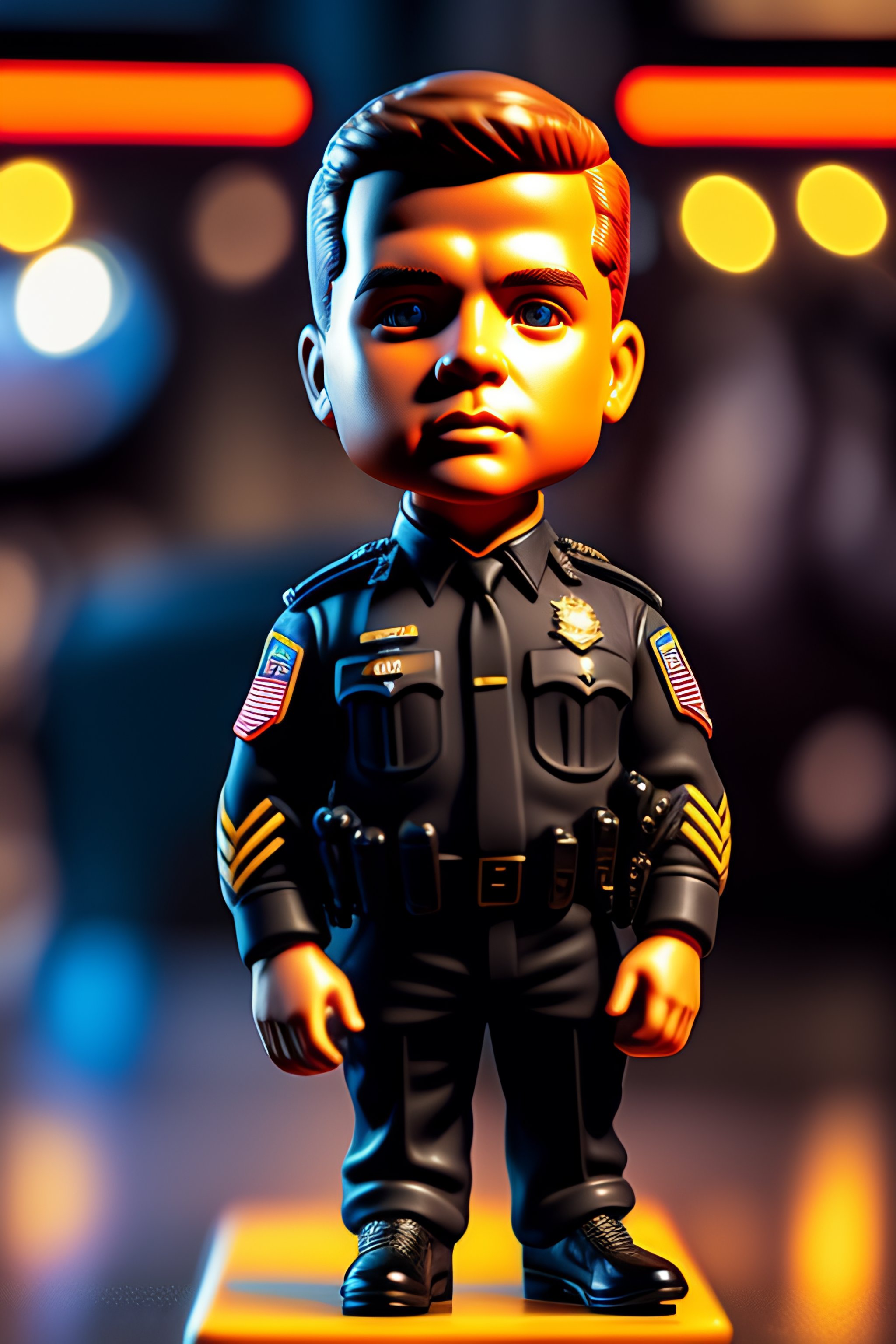 Joel mckinnon, police officer, bobble head, funko pop art, hyper detailed, professional lighting, film lighting, 35mm, 50mm, ray tracing, unreal engine 5, zbrush