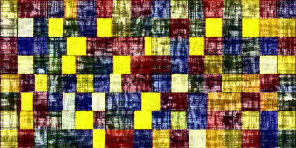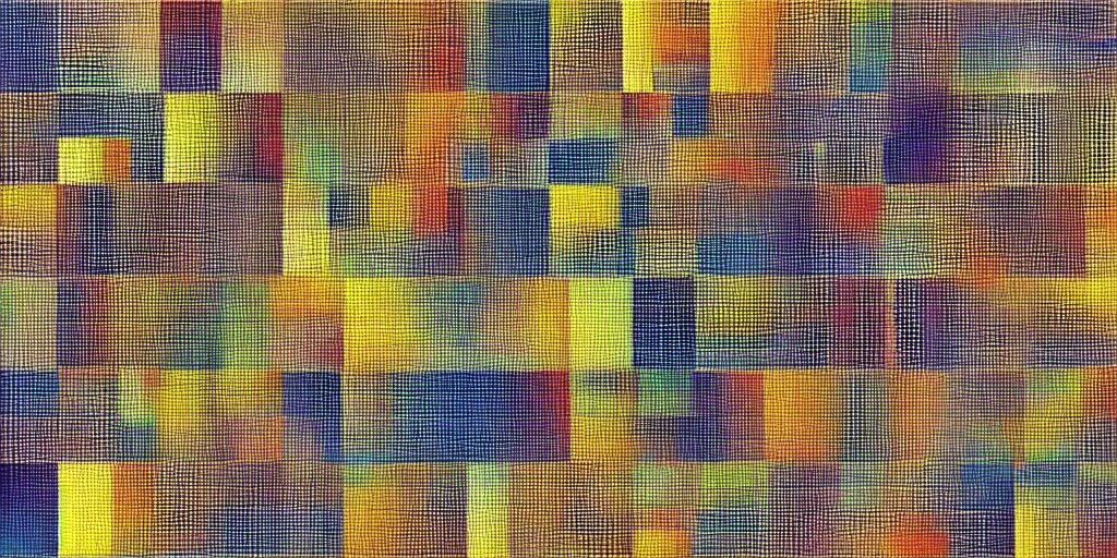 A mosaic painting of a grid of 1 0 2 4 colored squares, random muted colors, by gerhard richter, white border and background, lacquer on canvas, 1 0 2 4 farben abstract, geometric, sharp focus, highly detailed, digital painting, hyperealism, 8 k, hd