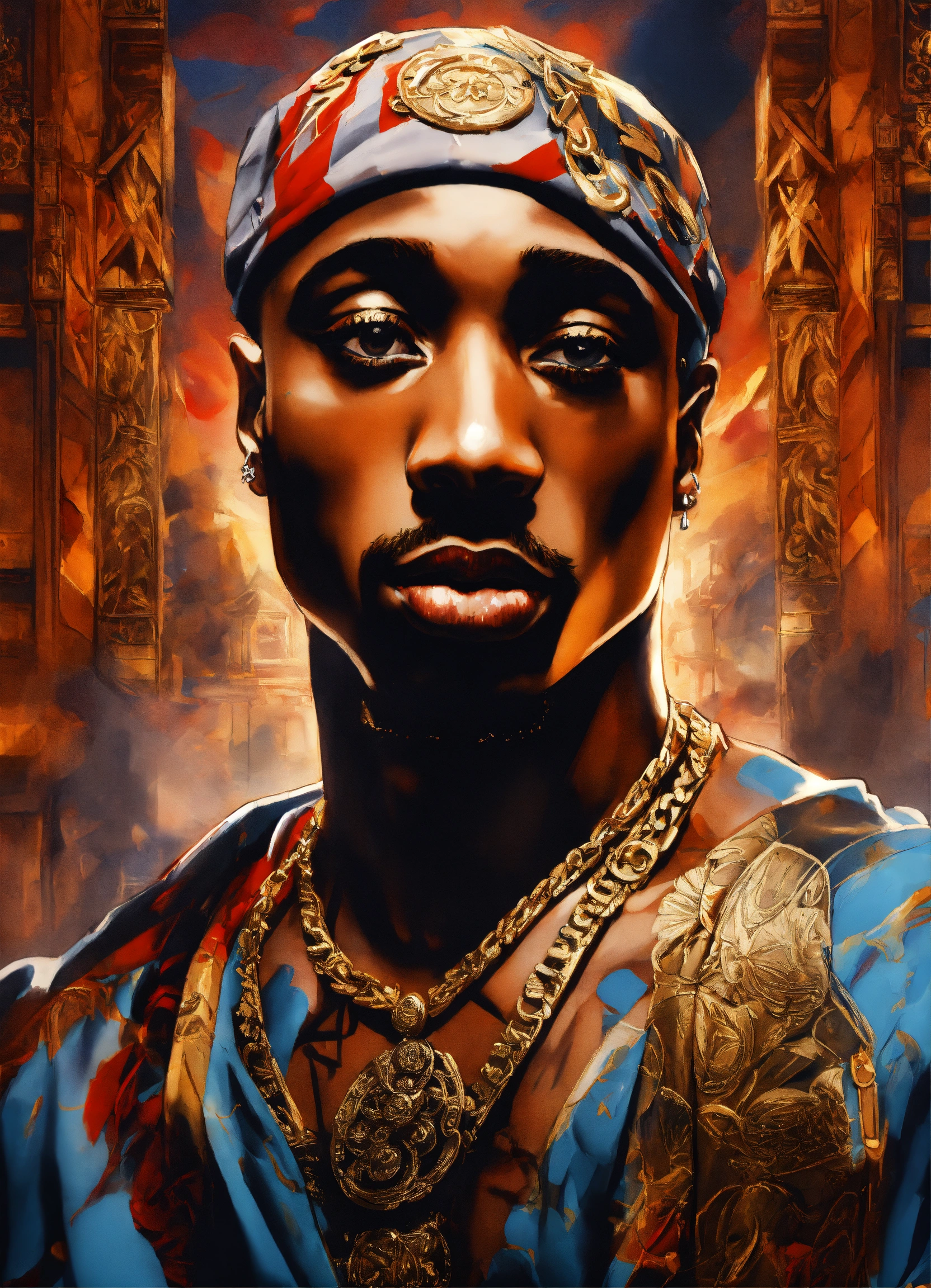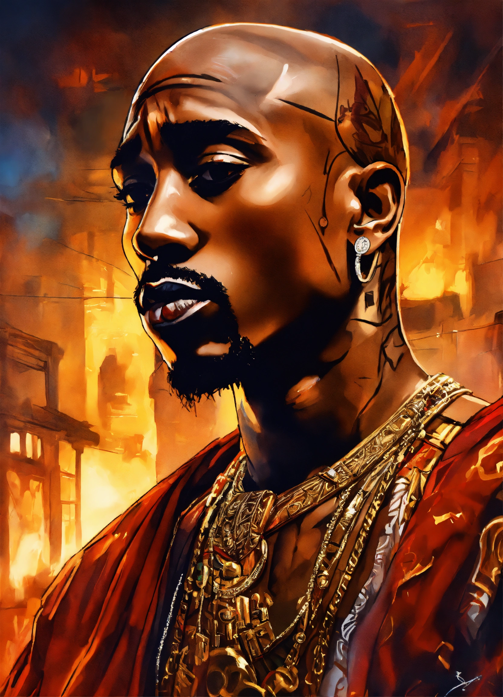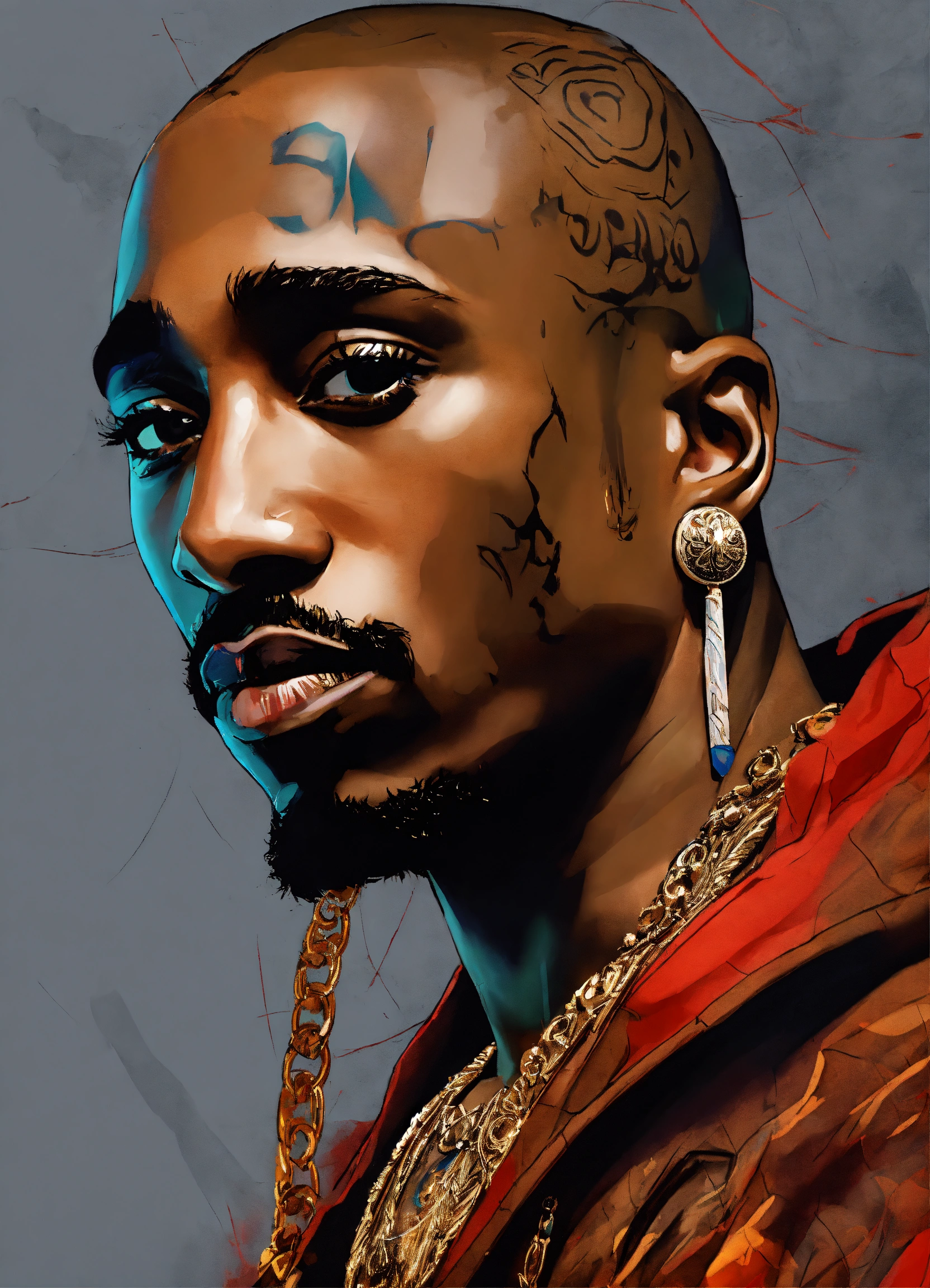 Abstract airbrush anime art of tupac shakur as julius caesar, 8k, stunning intricate details, by griffin one