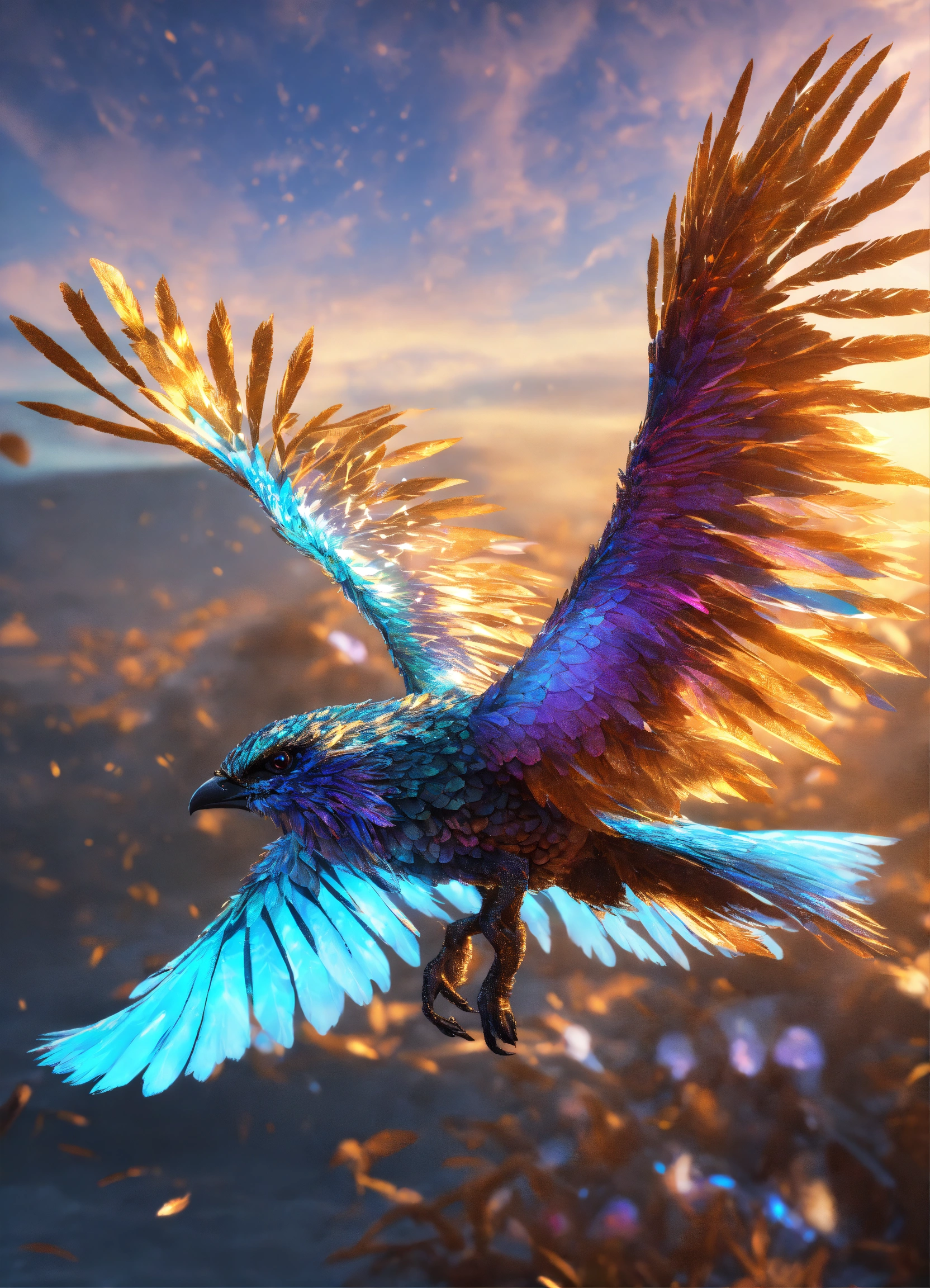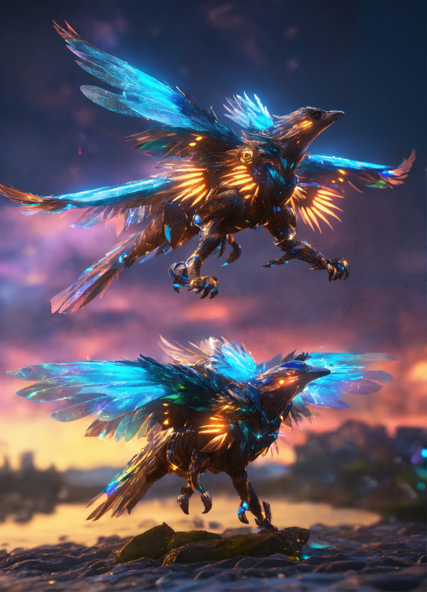 Holographic hydrahawk with multiple heads and shimmering holographic feathers, this critter, in 8k ultra 3d, can create illusions so realistic that they are often mistaken for reality.