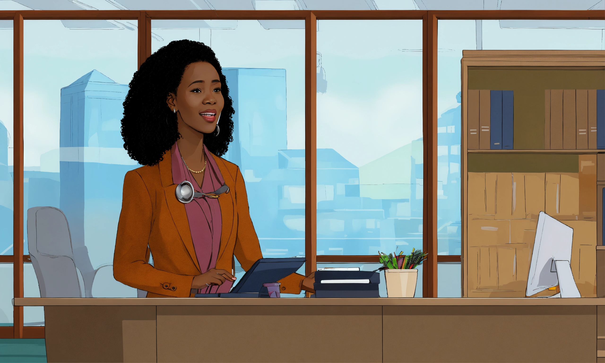 African woman age 40 waring coat