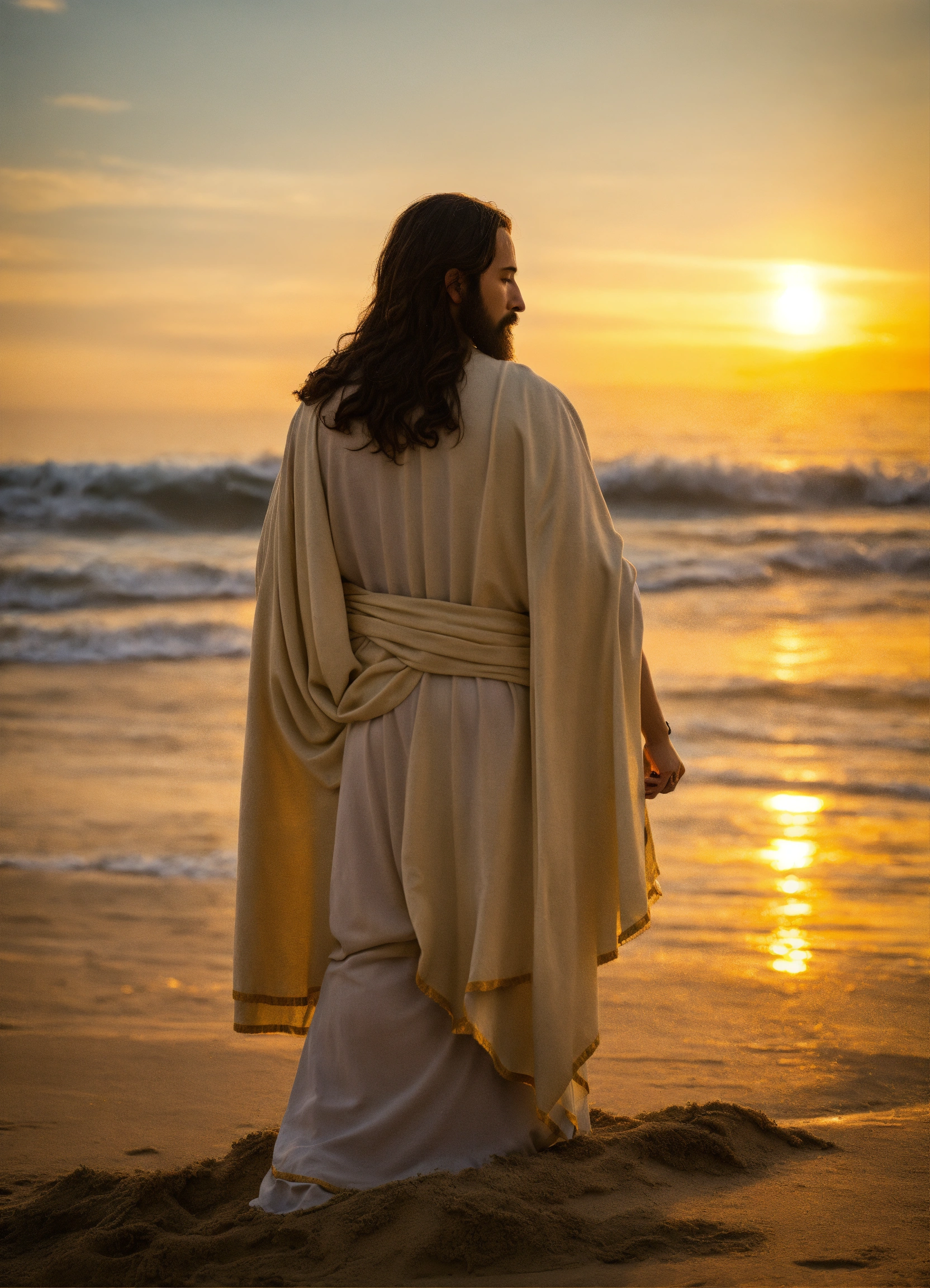 Jesucristo orando en la playa