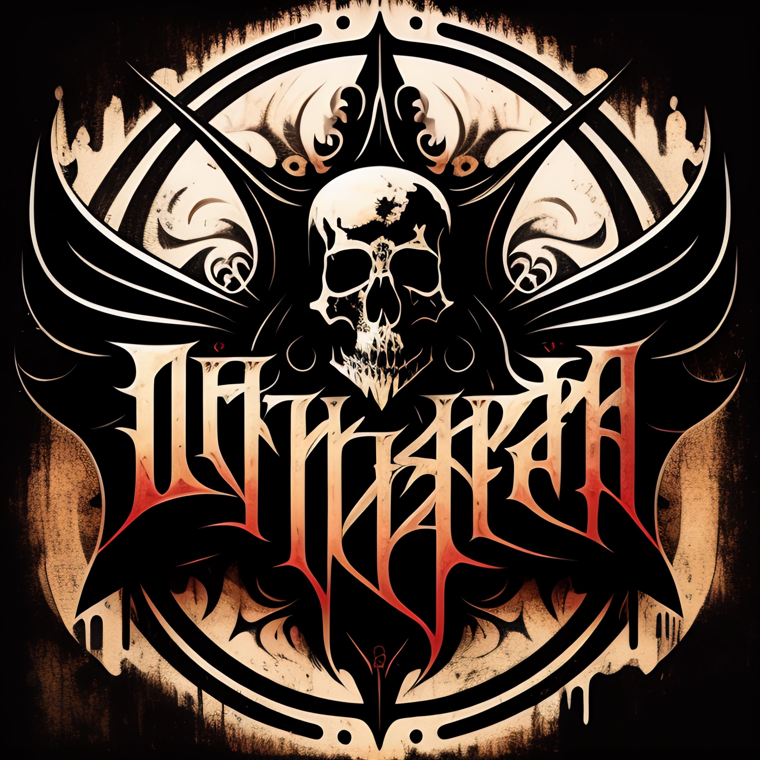 Death metal band album cover art, vector graphics, ornate illustration, metal text logo, distressed typography