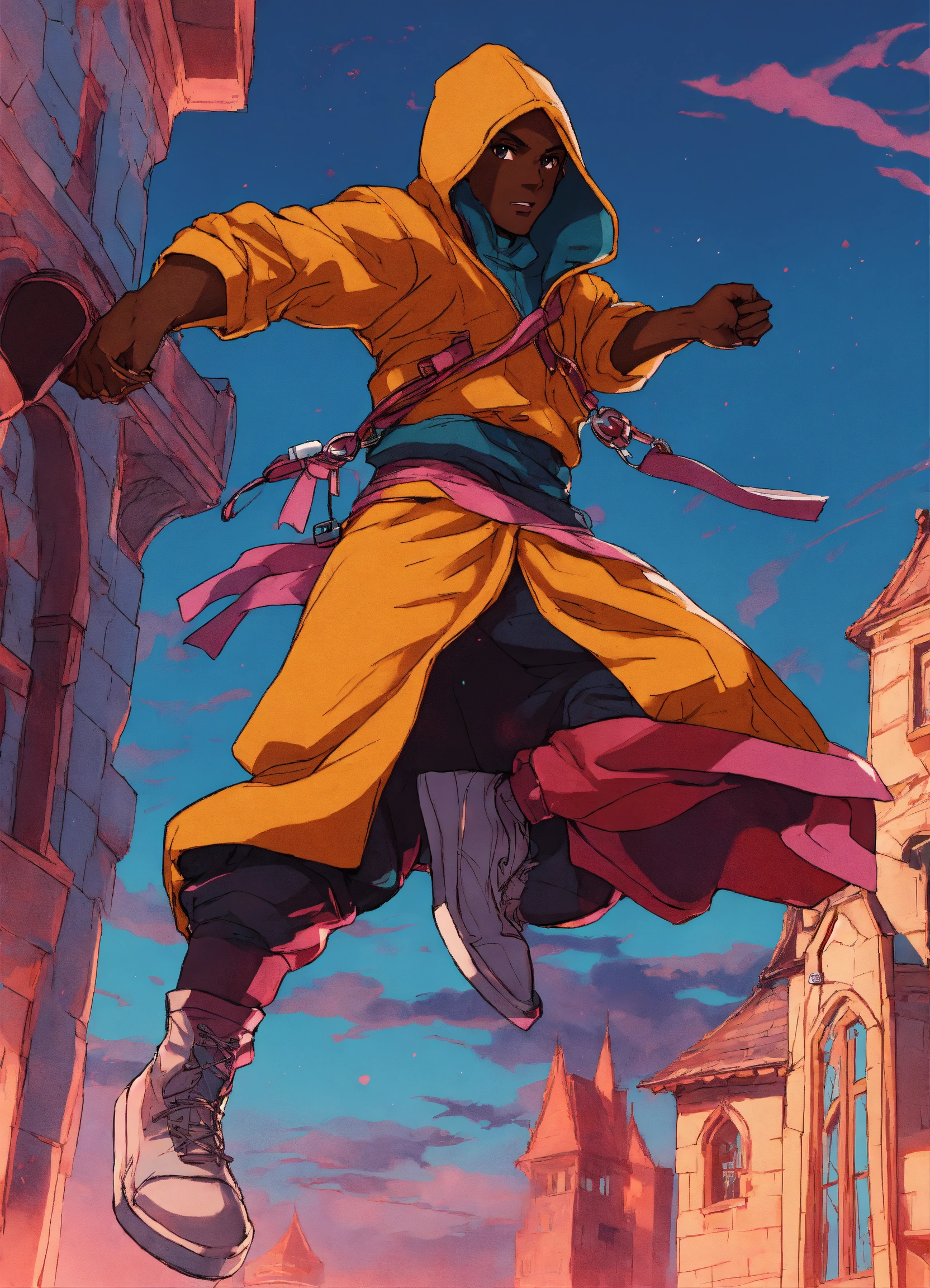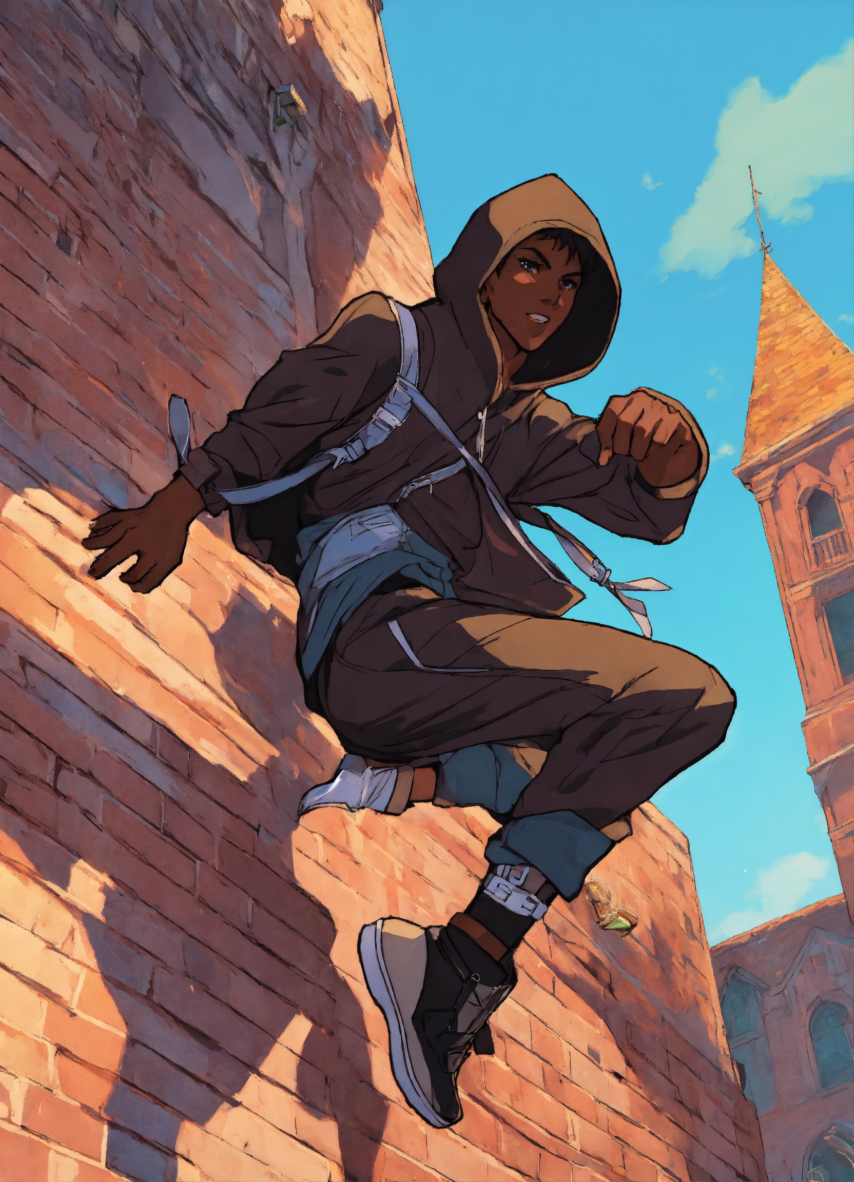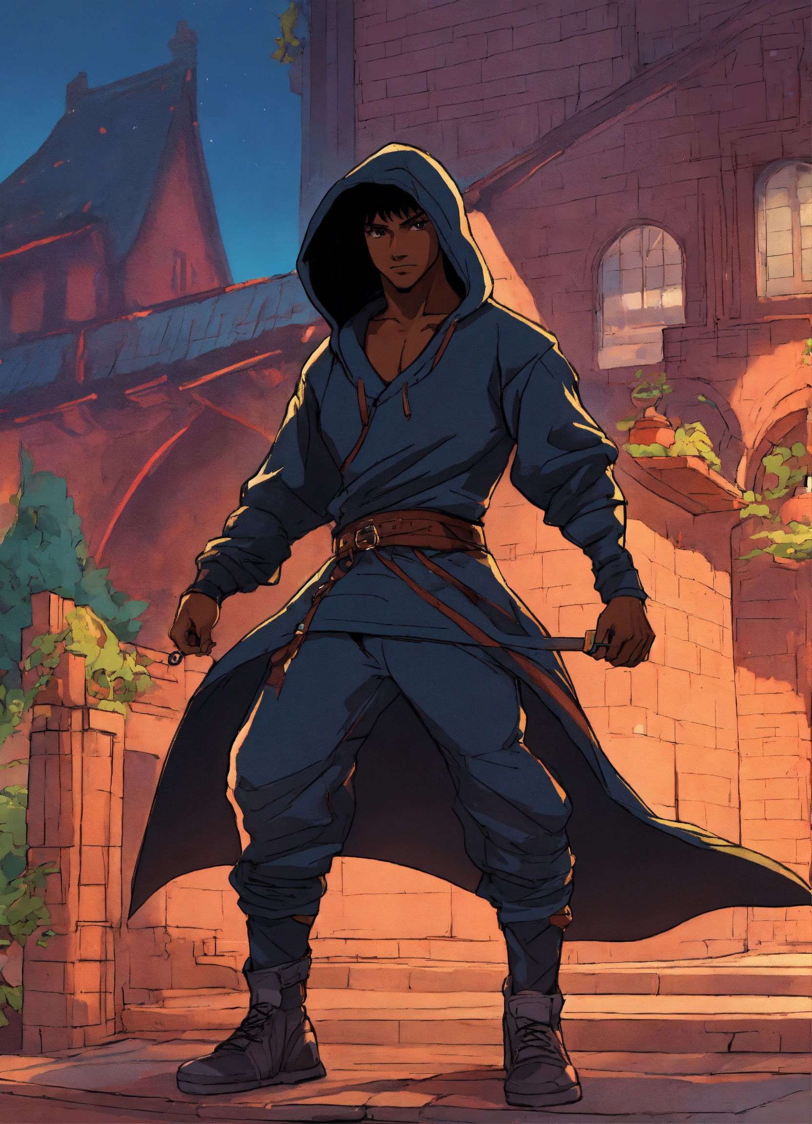 80s style anime black characters thief hooded medieval parkour