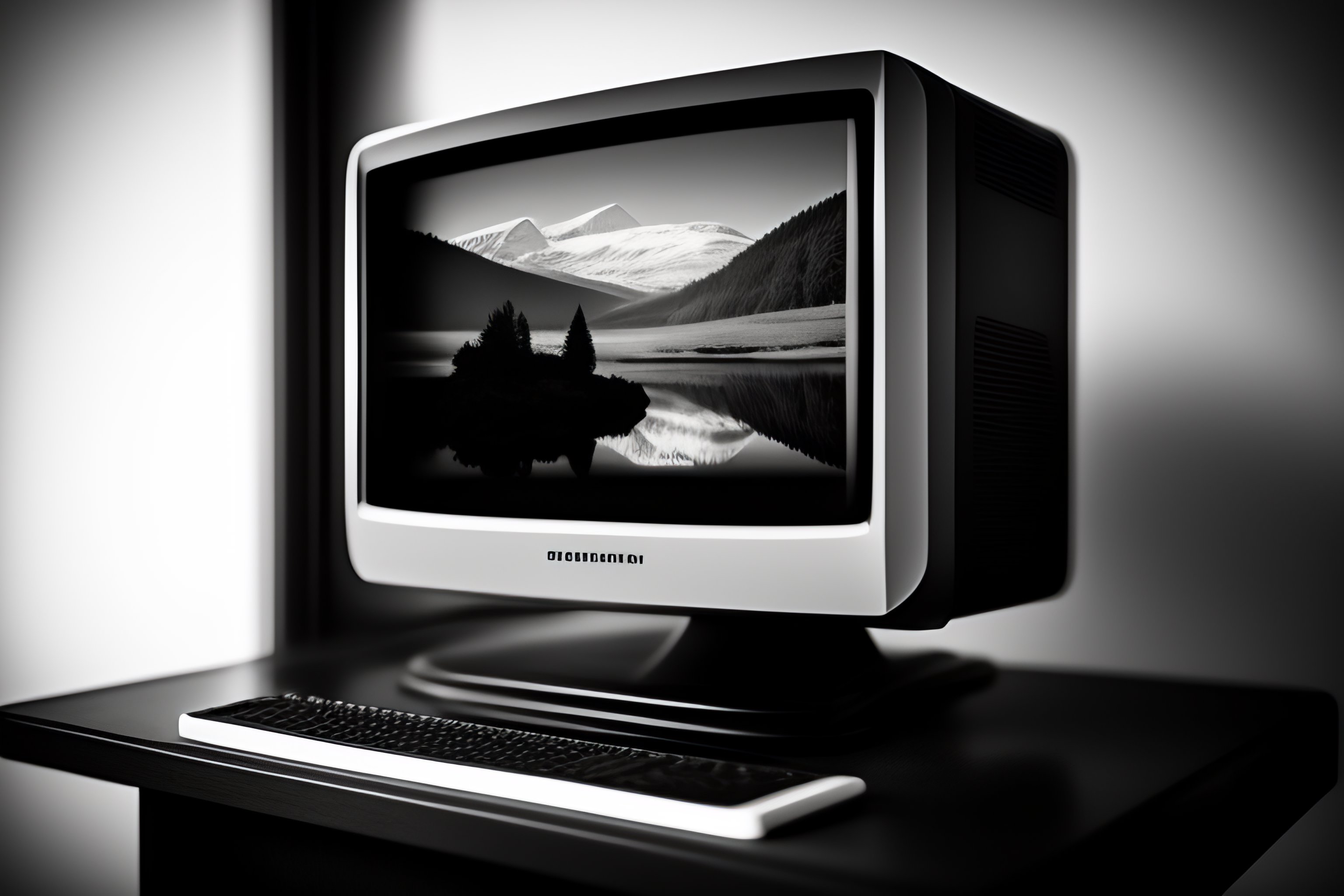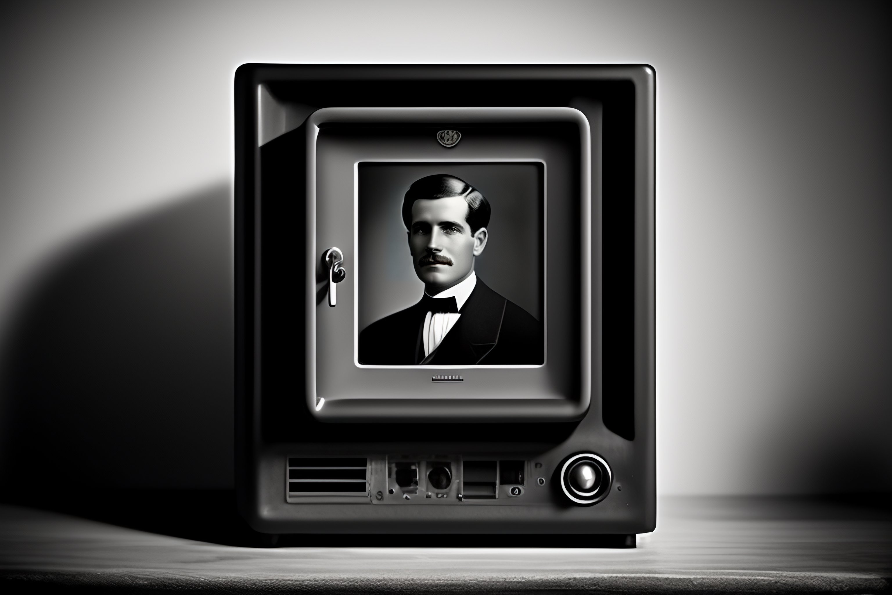 Old time photo, photo realistic photo of a modern day computer in the 1800s black and white damaged photo