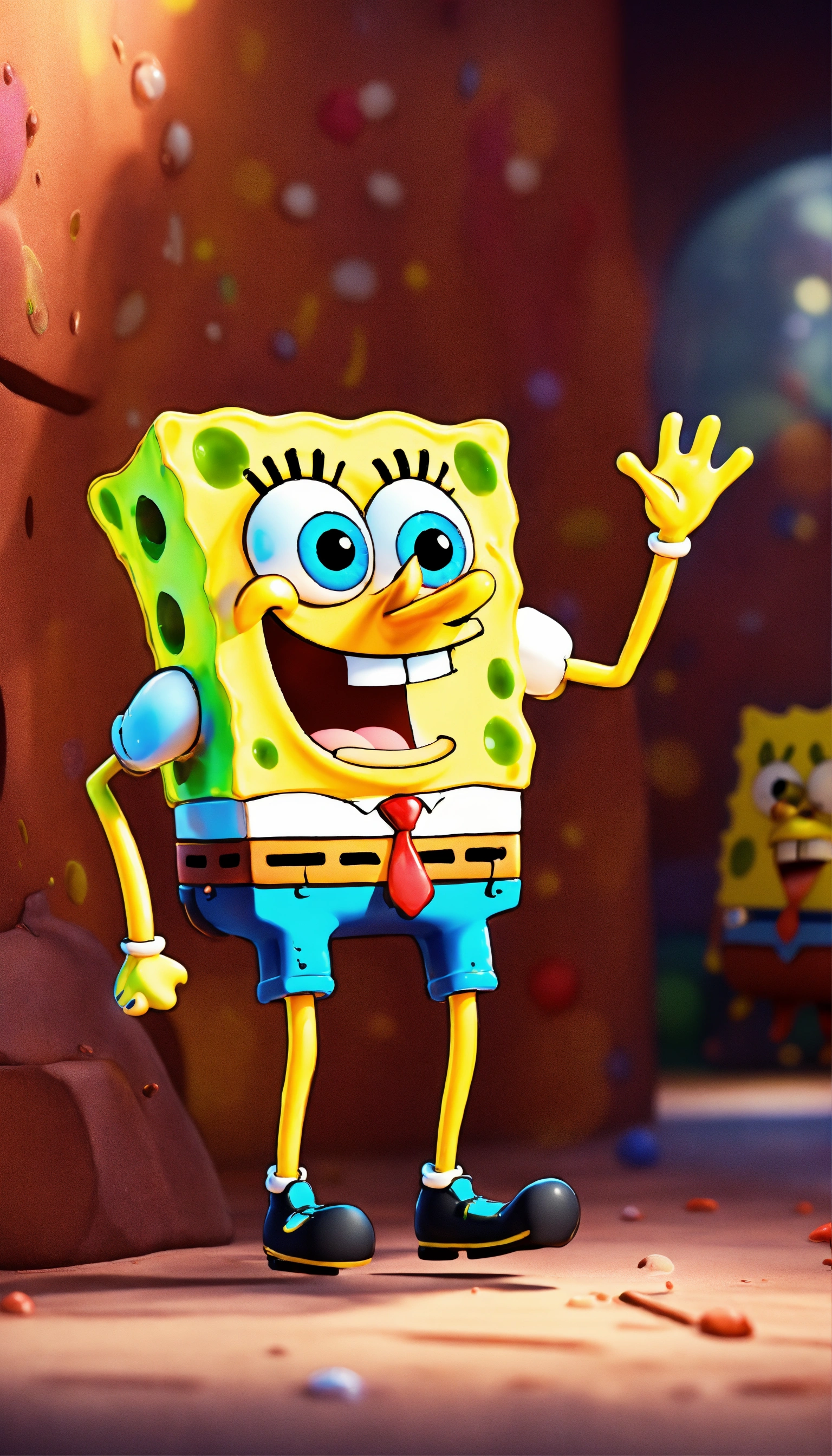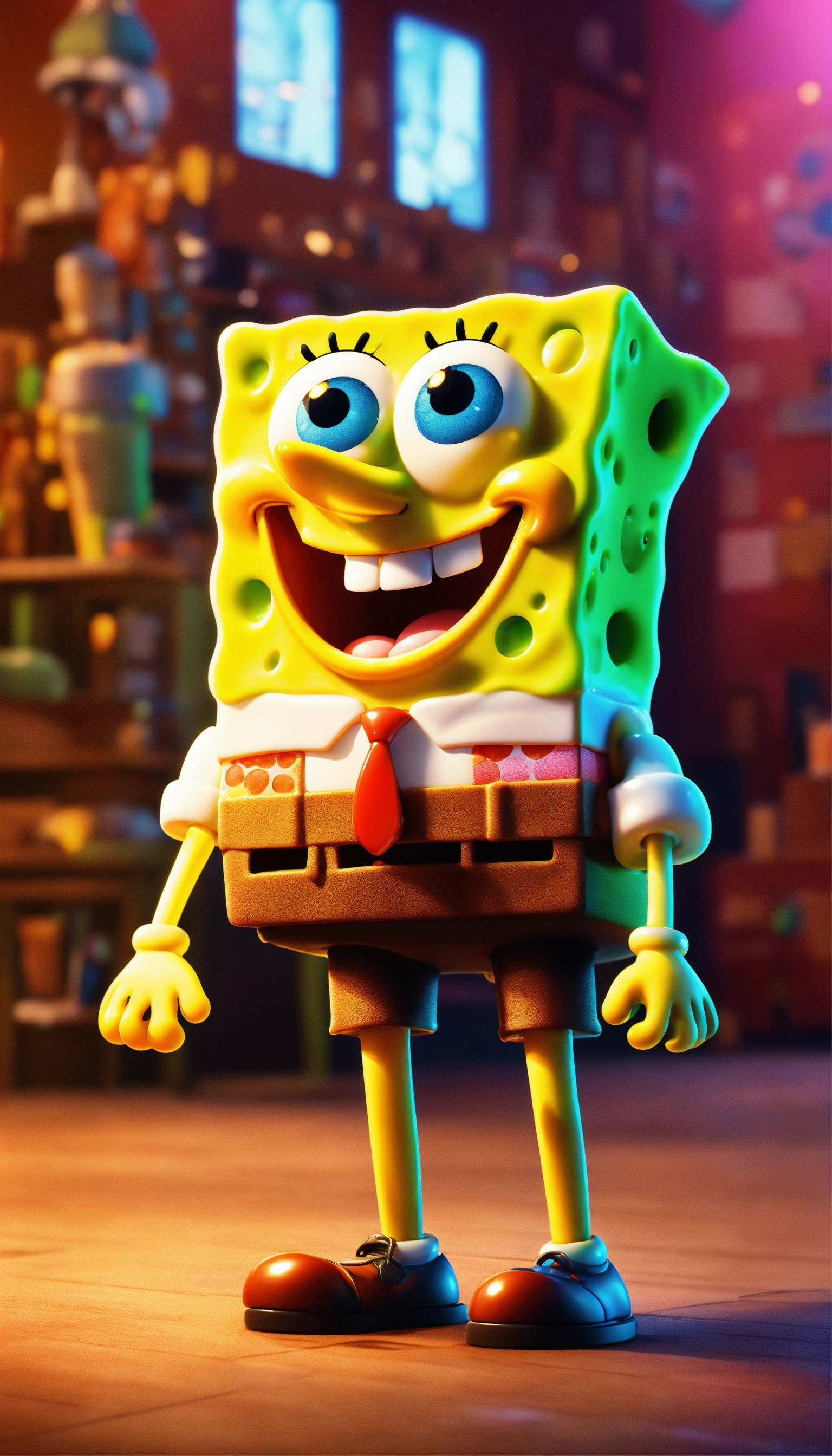 Spongebob, full body image of cute, realistic, vivid colors octane render trending on artstation, united colour background wall, beautiful, attractive, 3 d rendering, pixar cute, andrew dickson, detailed, realistic, 3d, cartoon style, well shaded, smooth, pixar, 8k, high quality