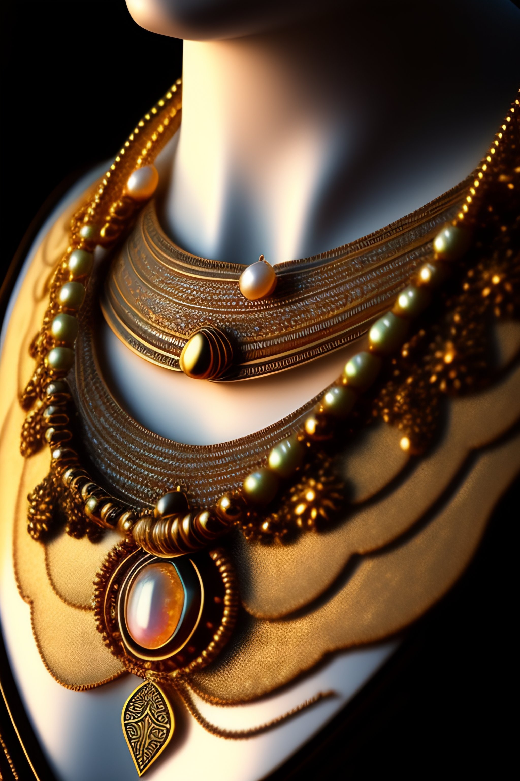 Hyperrealistic neo - rococo solarpunk aesthetic minimal jewelry necklace, embroidery, leather, highly detailed digital art masterpiece, smooth cam de leon eric zener dramatic pearlescent soft light, ground angle hd 8 k, sharp focus, vintage