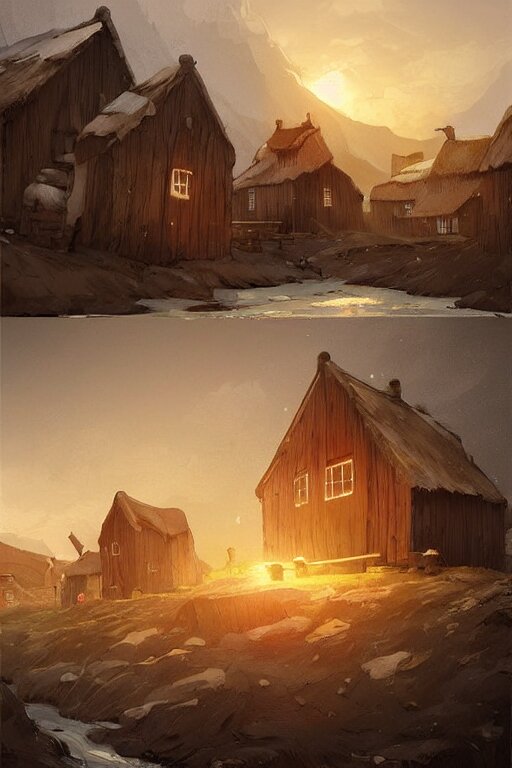 Wooden houses in an viking village on the icelandic coast, official fanart behance hd artstation by jesper ejsing, by rhads and makoto shinkai and lois van baarle and ilya kuvshinov and rossdraws