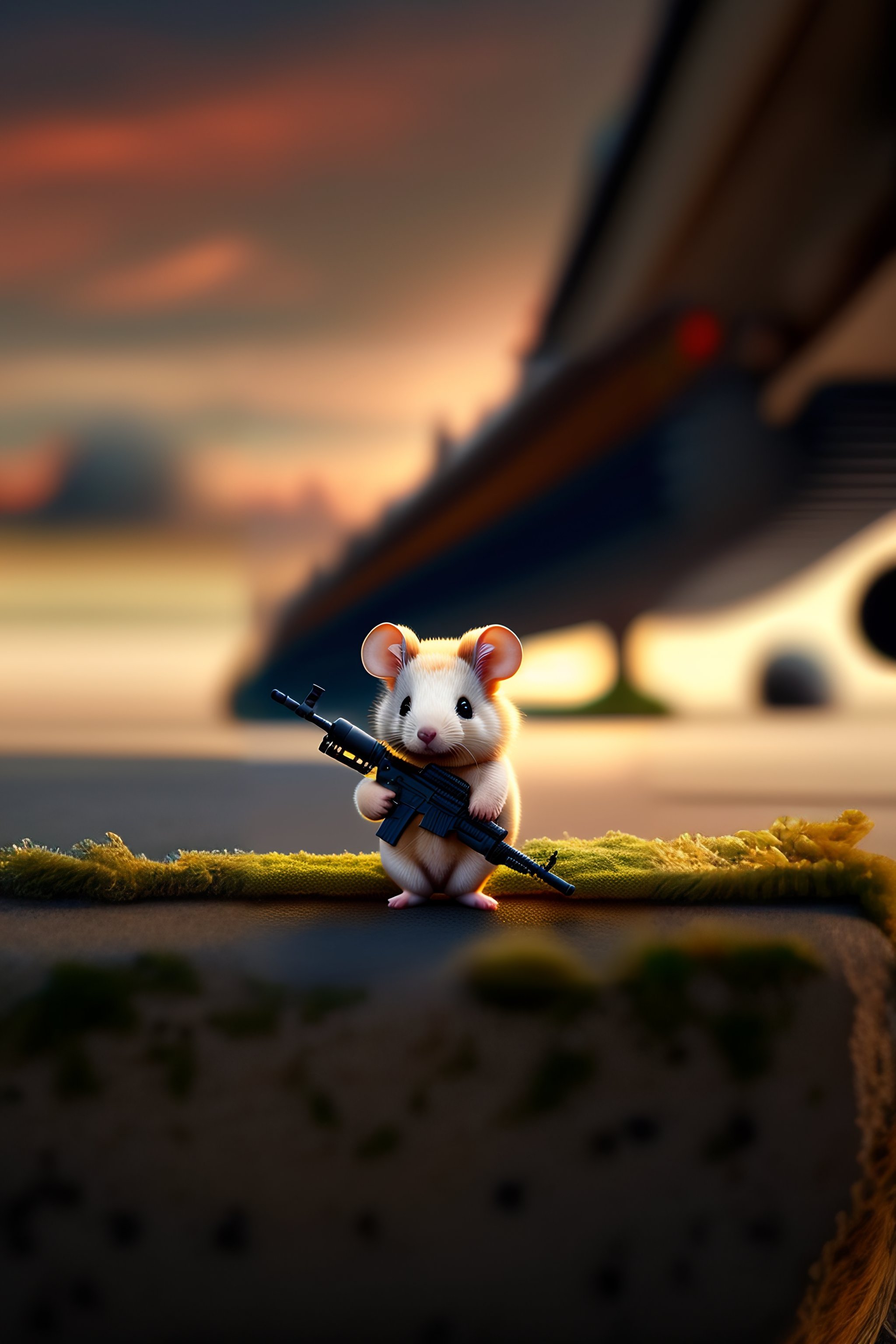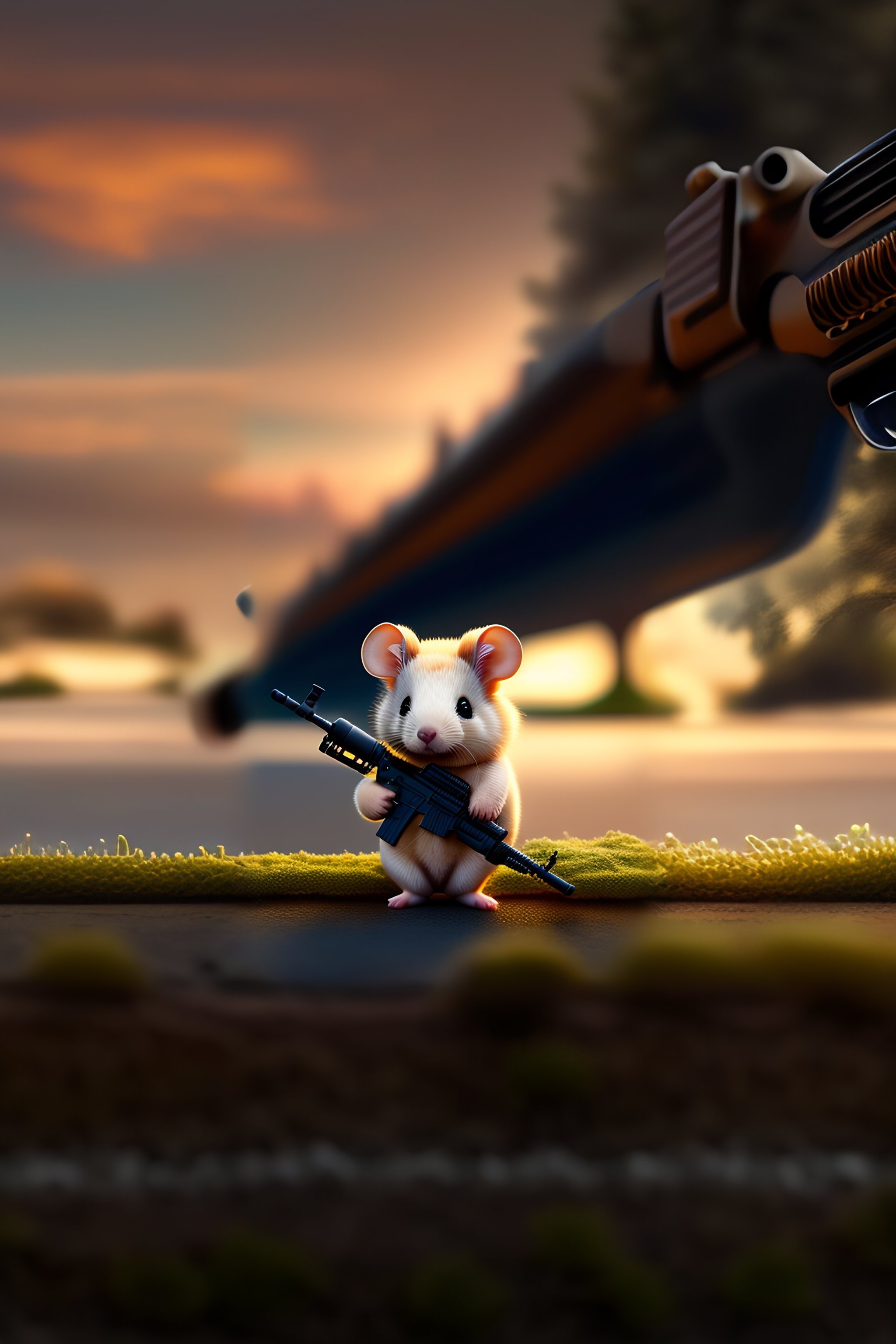 A cute fluffy tiny mouse holding an ar-15 assault rifle