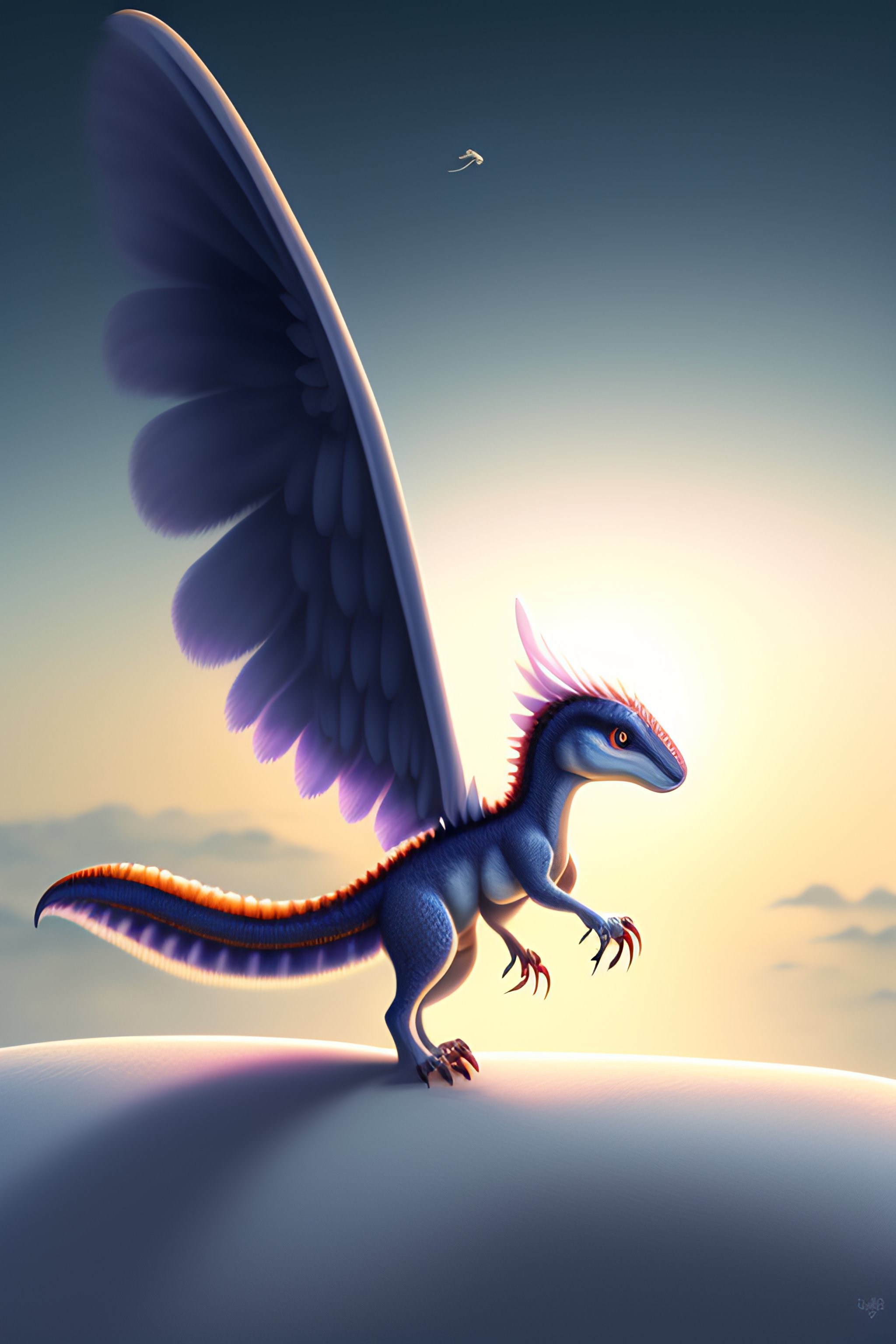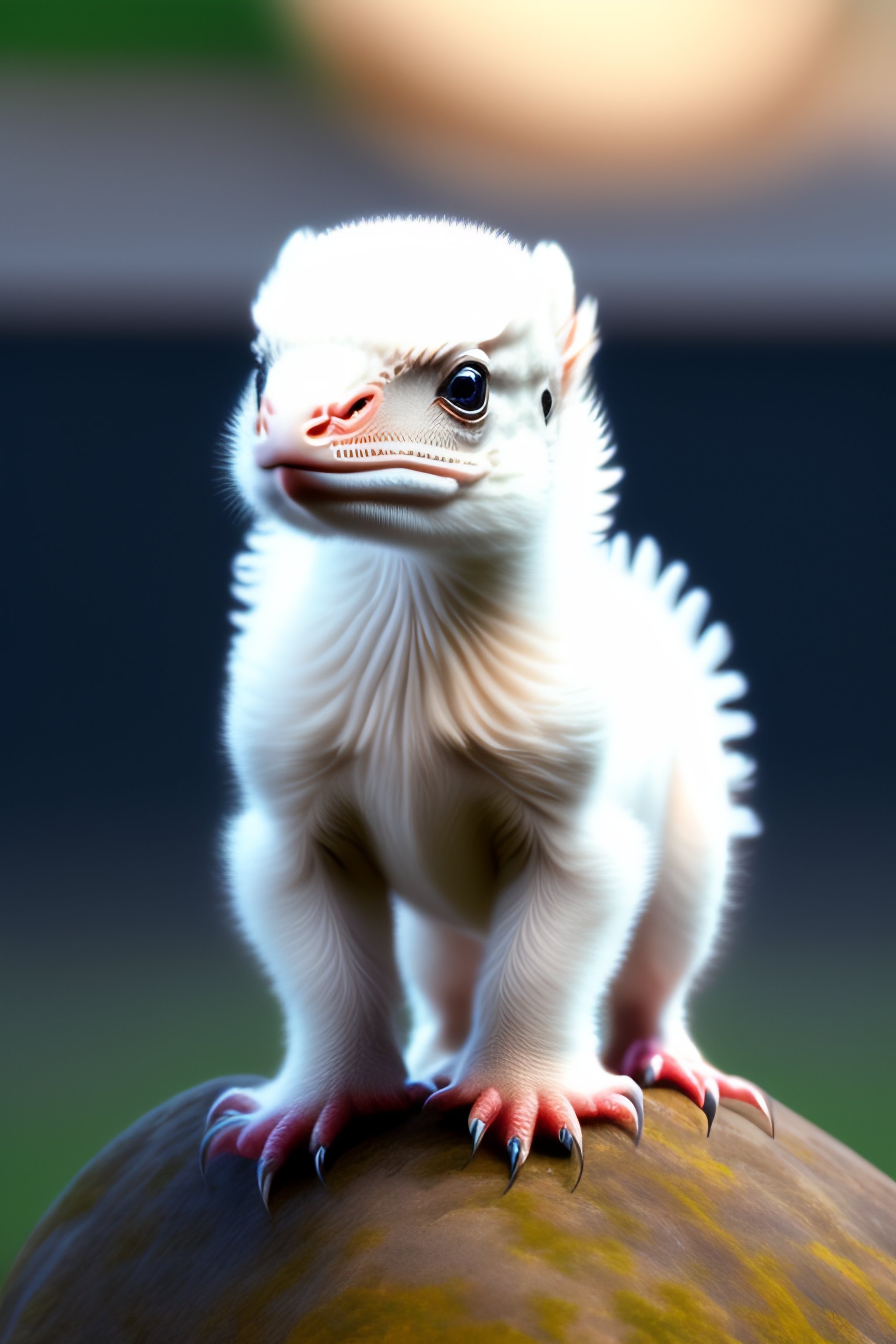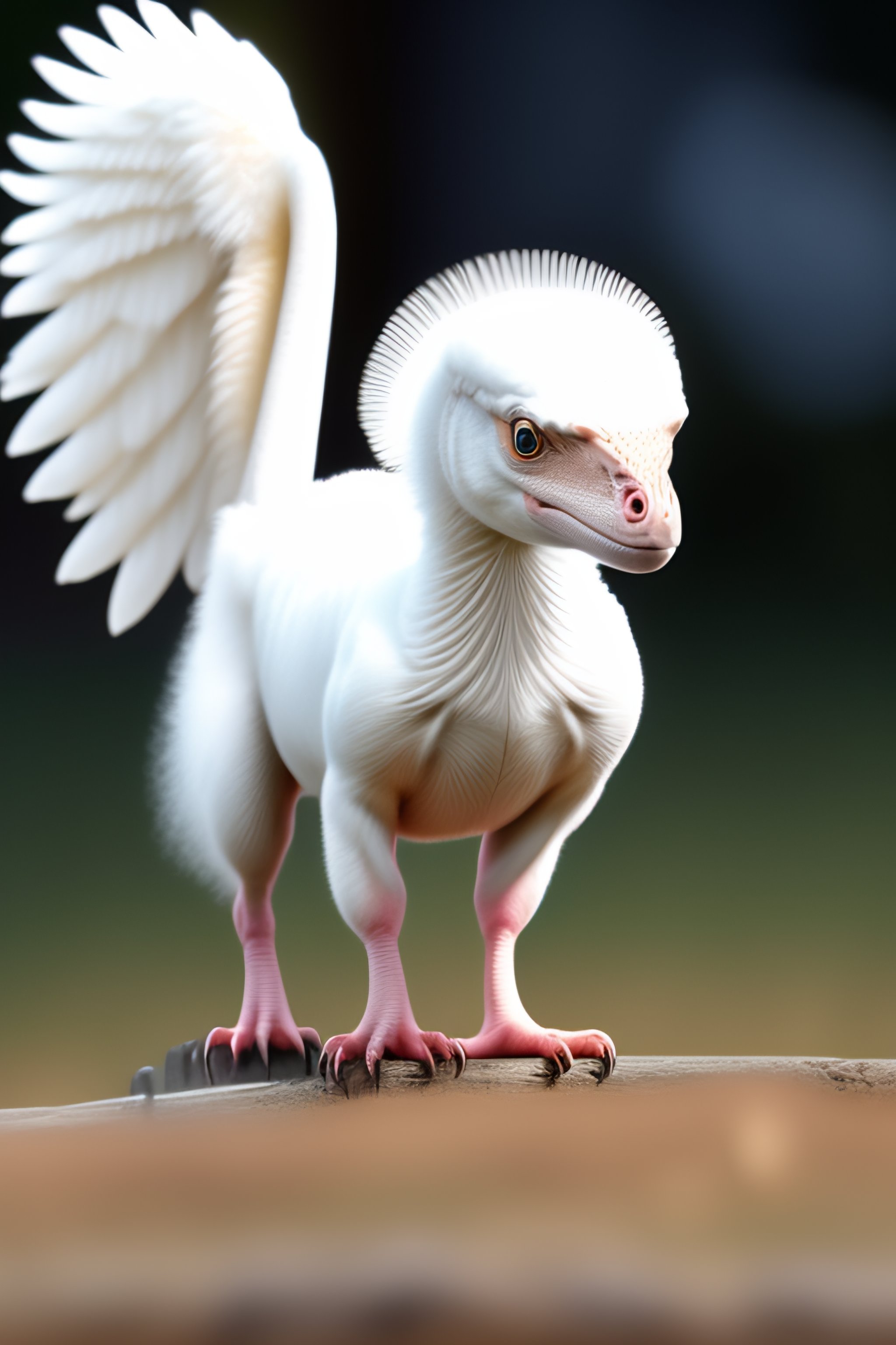 White baby velociraptor with wings and white fur