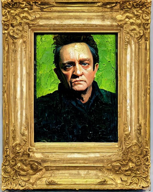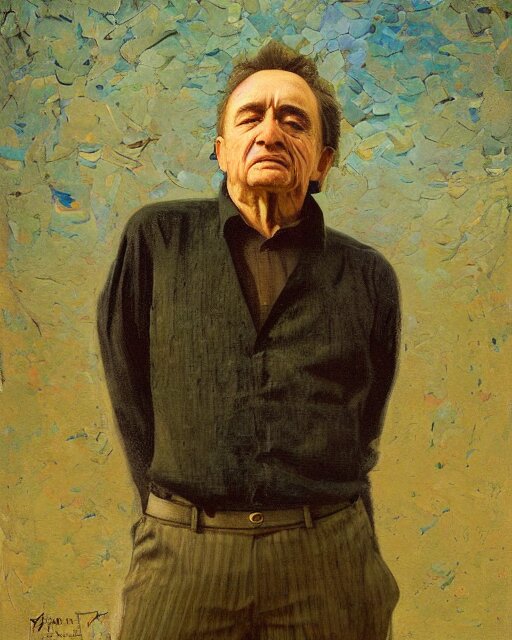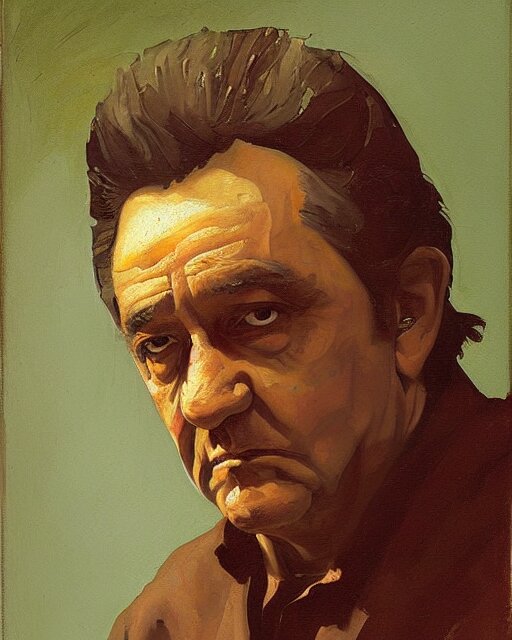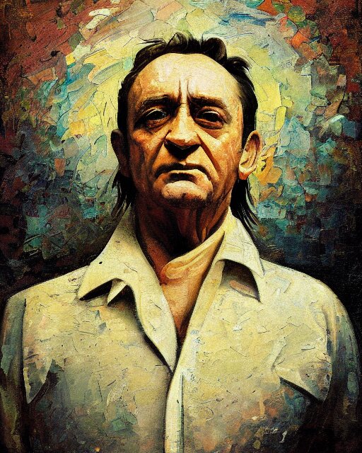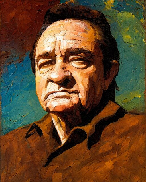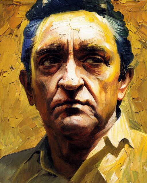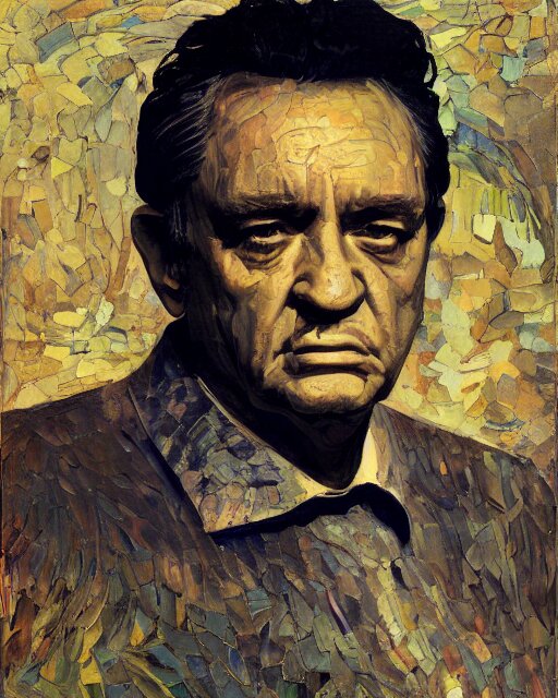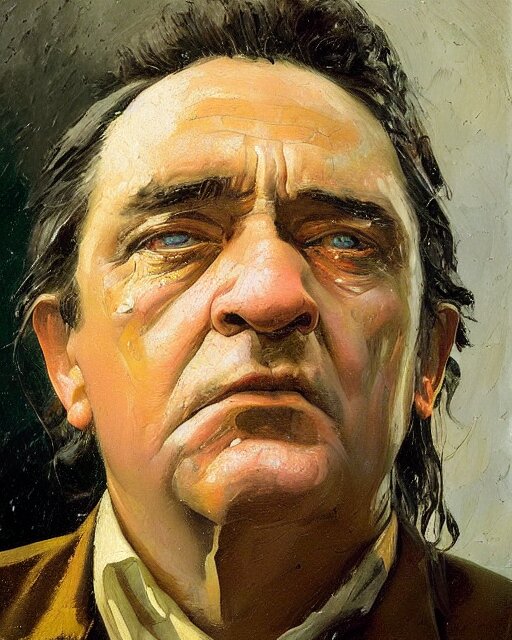 Painterly portrait, johnny cash, impasto, fantasy, chuck close:7, carl spitzweg:7, cinematic light, full face, symmetrical face