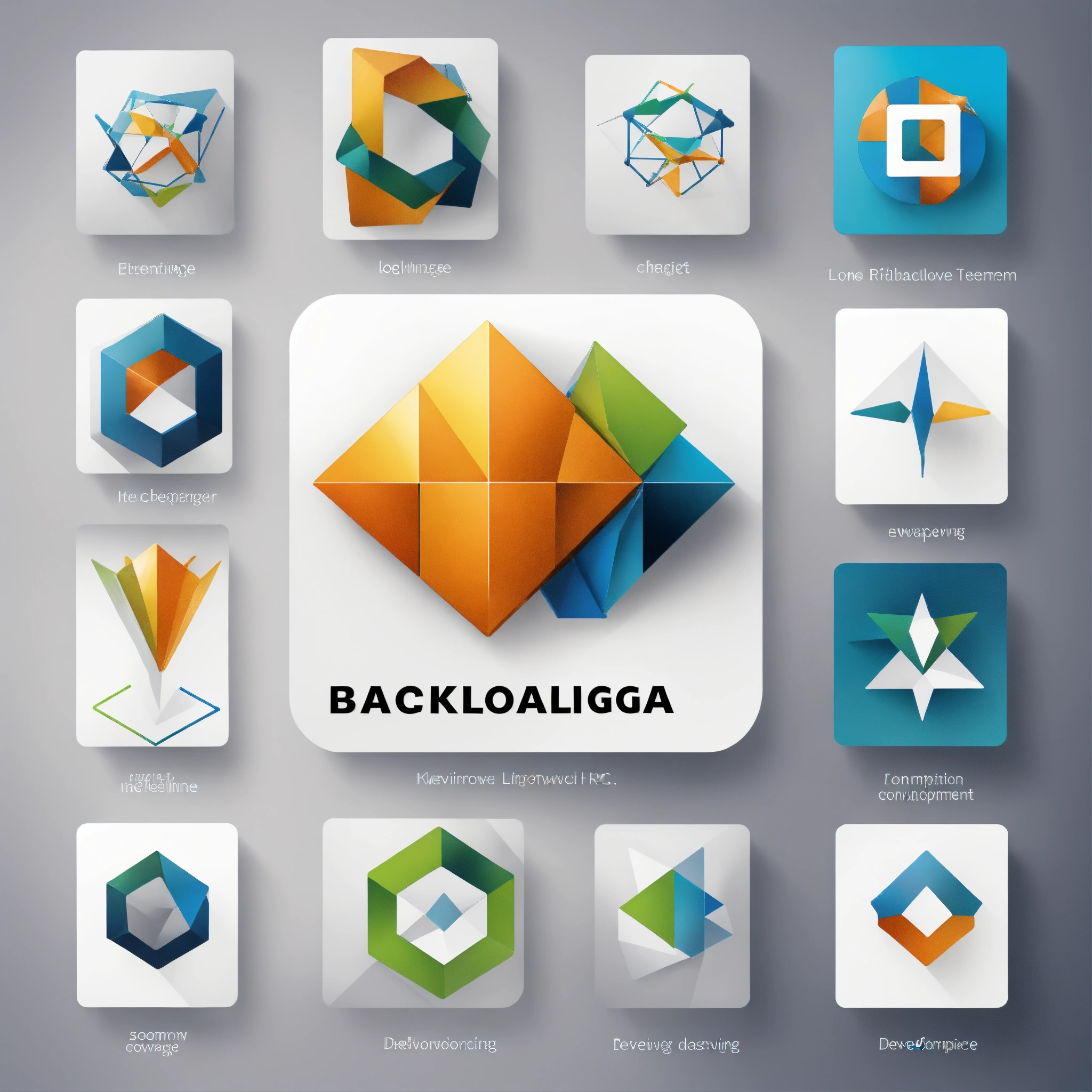 High resolution icon of a extremely simple 2d, elegant, clean and modern geometric logo for consulting company "backlogical" in the area of software development process enhancement conveying terms "logic", "software", "development" - one logo per page, on white background