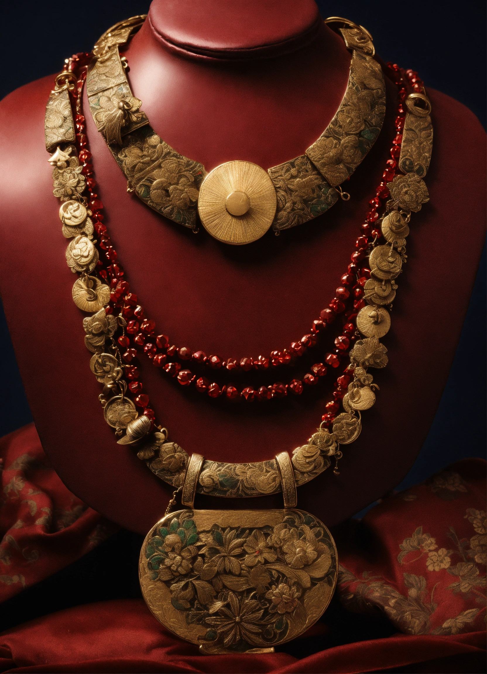Edo period peaceful necklace, ford hallam style, shibuichi, shakudō, sentoku, highly detailed, artstation, concept art, sharp focus