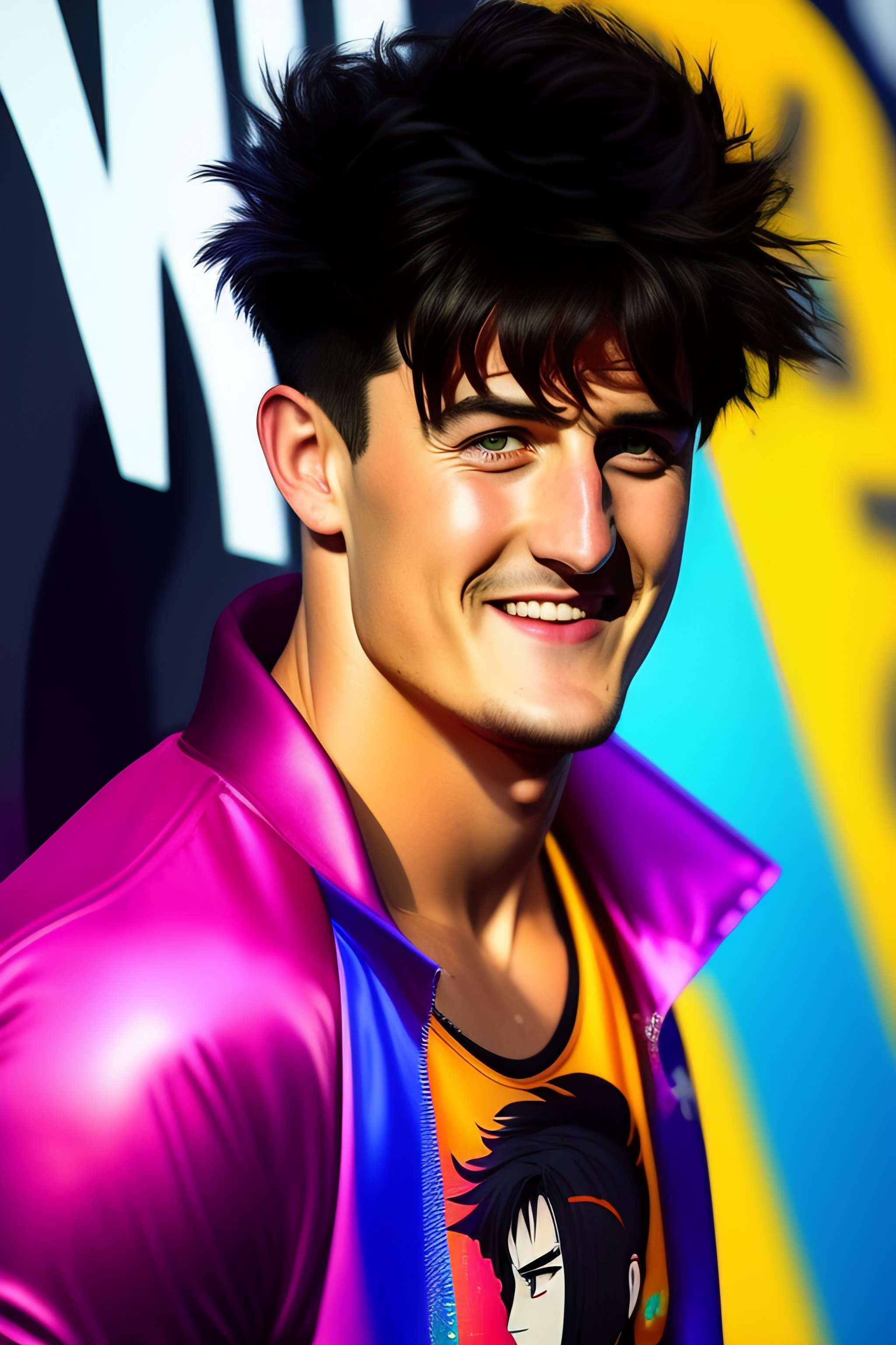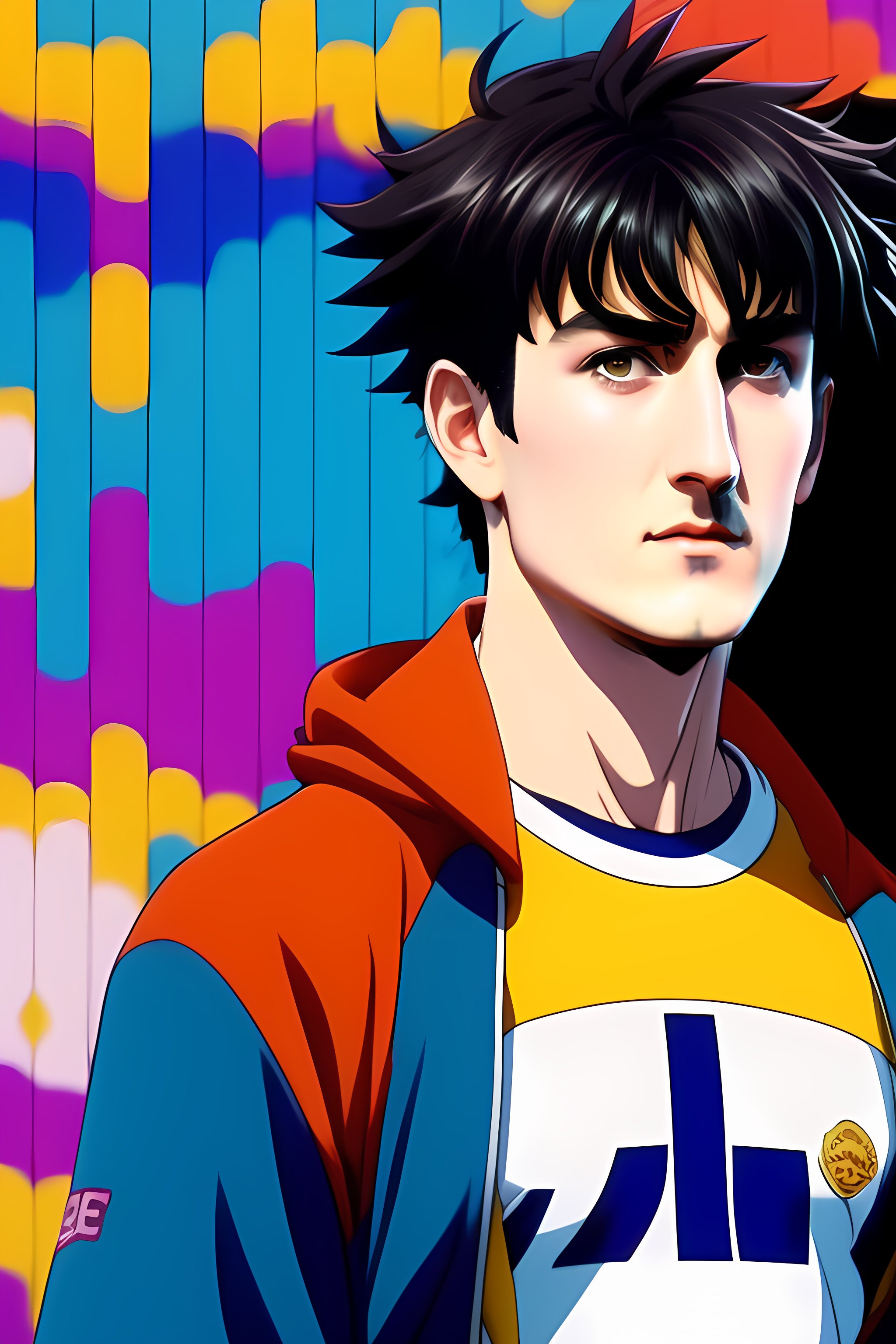 90’s anime. vibrant maximalism. a man stealing from a convenience store.