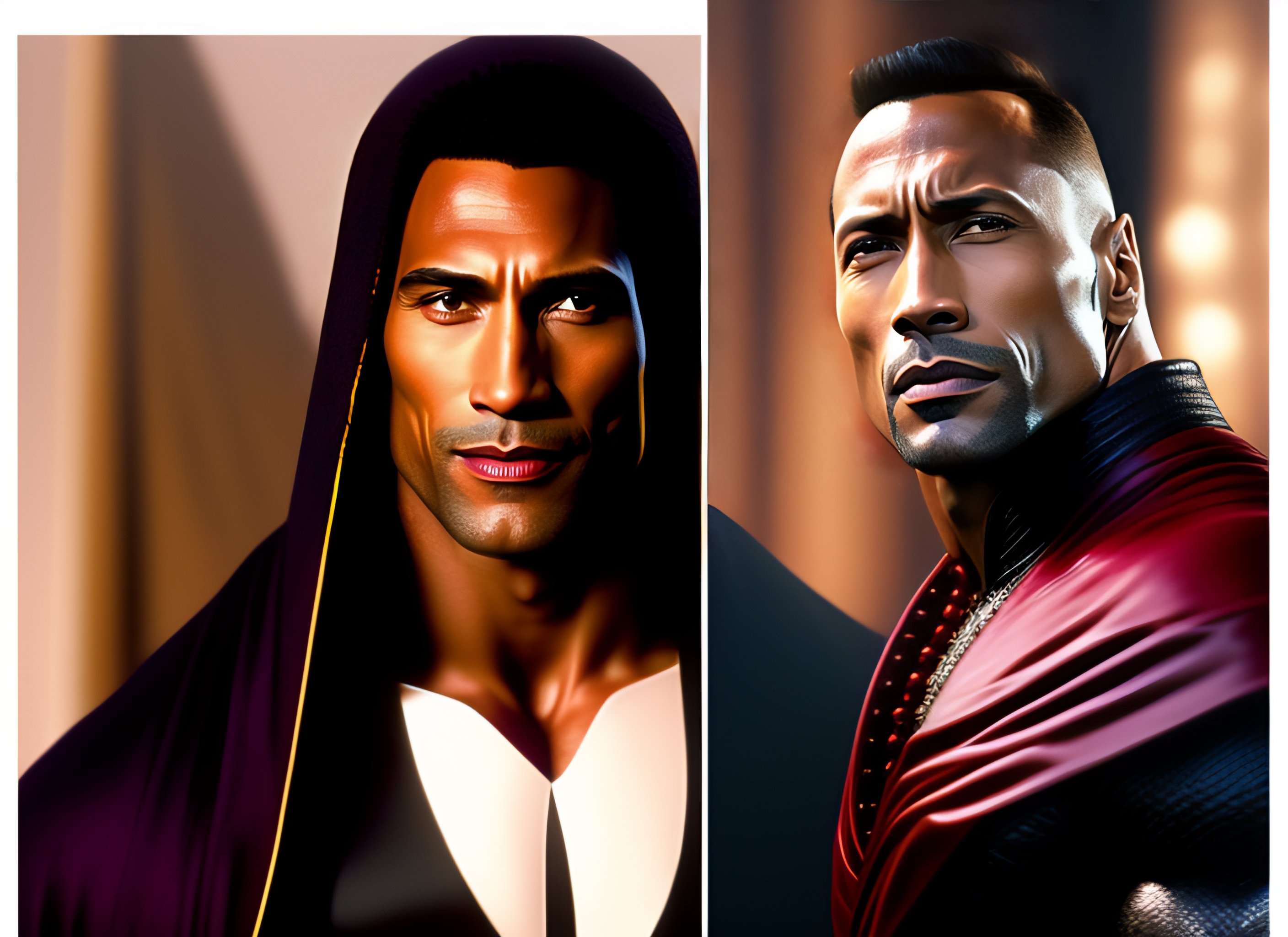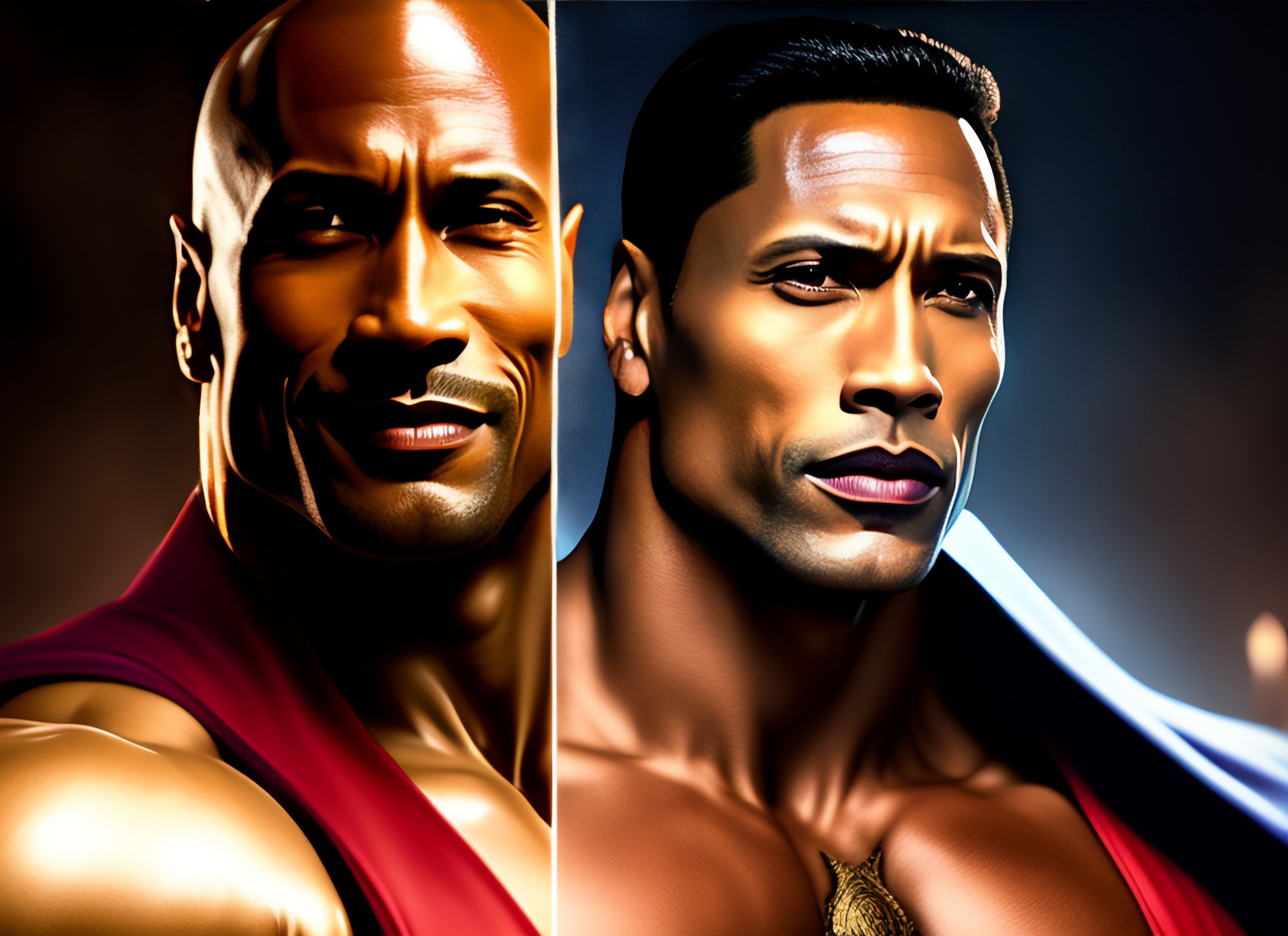 Skinny dwayne johnson as a vampire with a cloak and vampire teeth