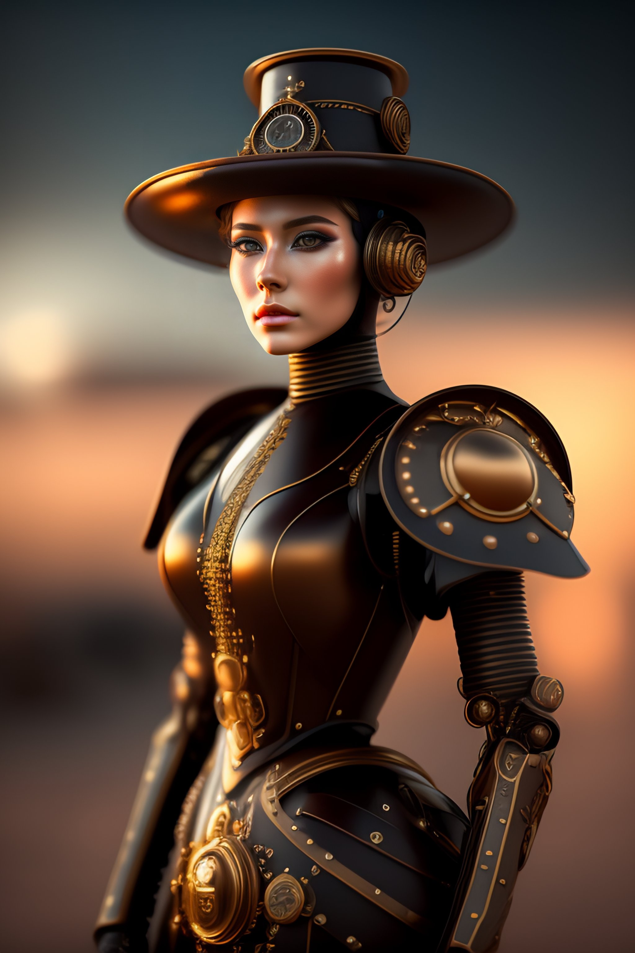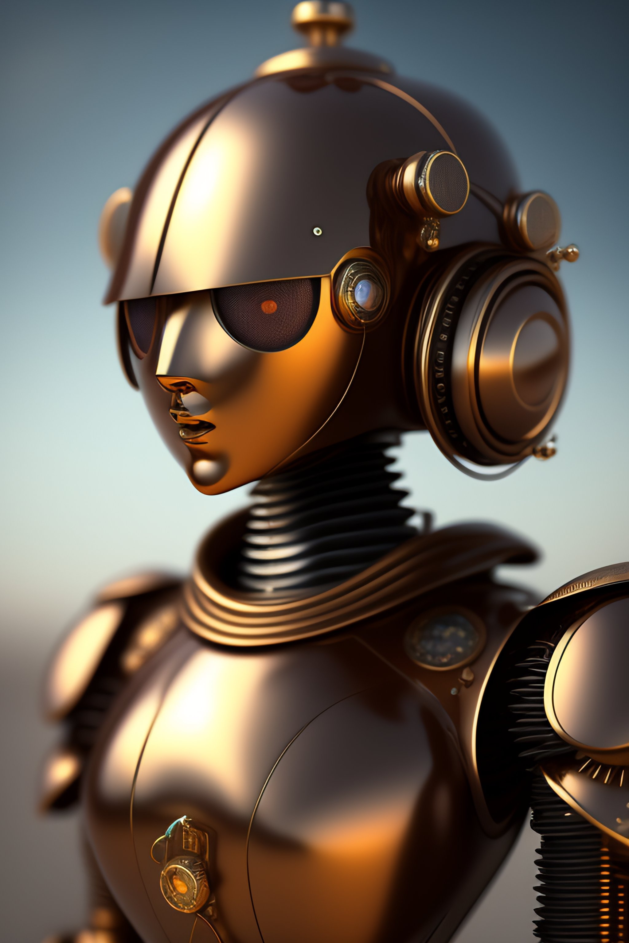 Hyperrealistic steampunk minimal humanoid robot. highly detailed digital art masterpiece, smooth cam de soft light, ground angle hd 8 k, sharp focus