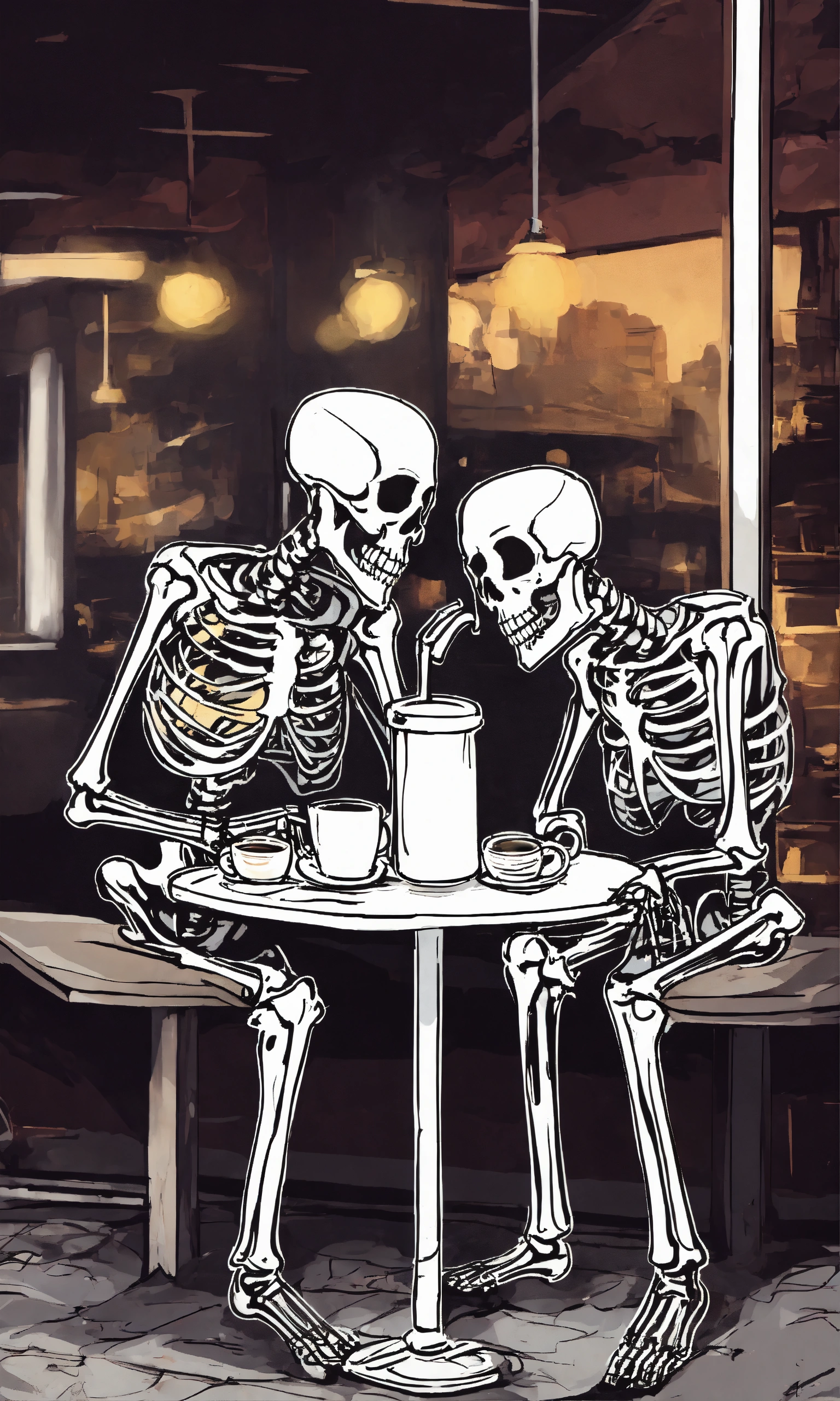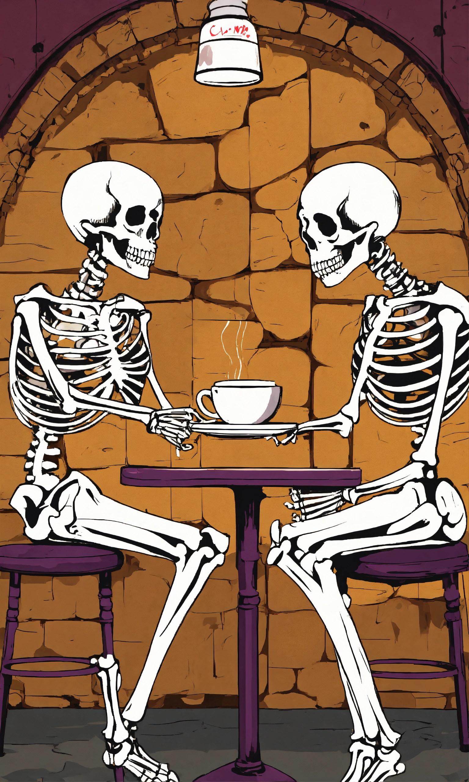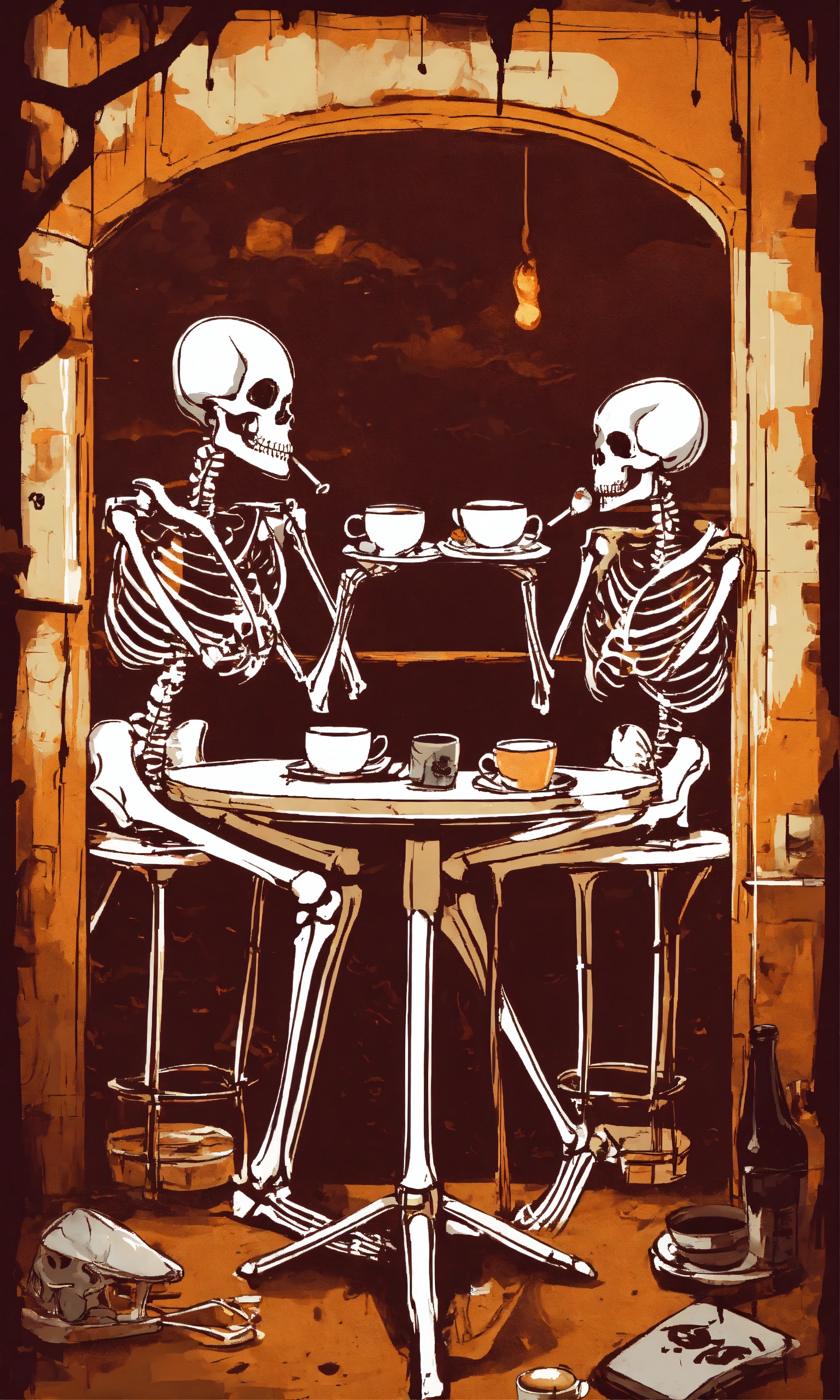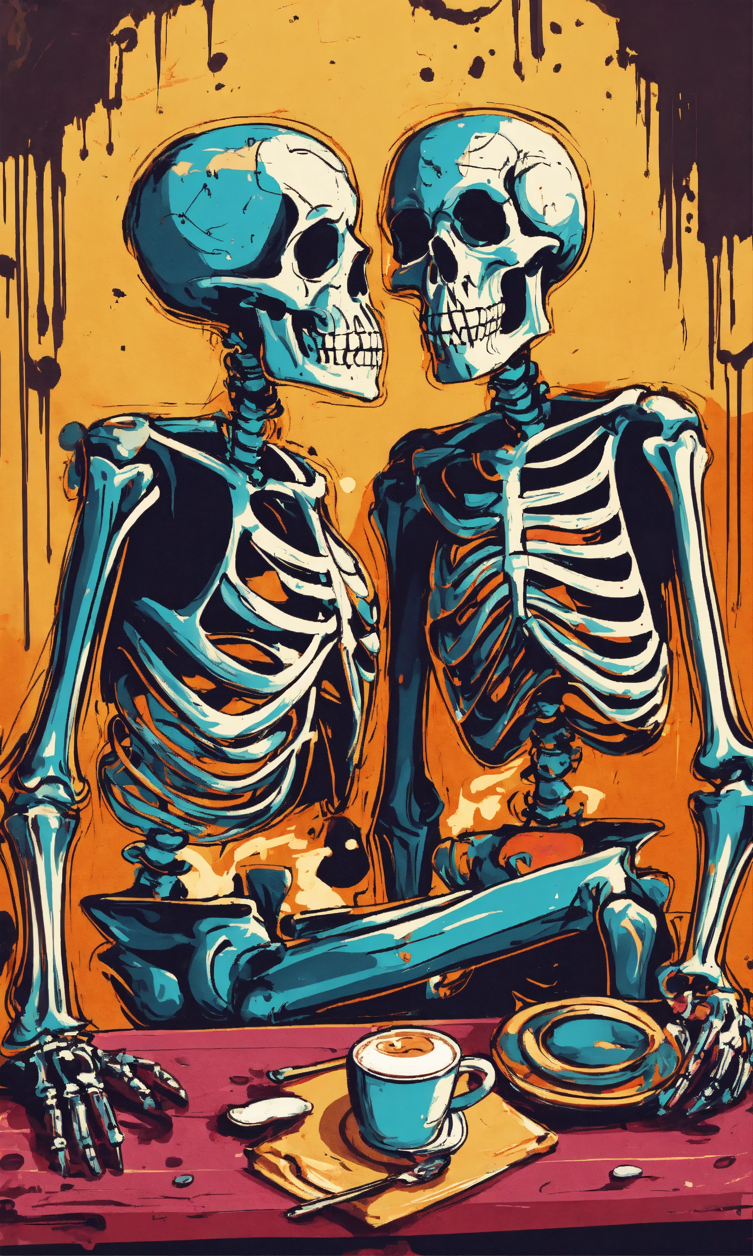Graffiti template of two skeletons drinking coffee