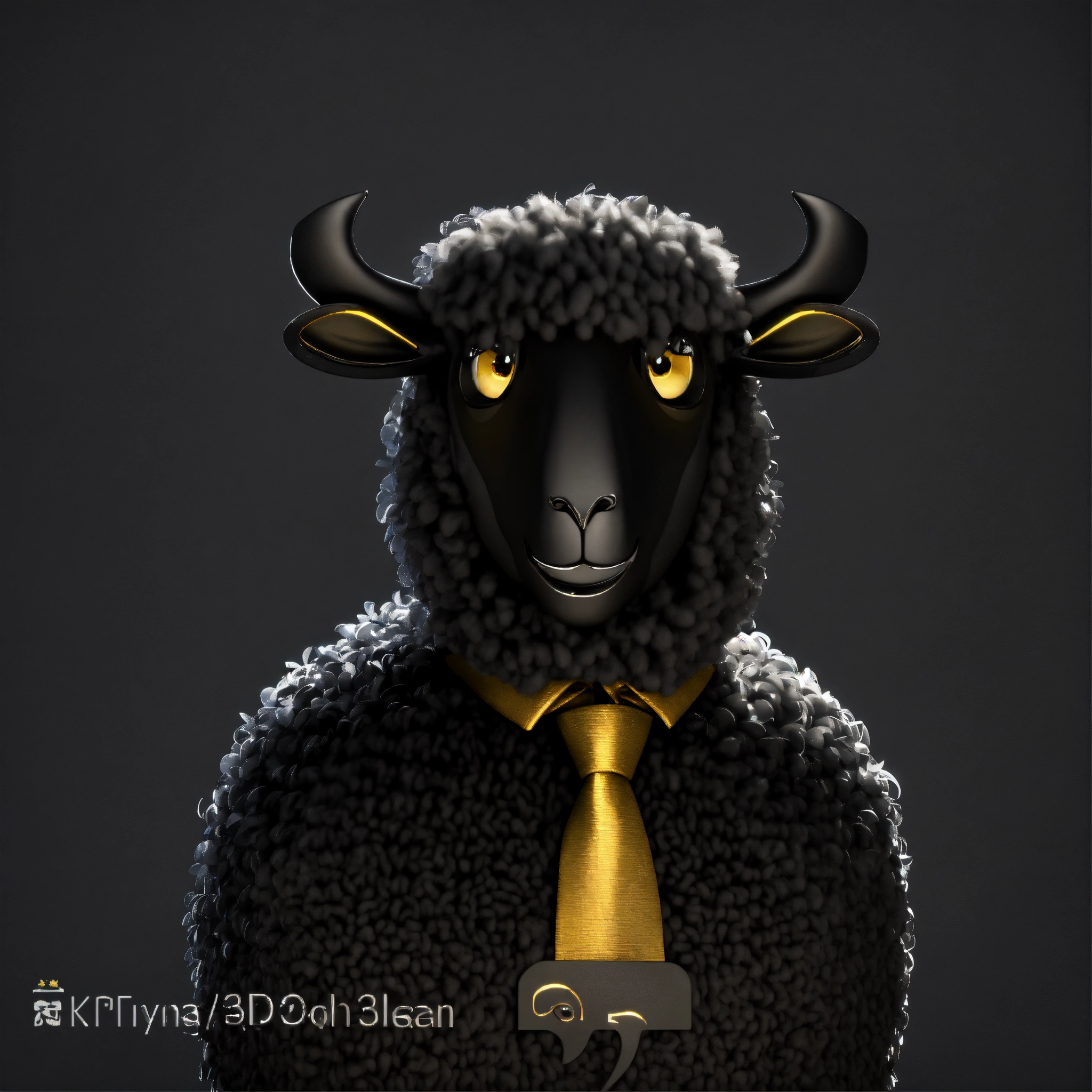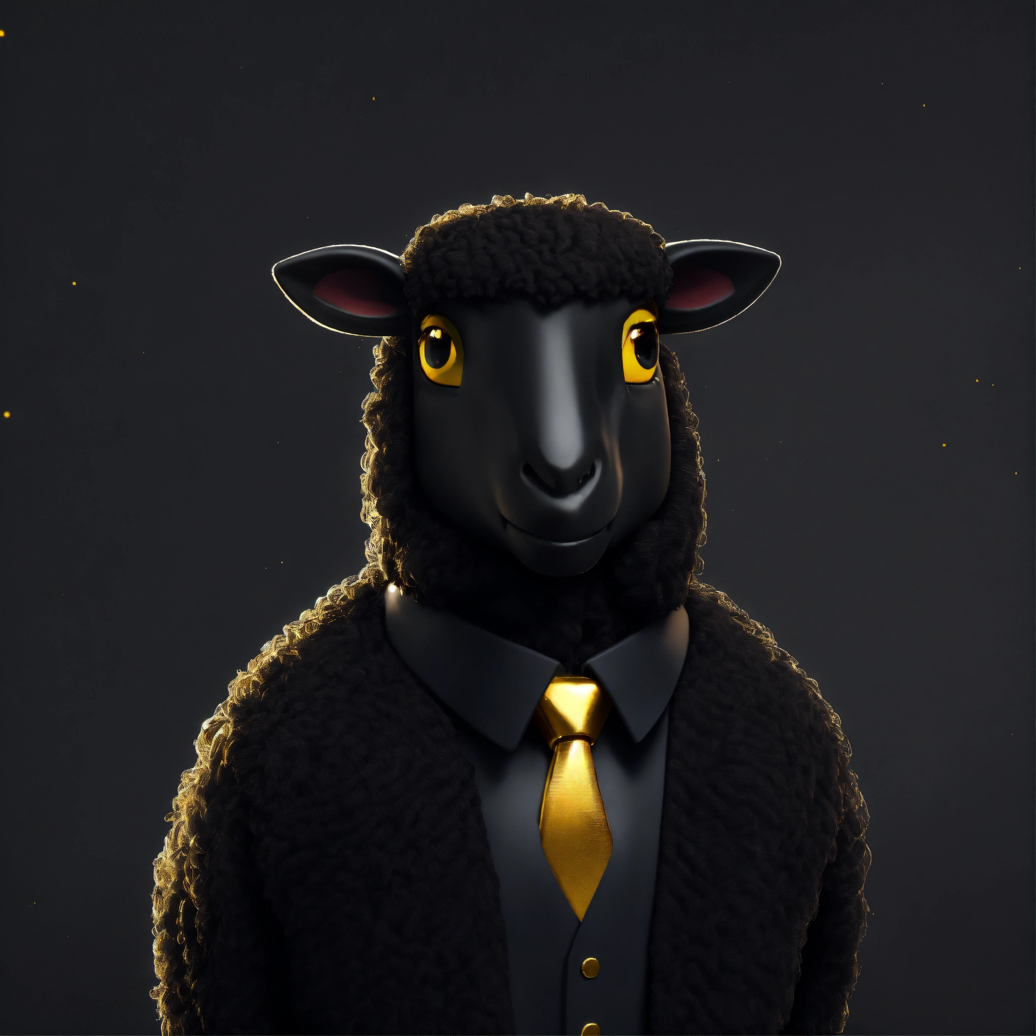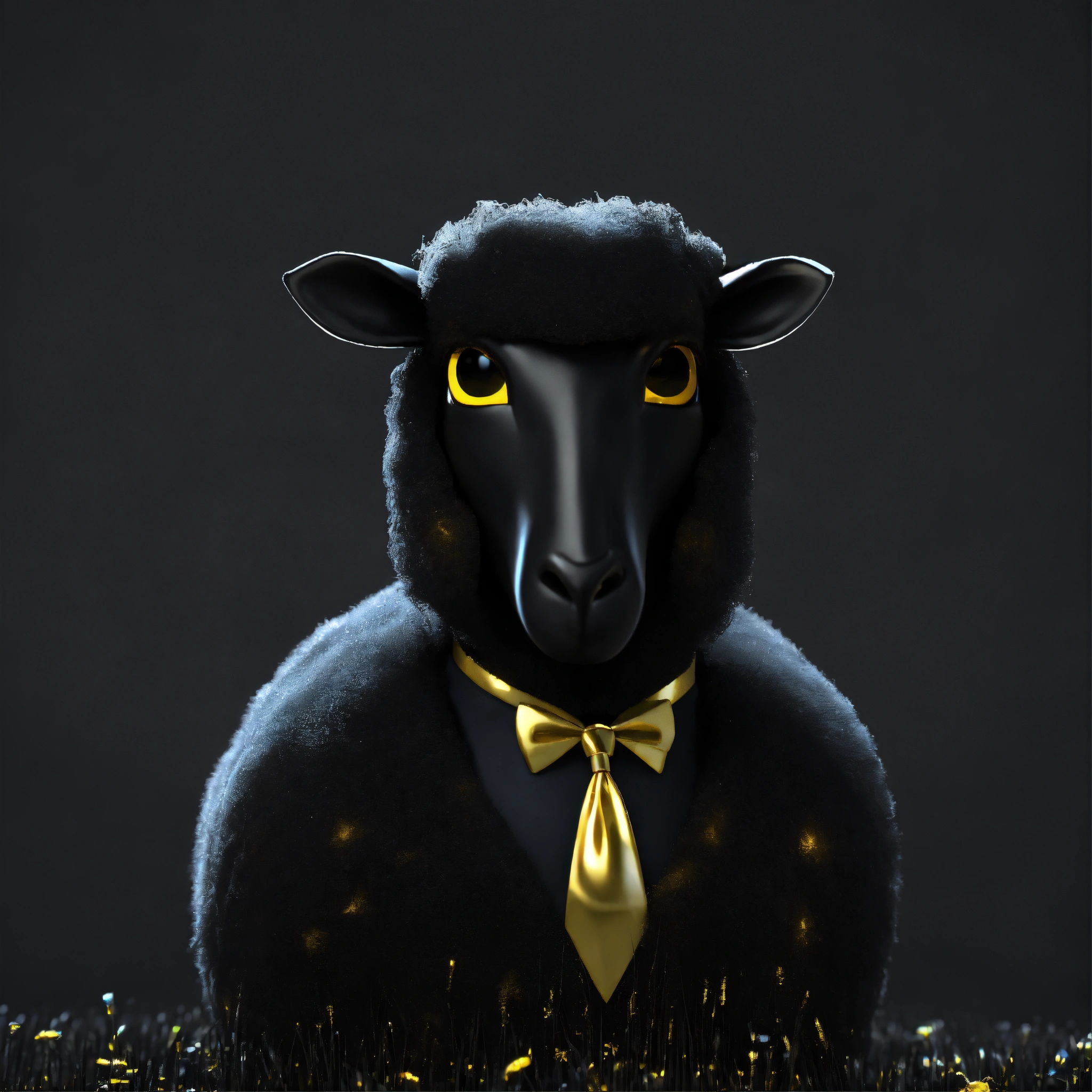 Black sheep with gold tie yellow eyes 3d characters cartoon meme