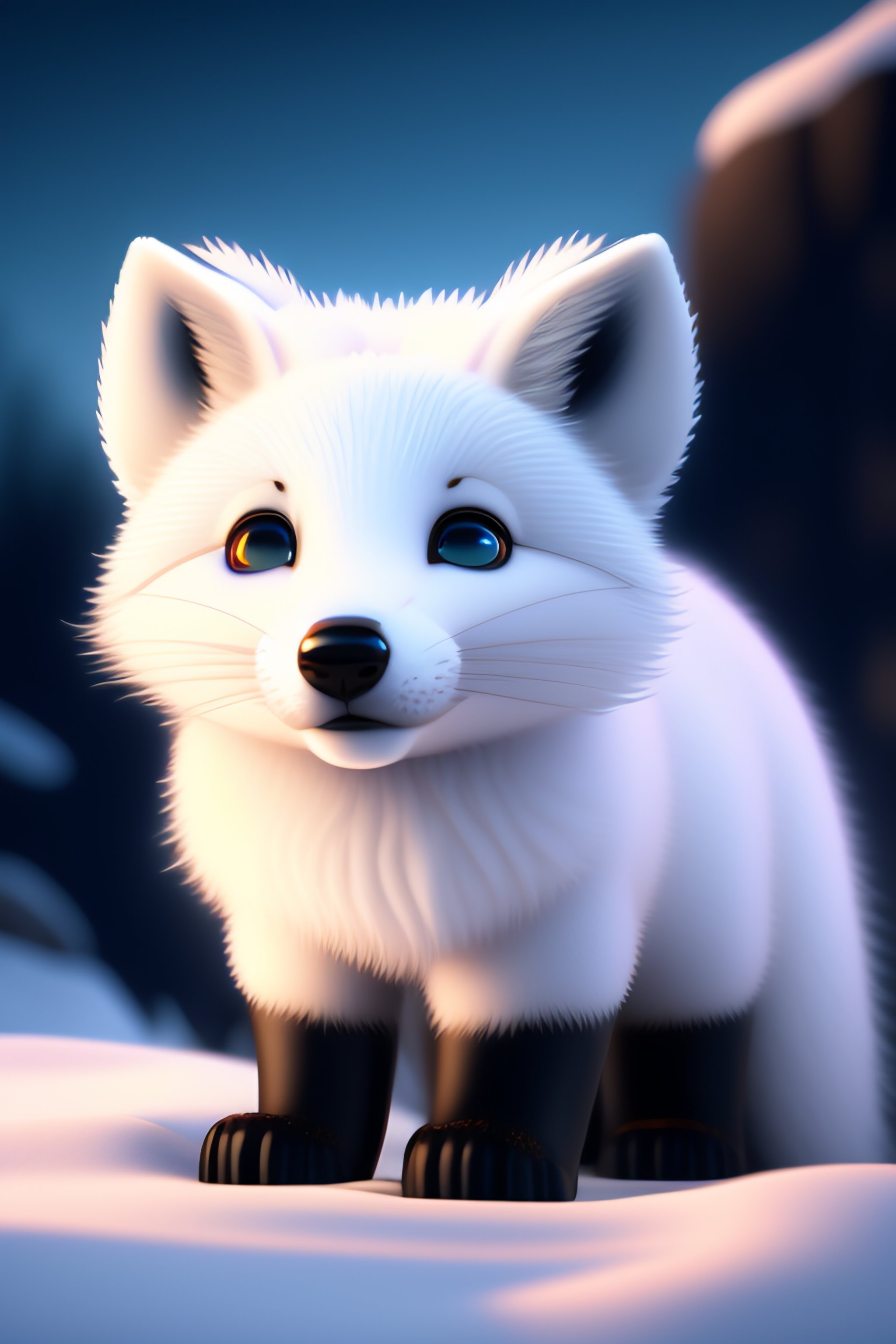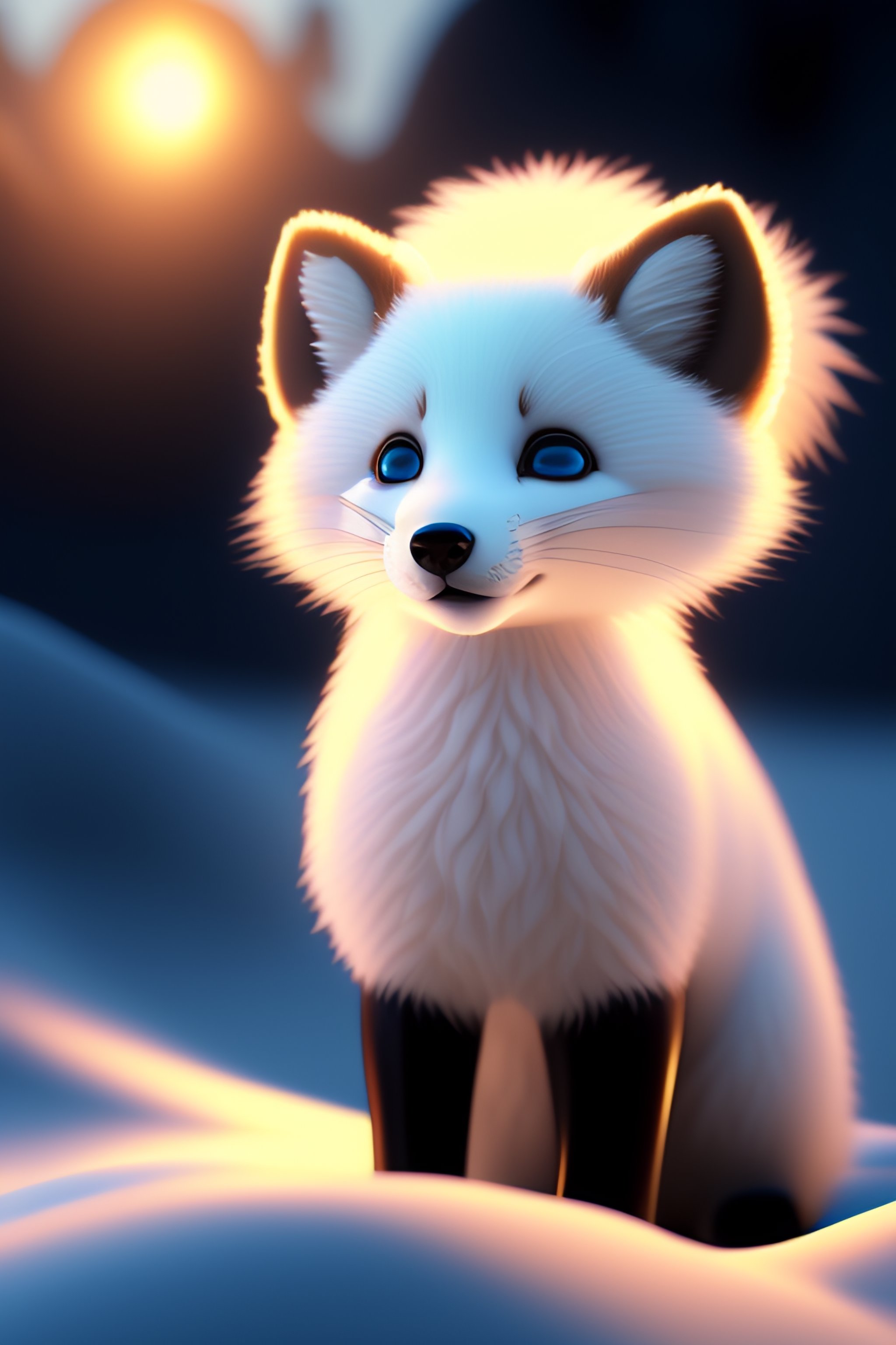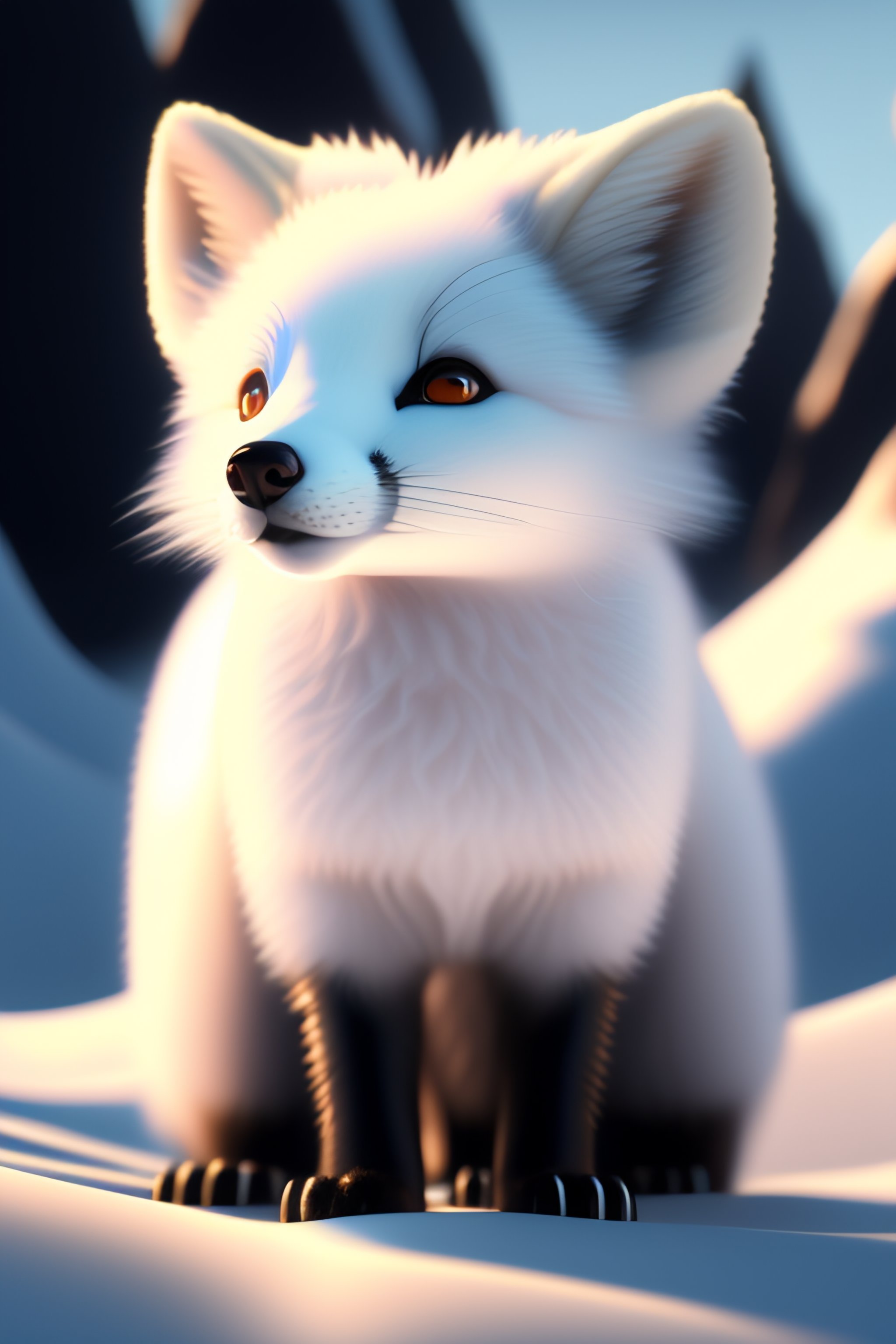 Stunning disney pixar cartoon stunning ultra fuzzy cartoon white arctic fox in bright sunlight wearing an ultra puffy marshmallow fuzzy parka jacket in the snow snowing funny round cute funny full body ultra stunning arctic fox full shot confused eyes realistic eyes beautiful perfect symmetrical face extremely detailed ultra hd hd r8k cinematic dramatic lighting stanley artgerm lau style beautifully colored coated studio portrait lighting illuminated face 85mm volumetric lighting ray tracing reflections unreal render