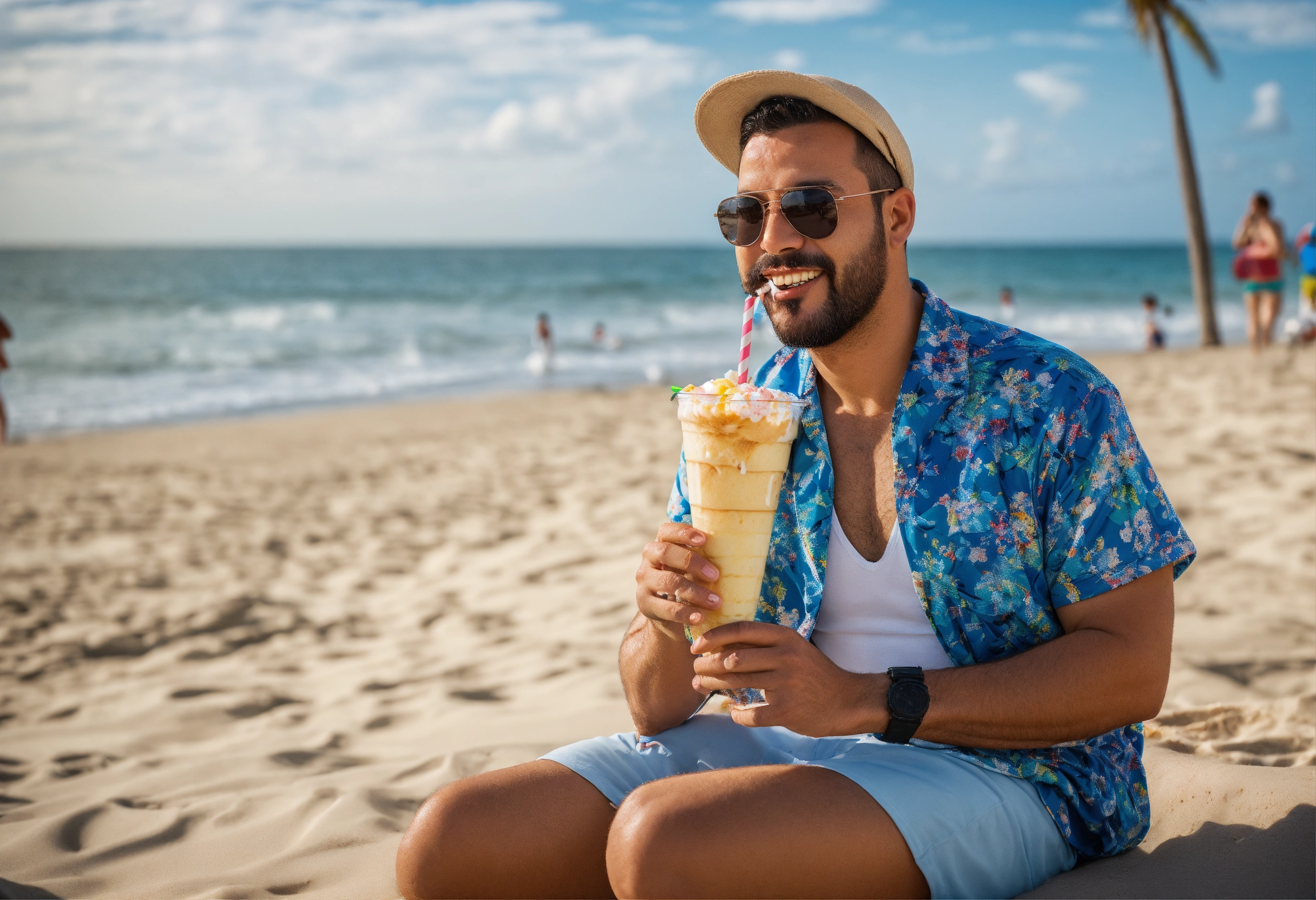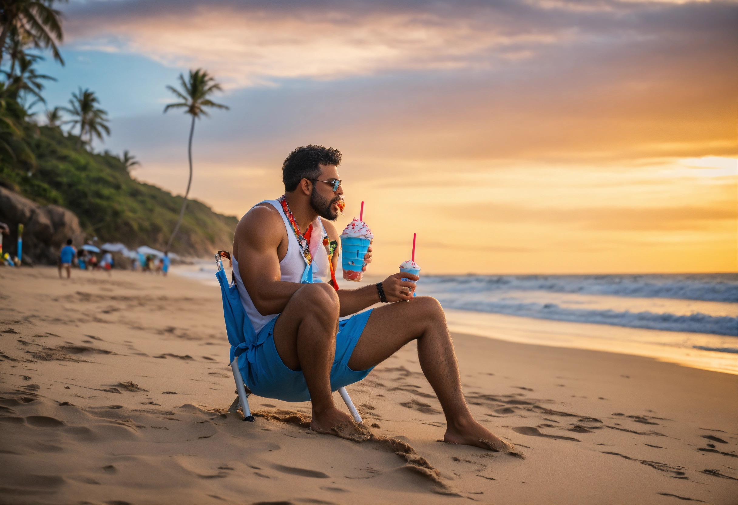 sentado na praia