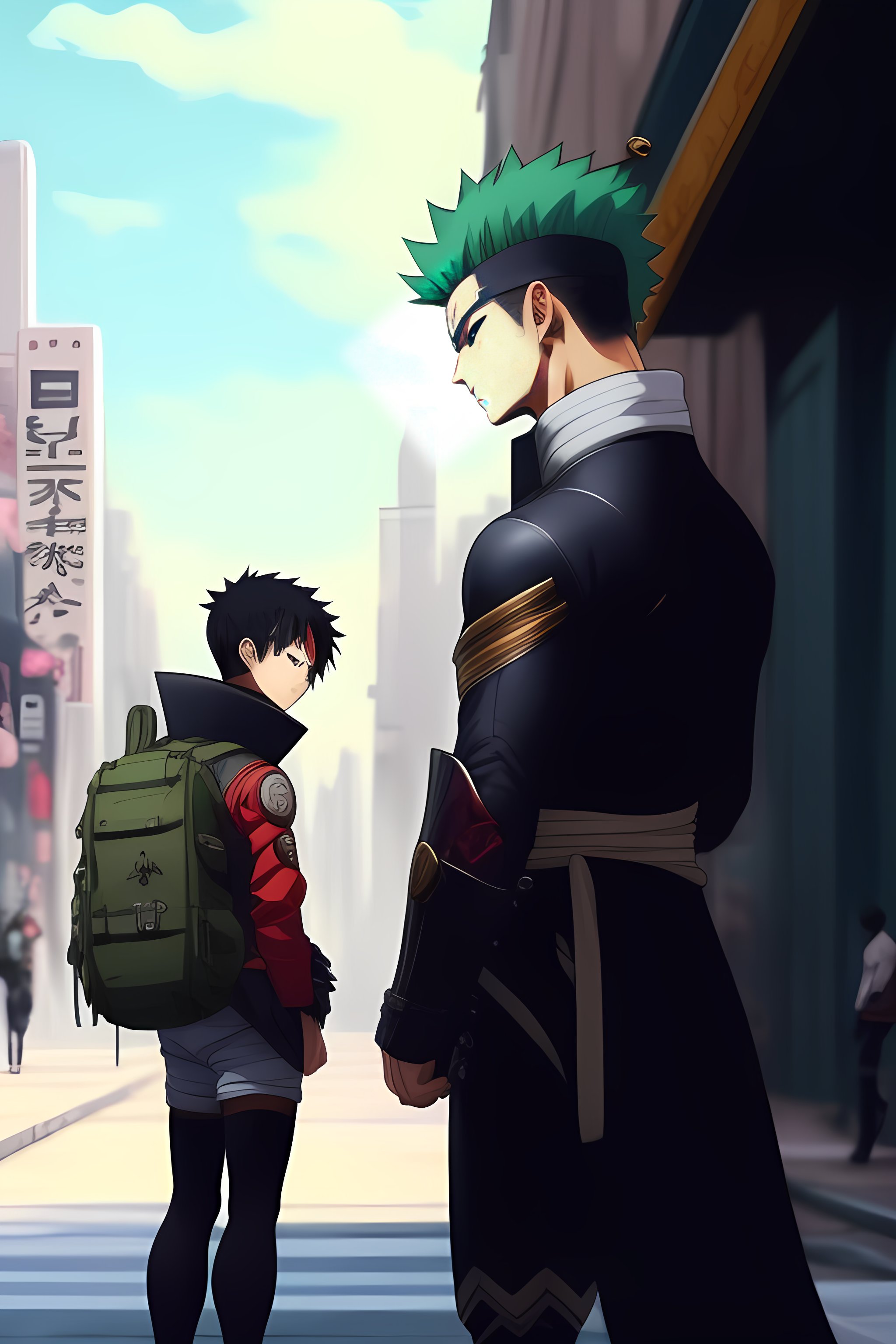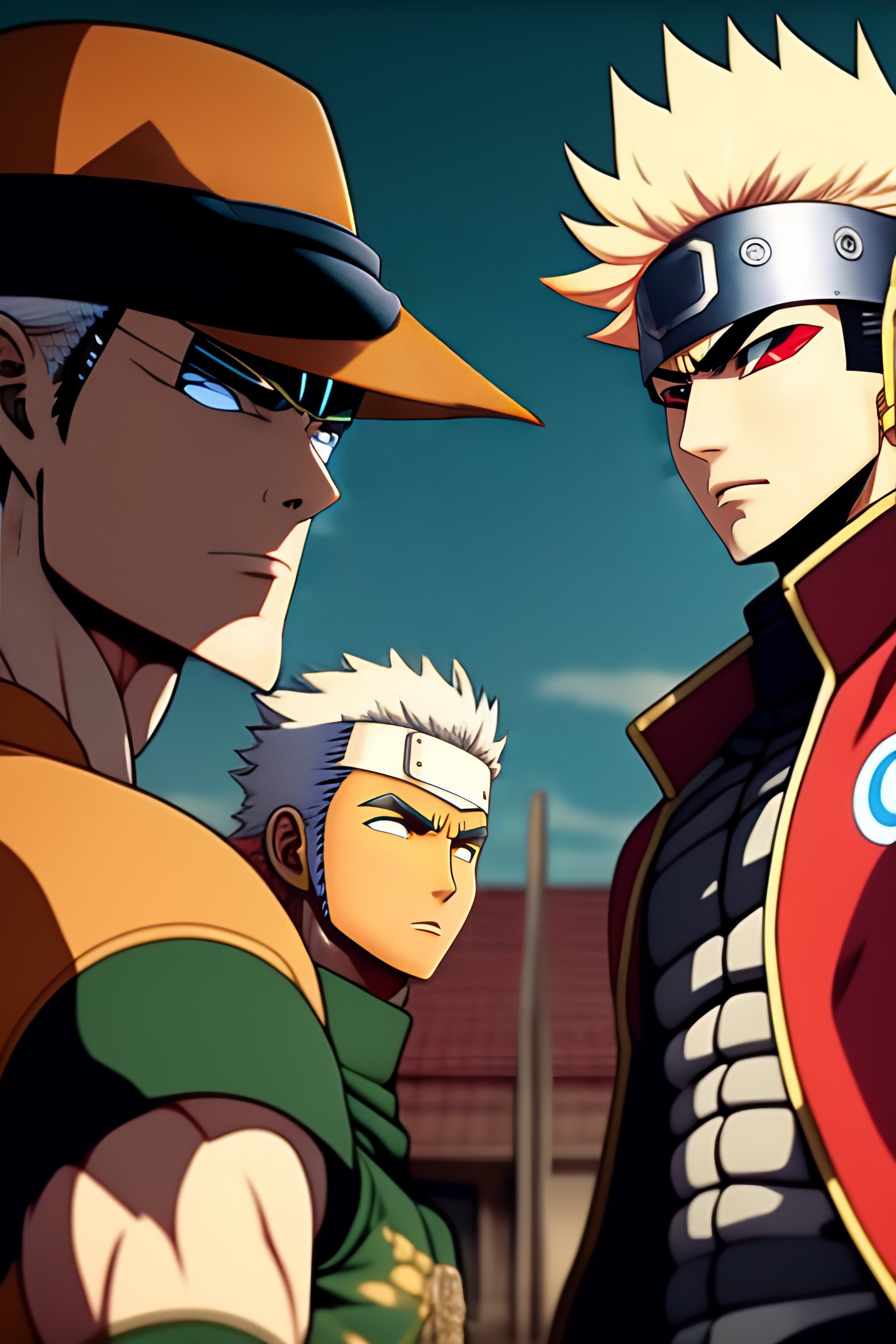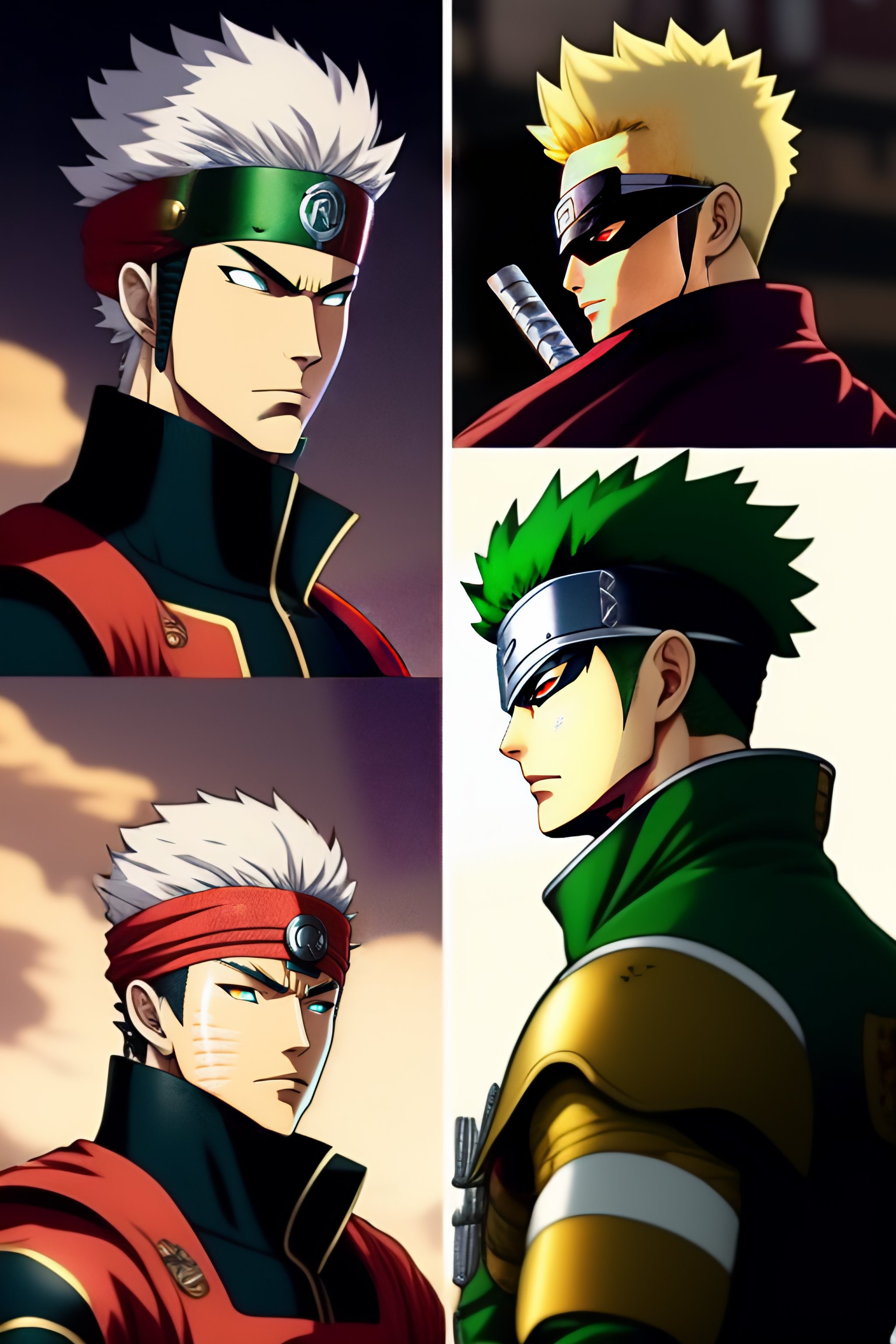 Kakashi with roronoa zoro with thor with naruto with ironman running on the street