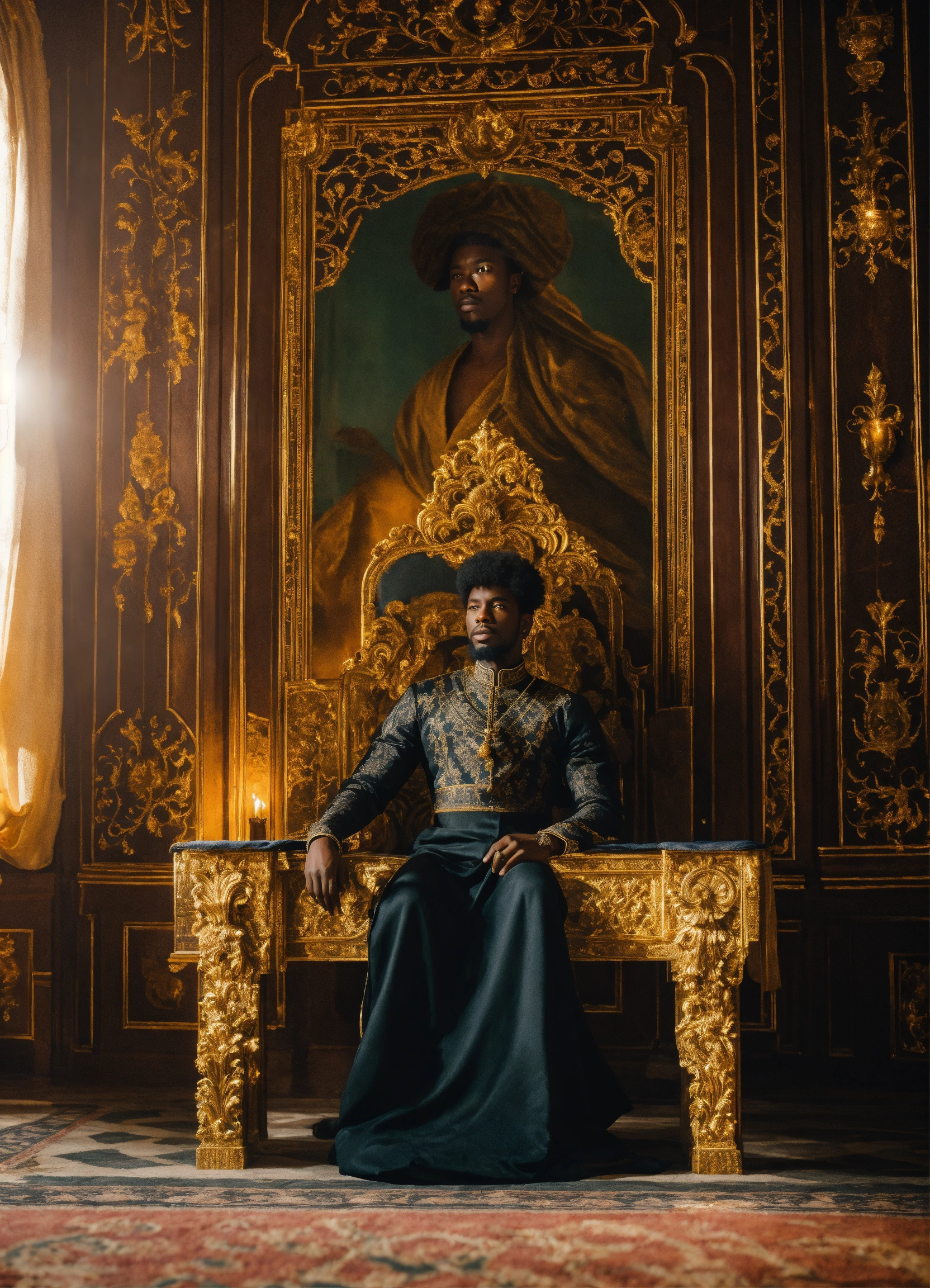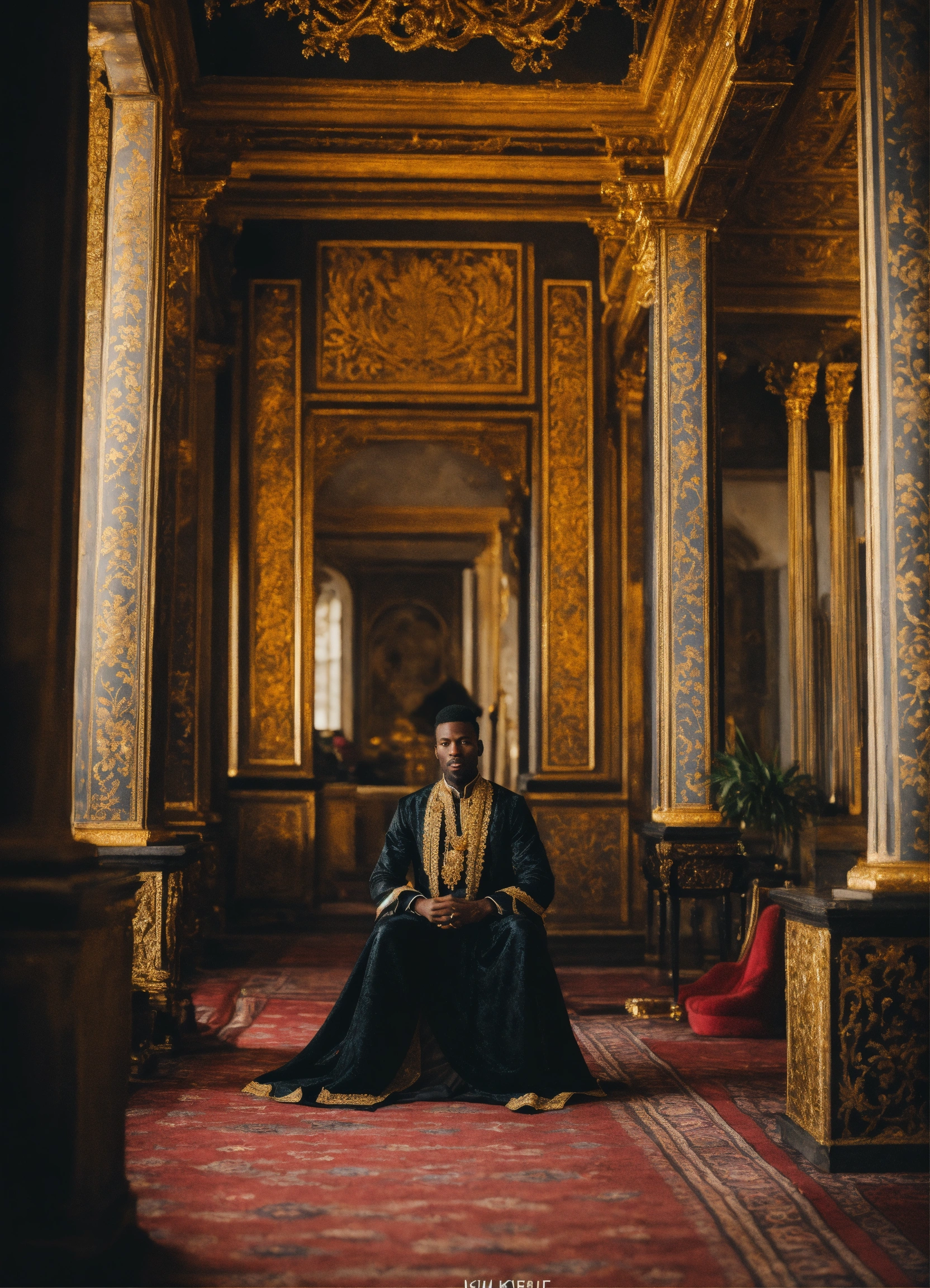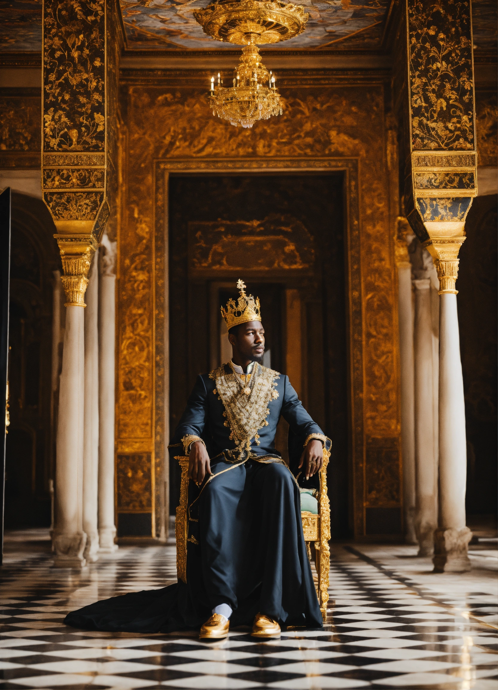 Black king in a beautiful palace