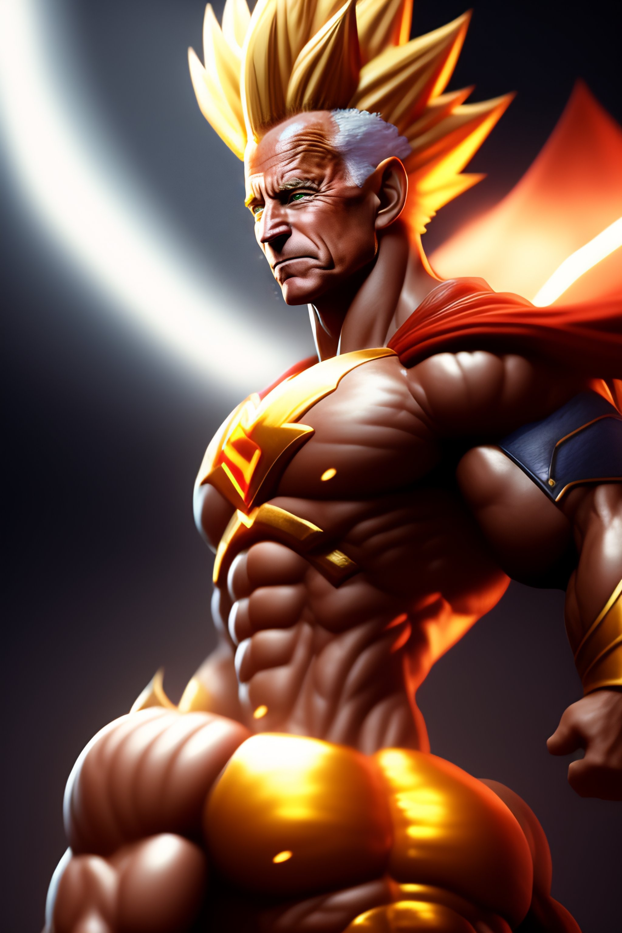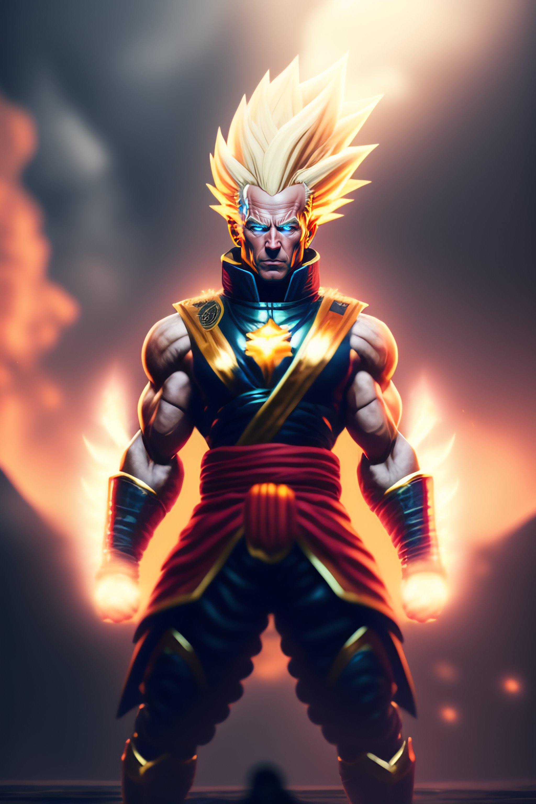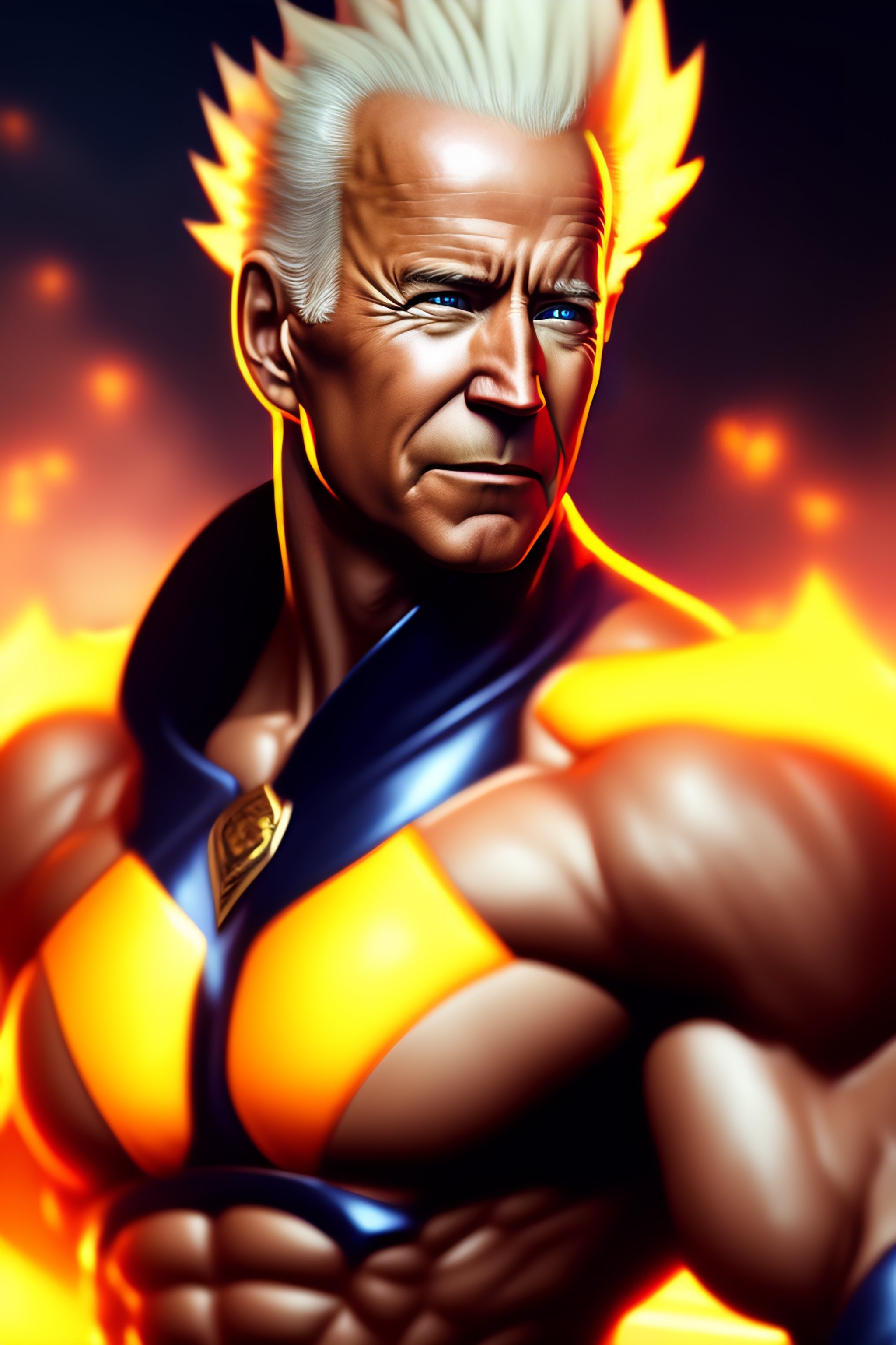 Joe biden goes super saiyan, full body shot, dynamic lighting, photorealistic fantasy concept art, trending on art station, stunning visuals, terrifying, creative, cinematic