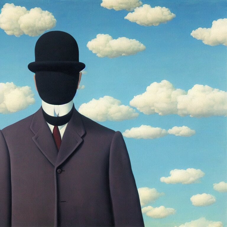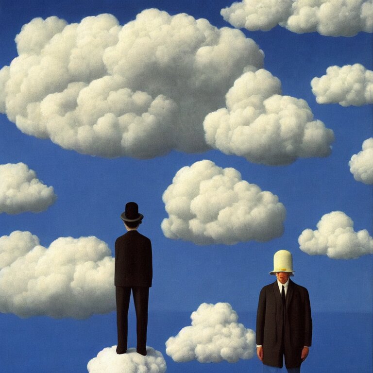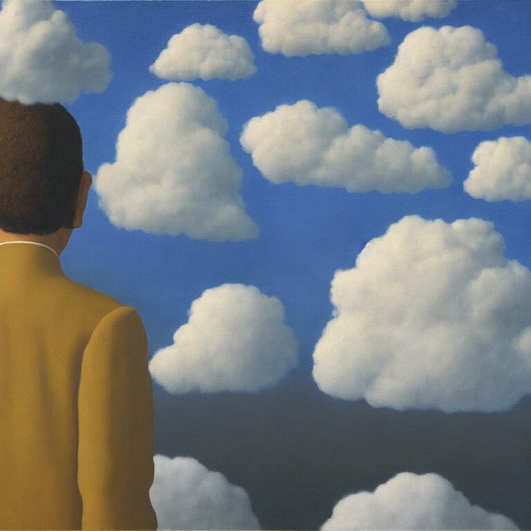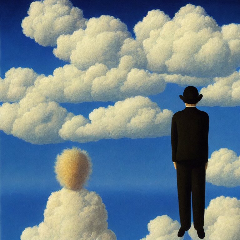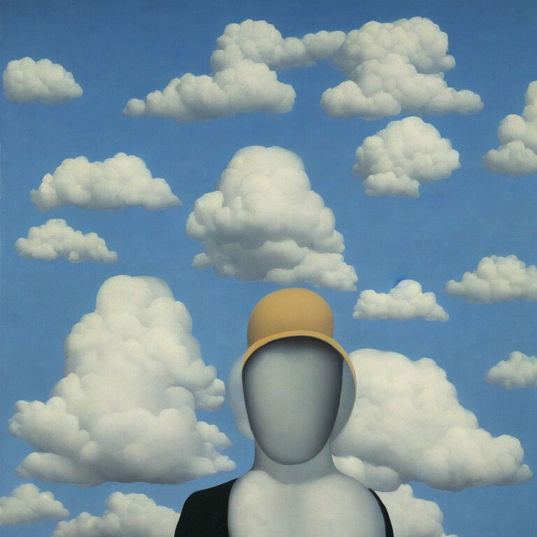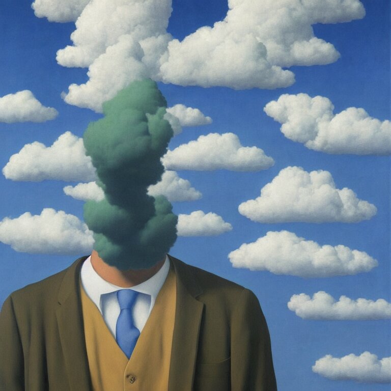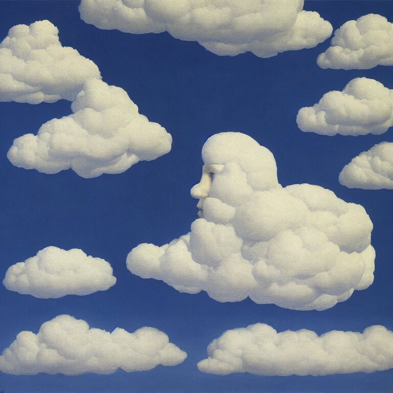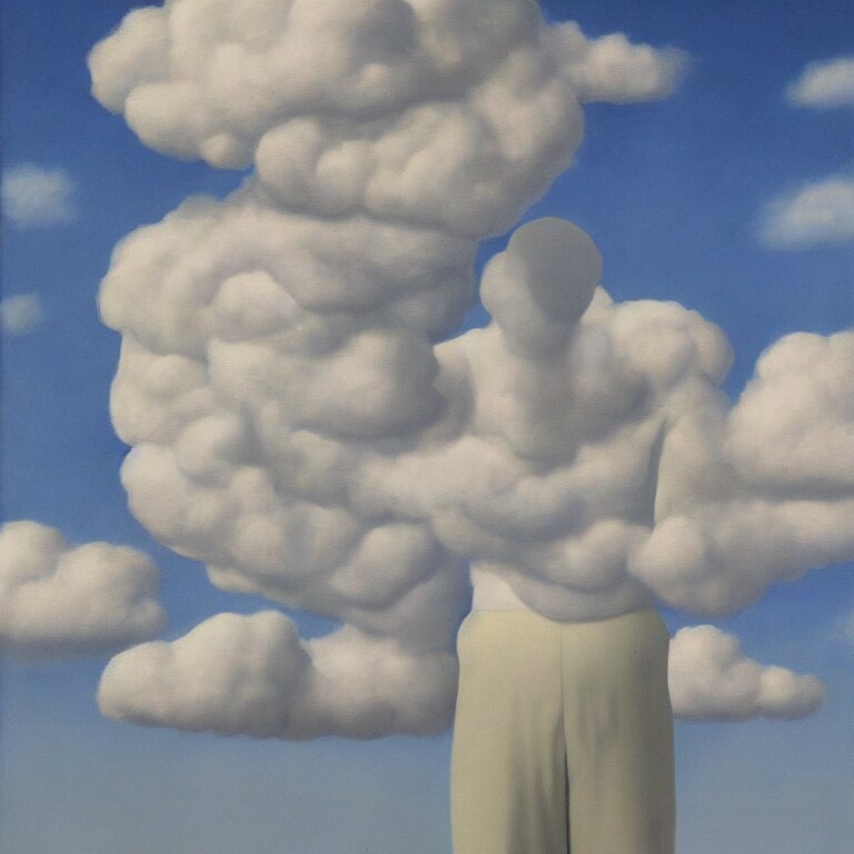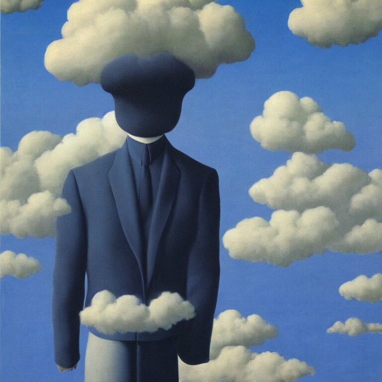 Cloud - man, by rene magritte, centered, detailed painting, hd, hq, high resolution, high detail, 4 k, 8 k