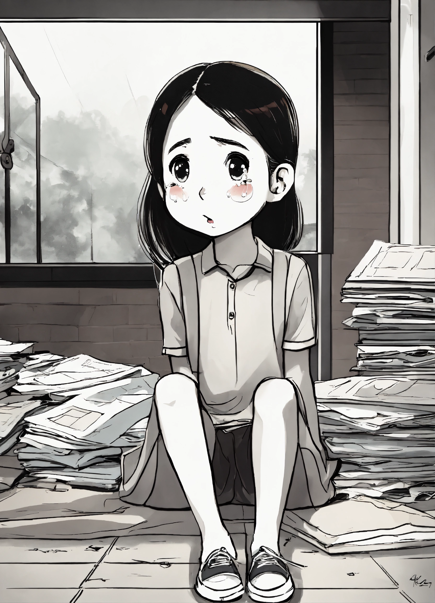 The girl is crying because the state is unfair to her and issued a fine cartoon
